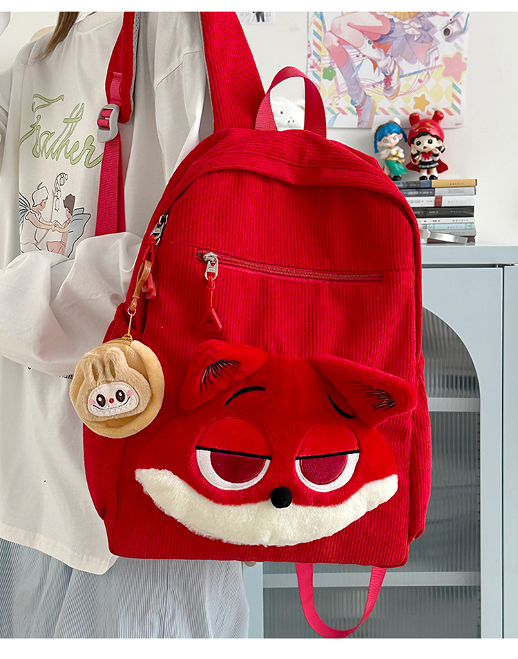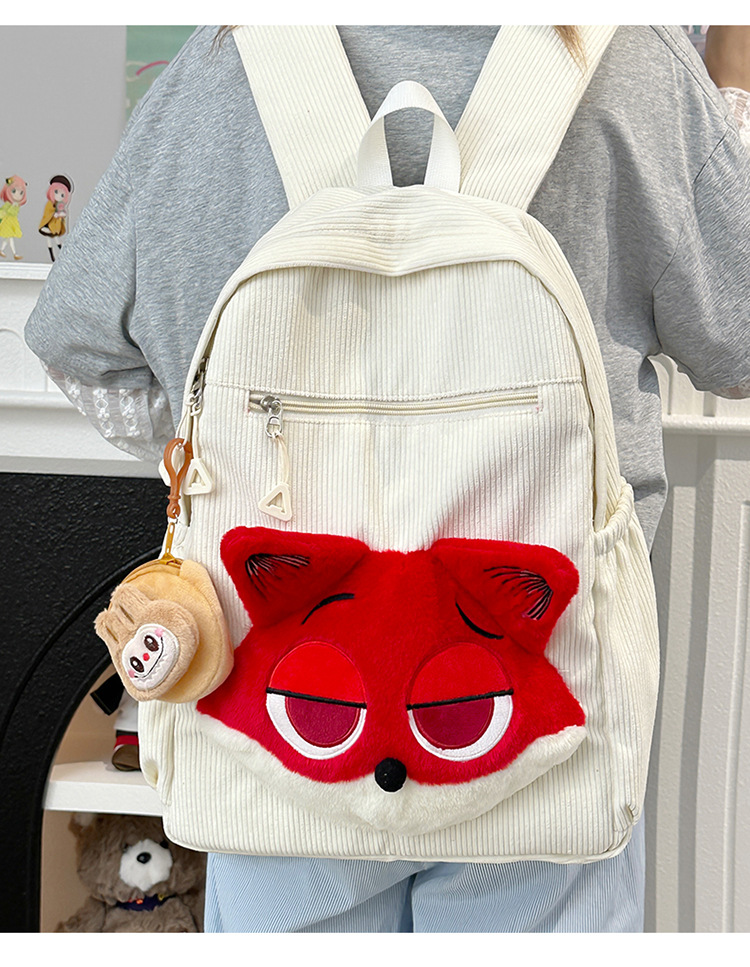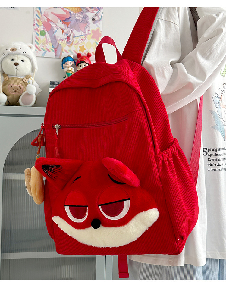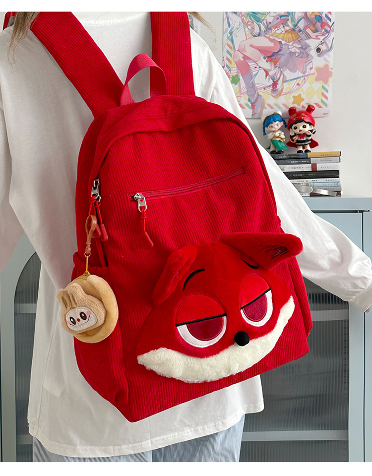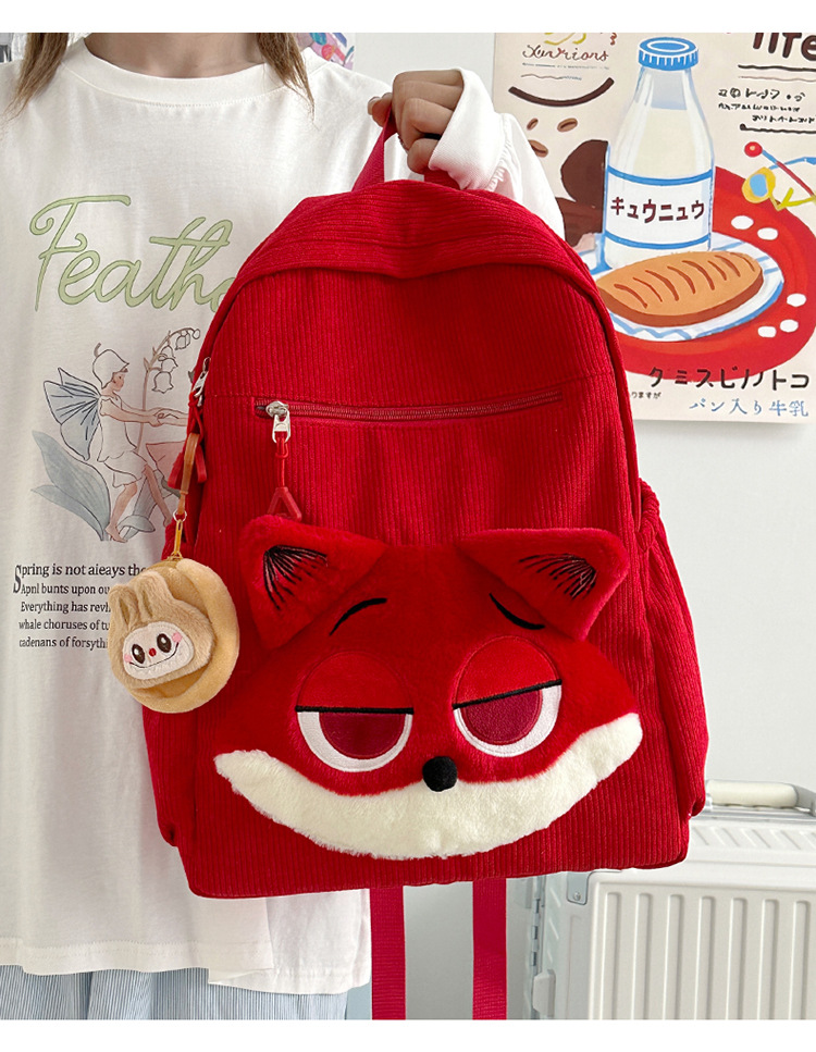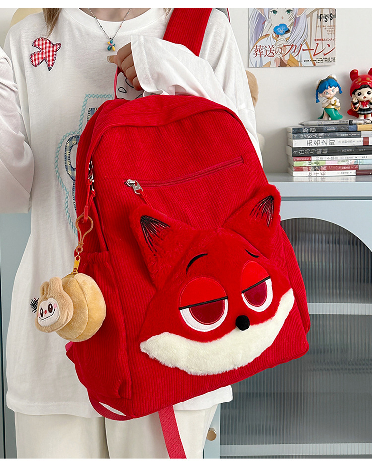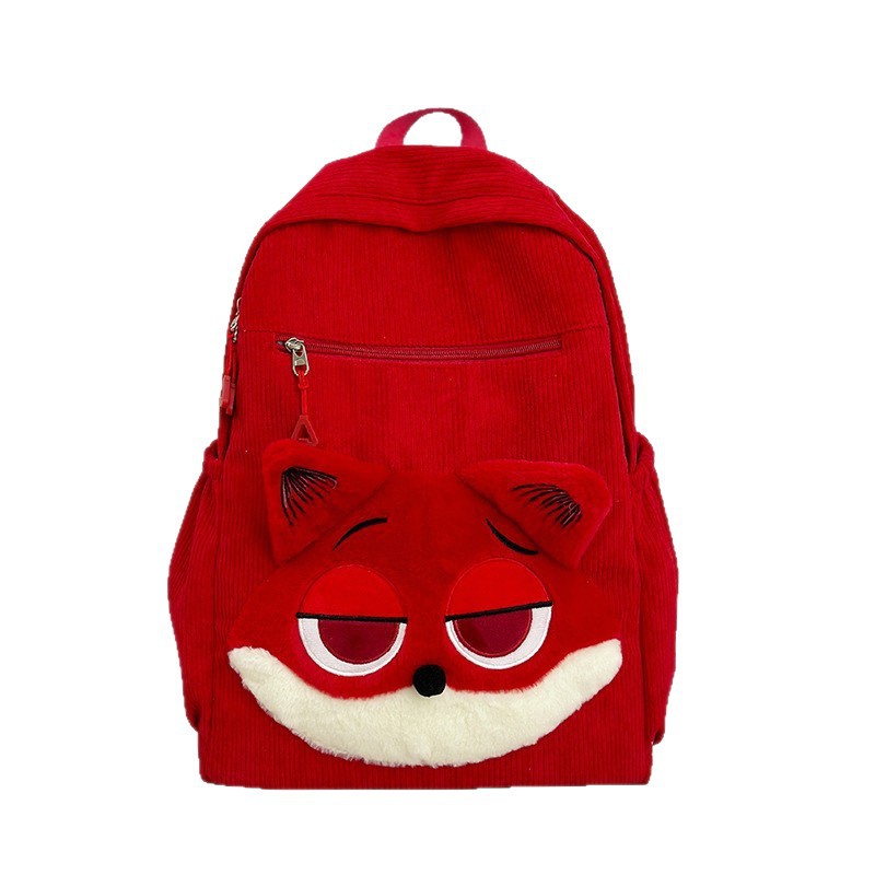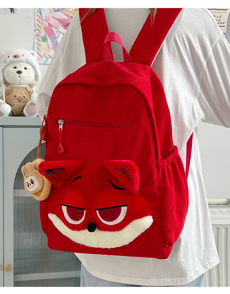 新款灯芯绒上课通勤书包小狐狸休闲可爱出游背包小学生初中生批发