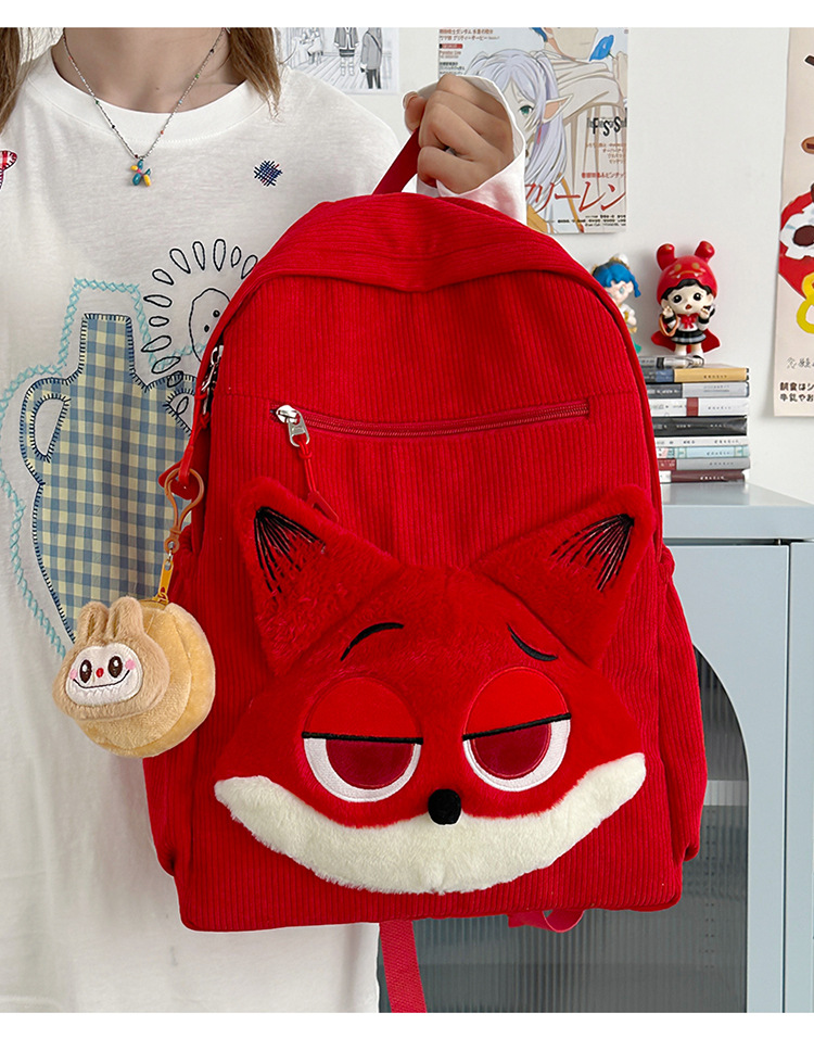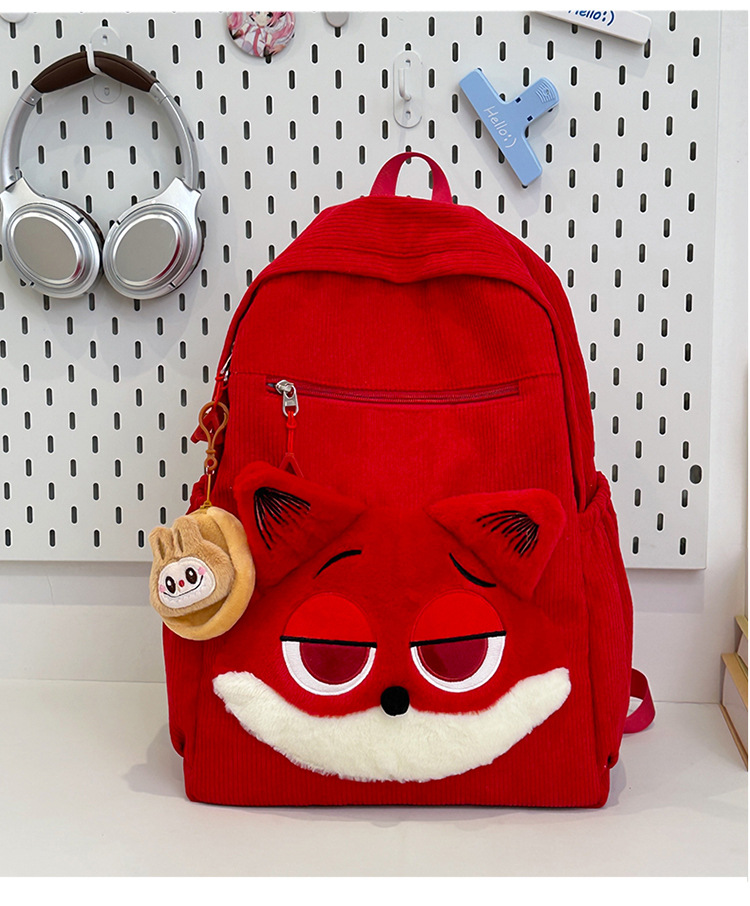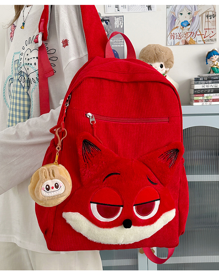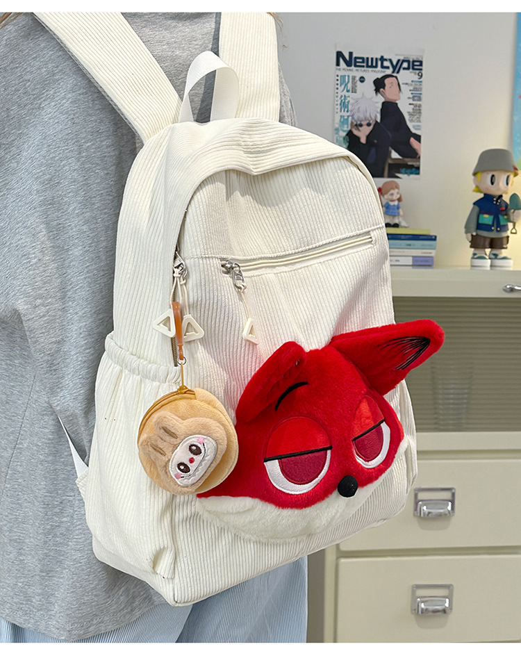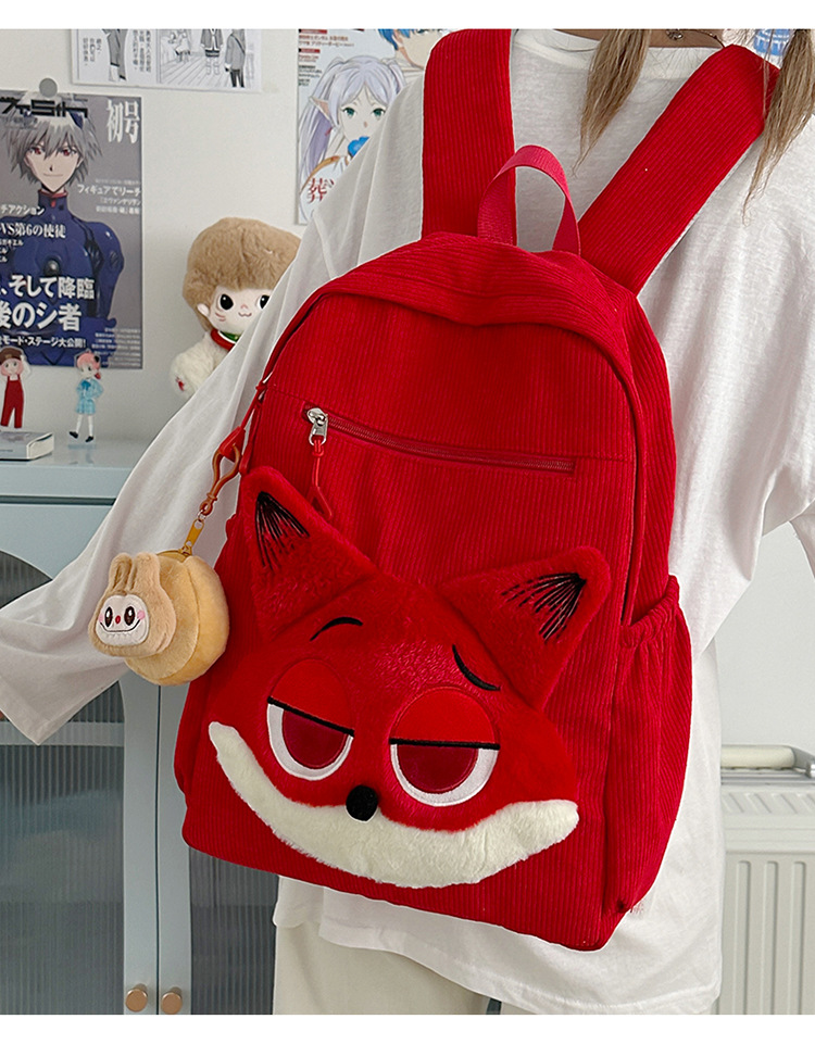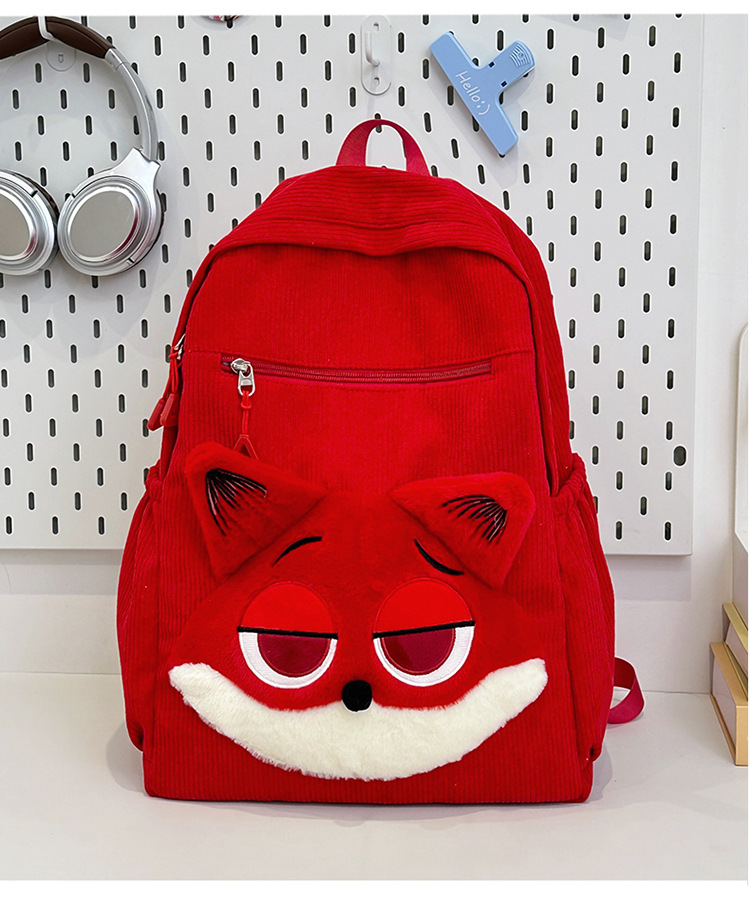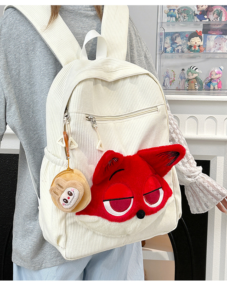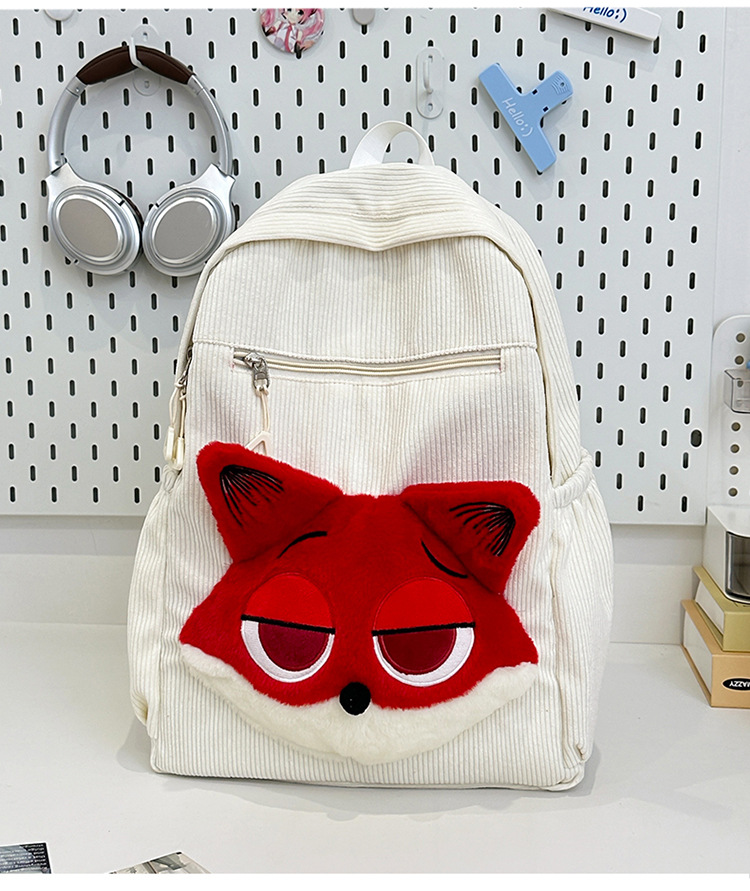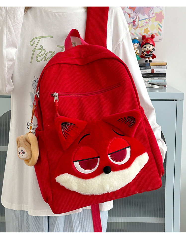 新款灯芯绒上课通勤书包小狐狸休闲可爱出游背包小学生初中生批发