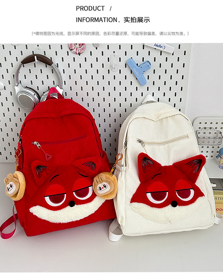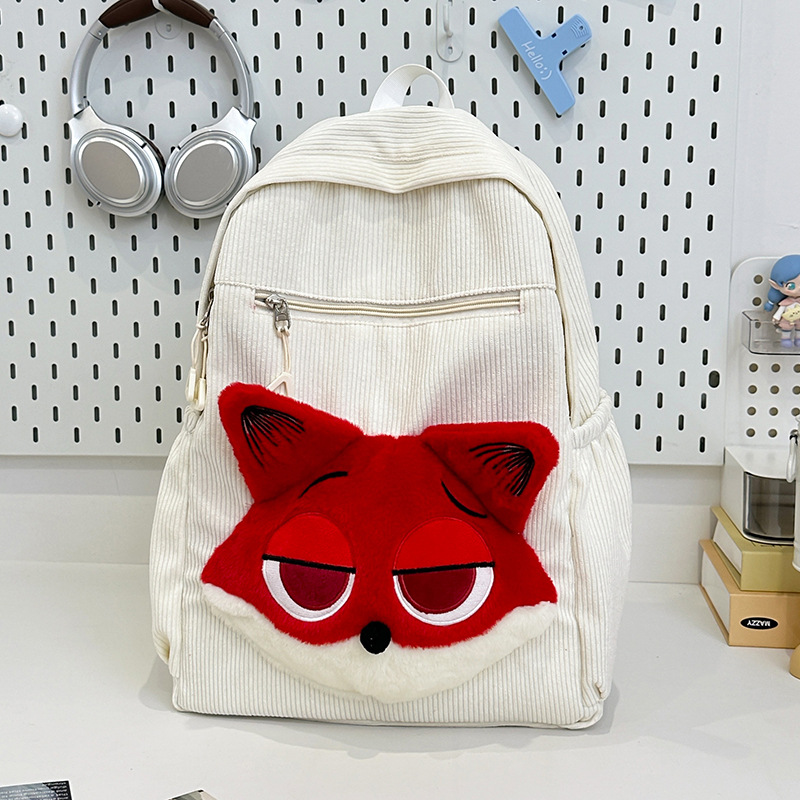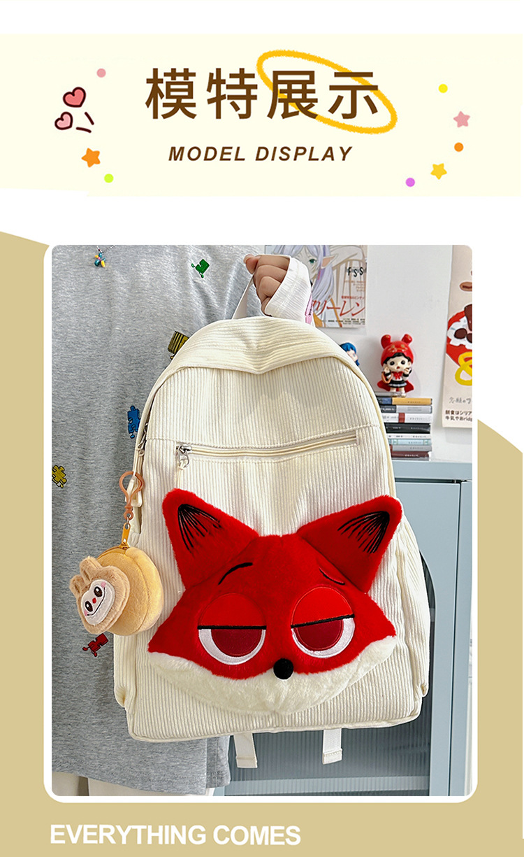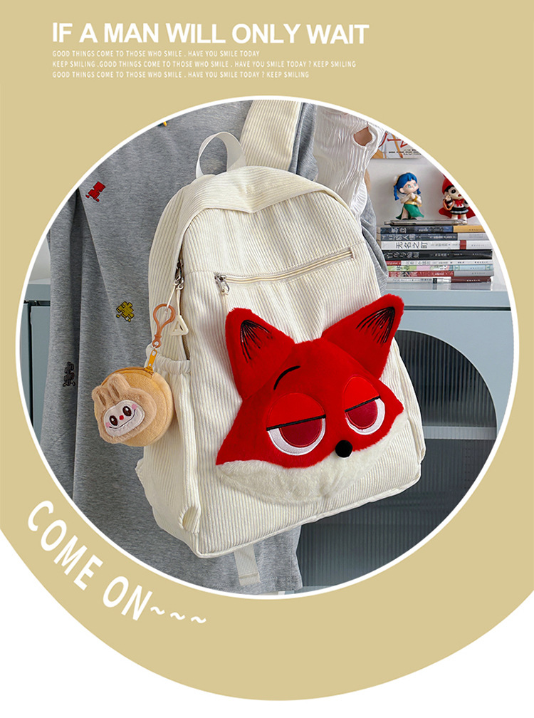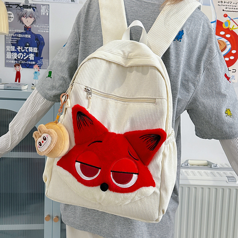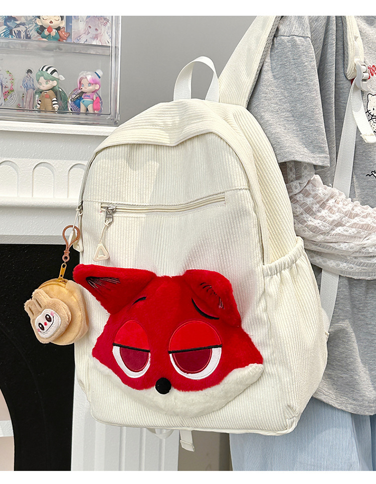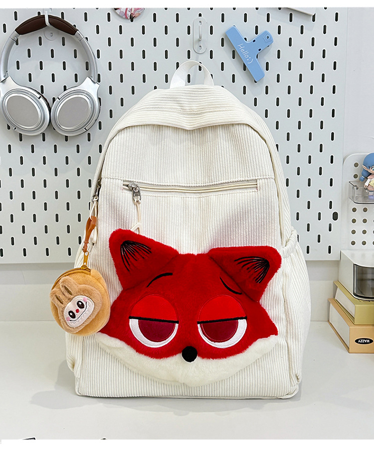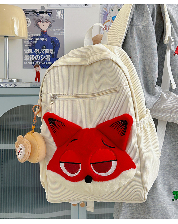 新款灯芯绒上课通勤书包小狐狸休闲可爱出游背包小学生初中生批发