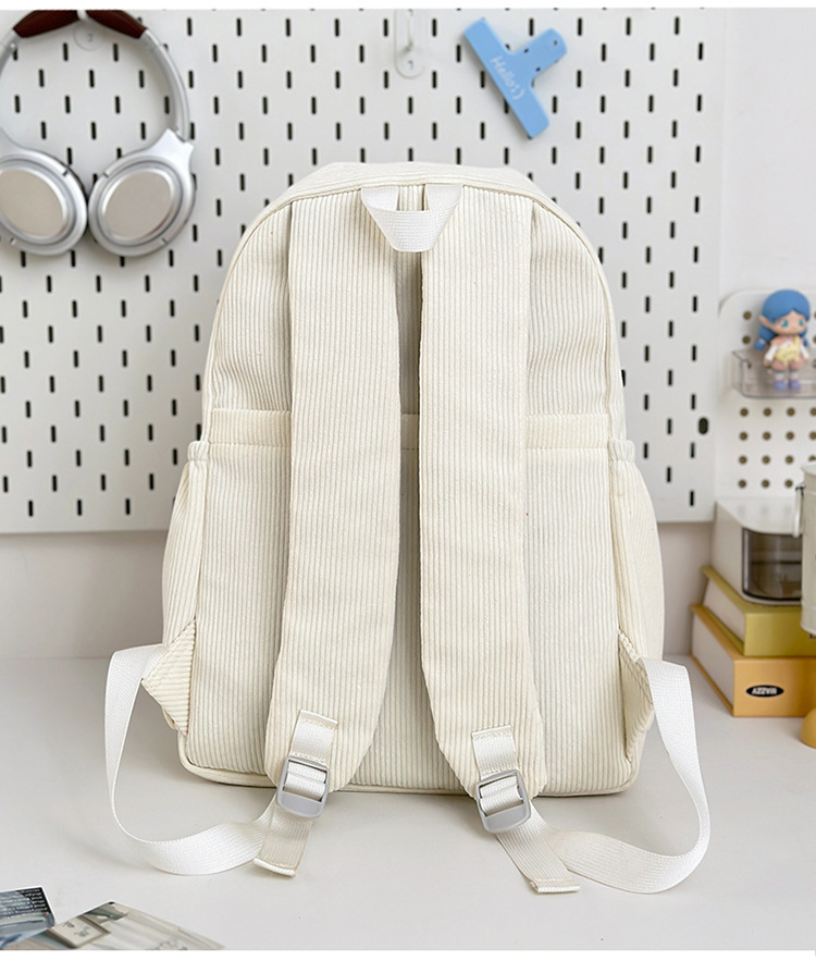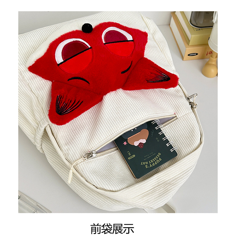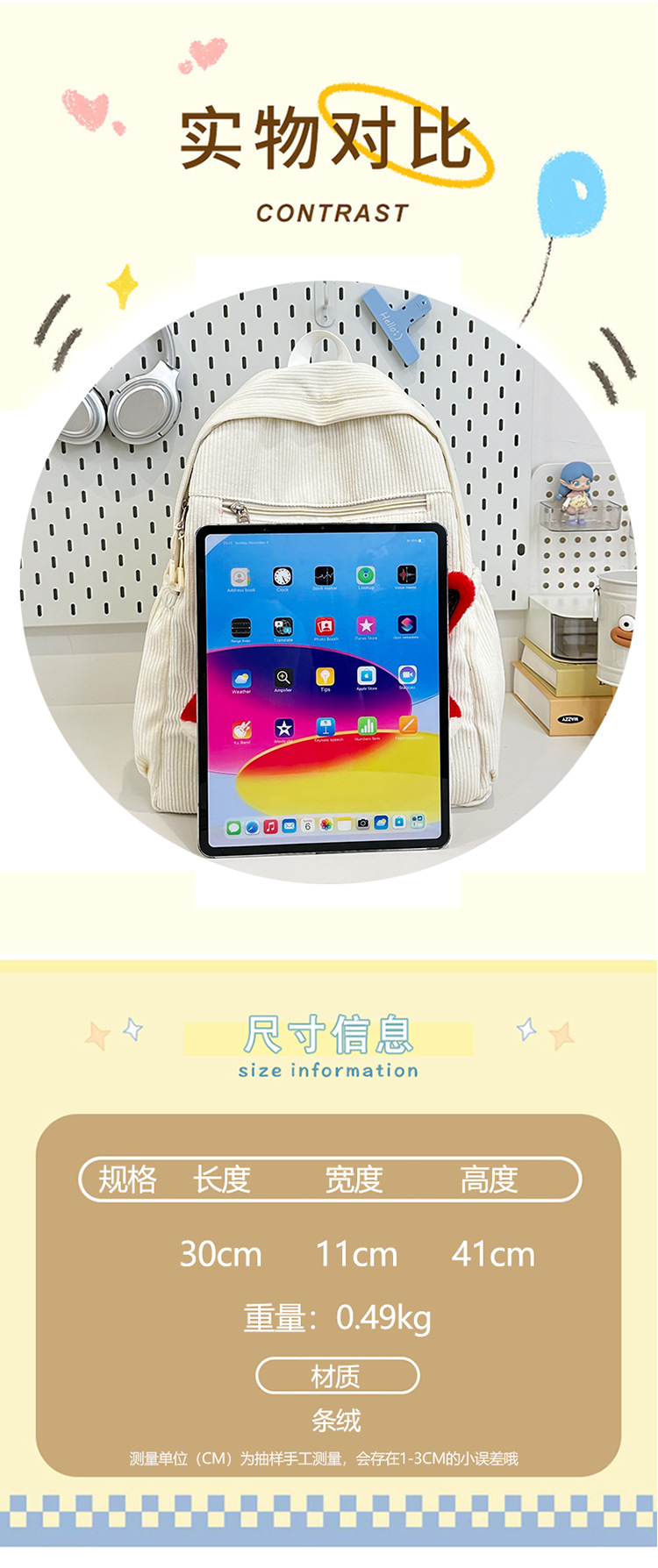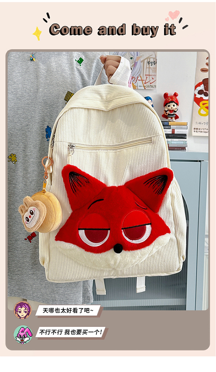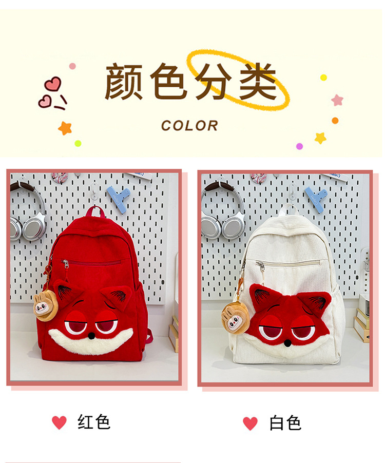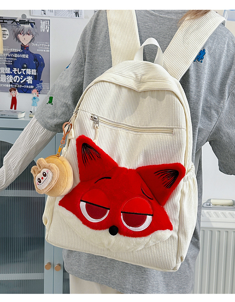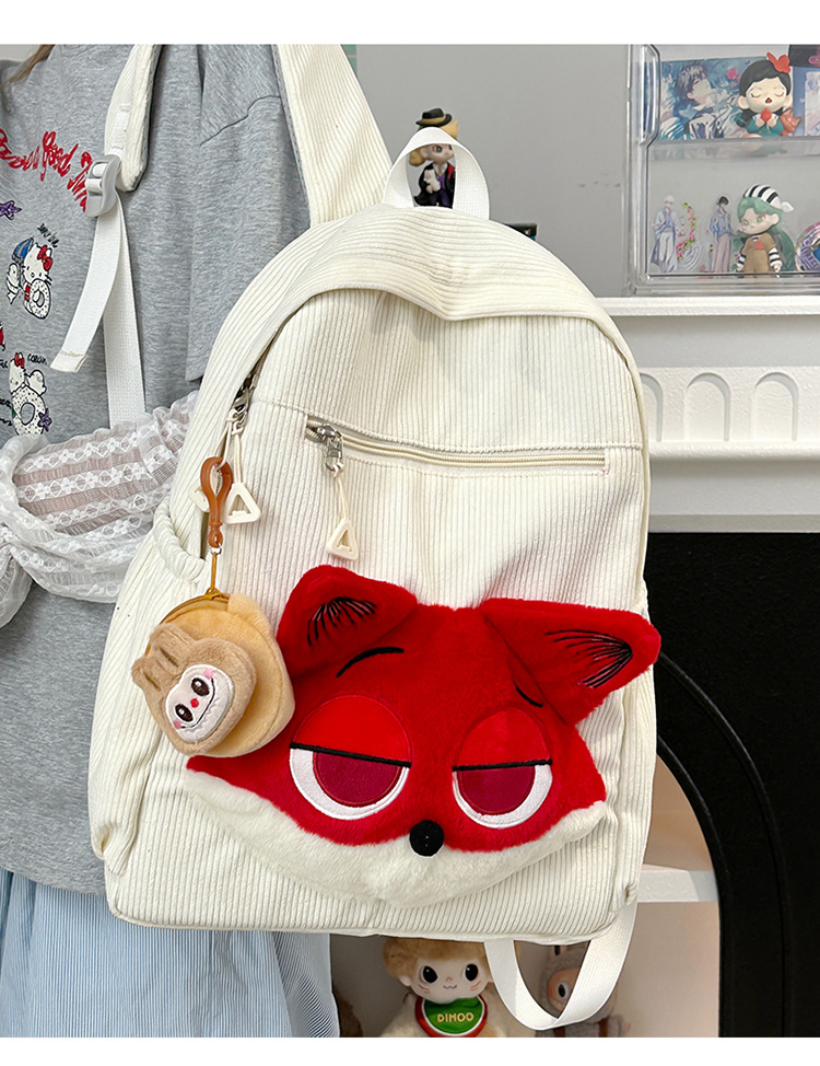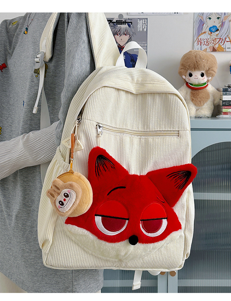 新款灯芯绒上课通勤书包小狐狸休闲可爱出游背包小学生初中生批发