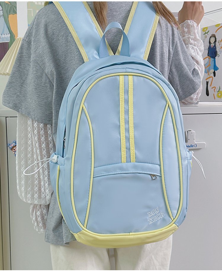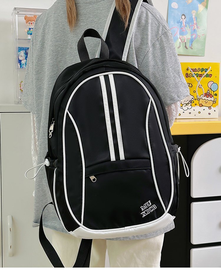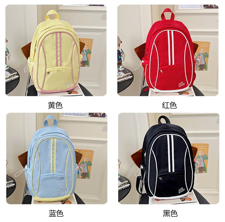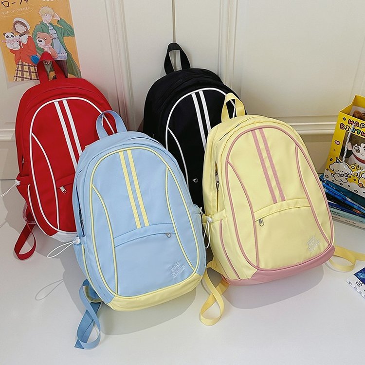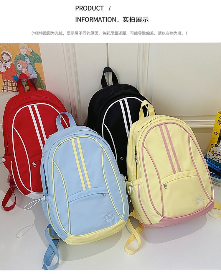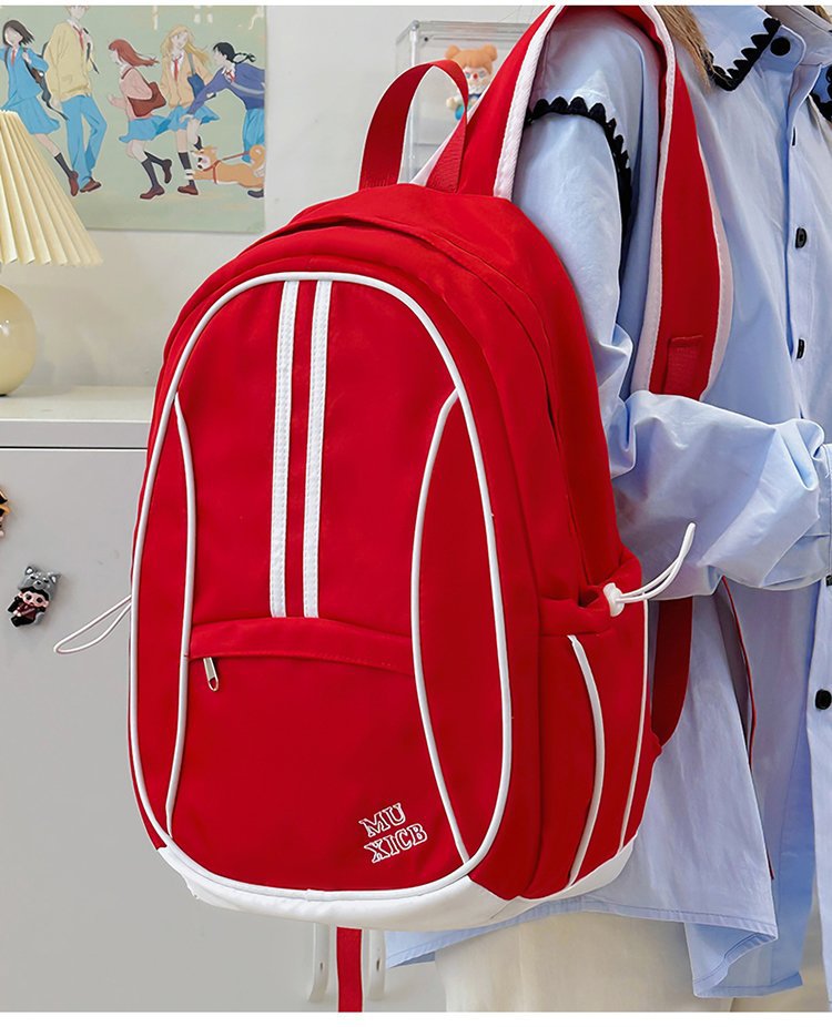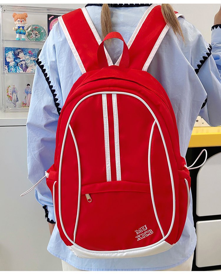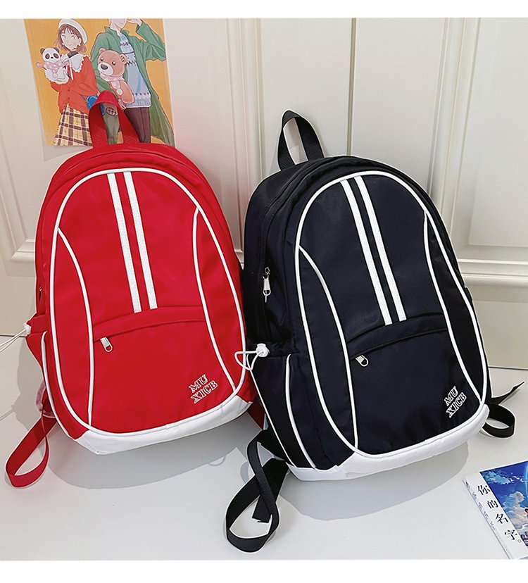 美式复古撞色双肩包男女休闲百搭书包大学生高中生大容量背包潮