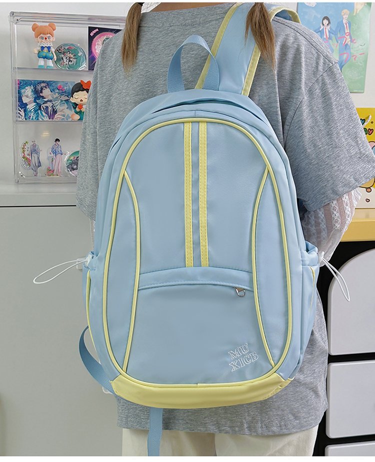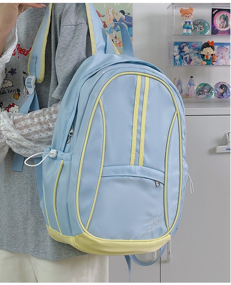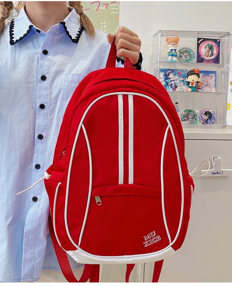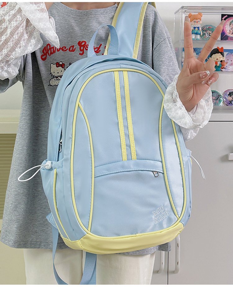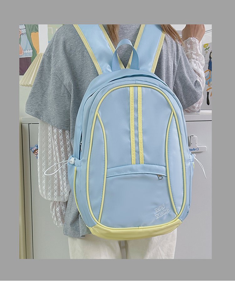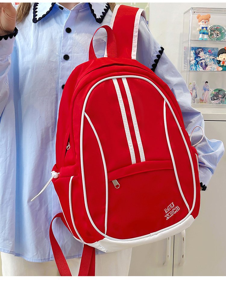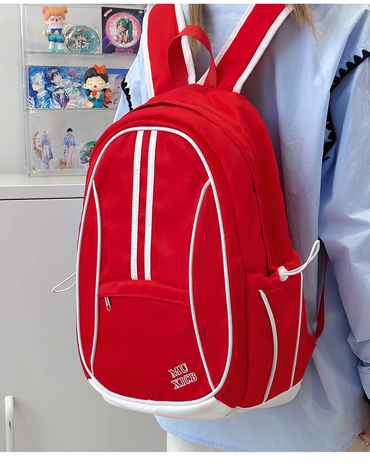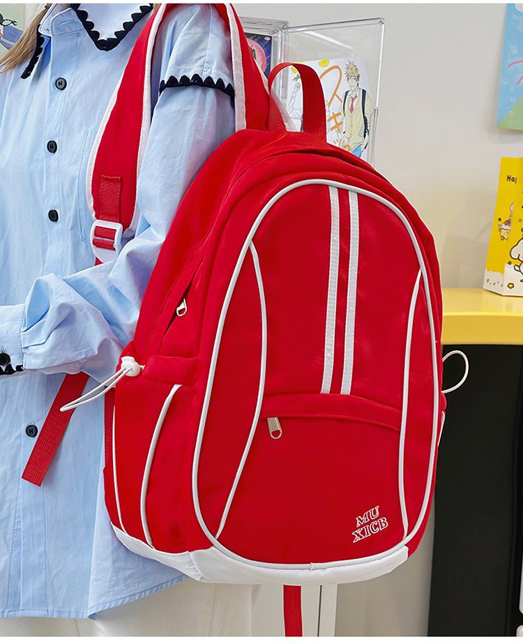 美式复古撞色双肩包男女休闲百搭书包大学生高中生大容量背包潮