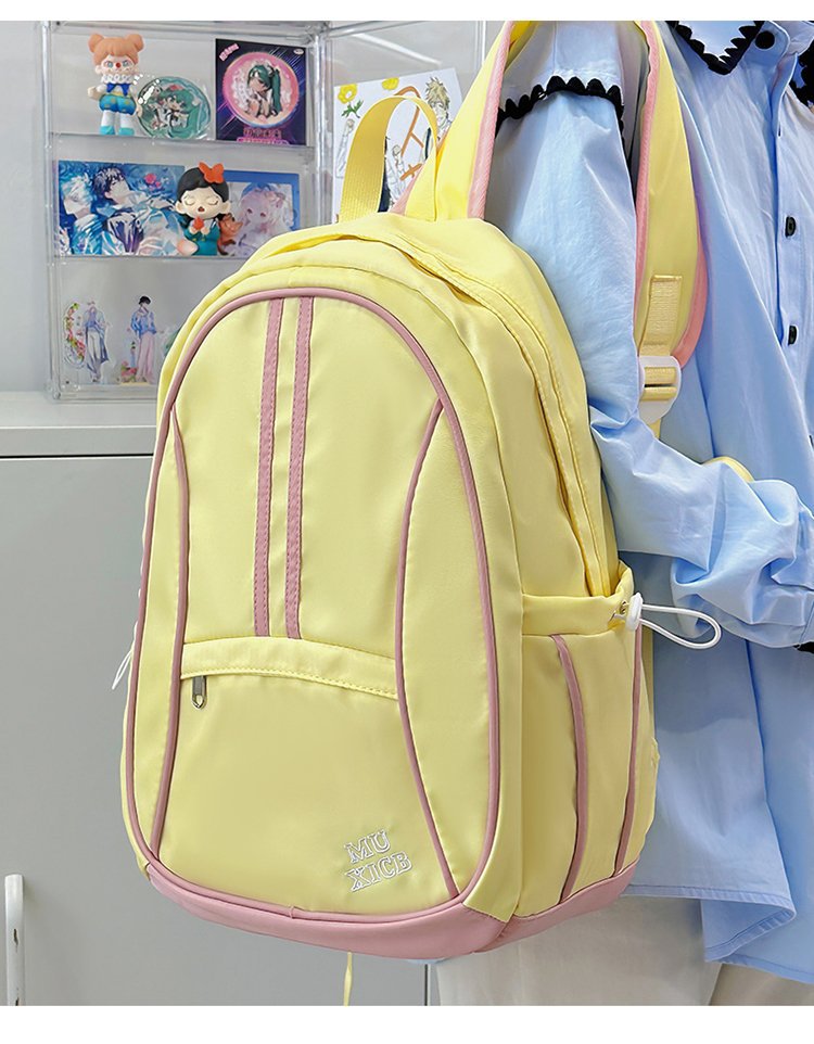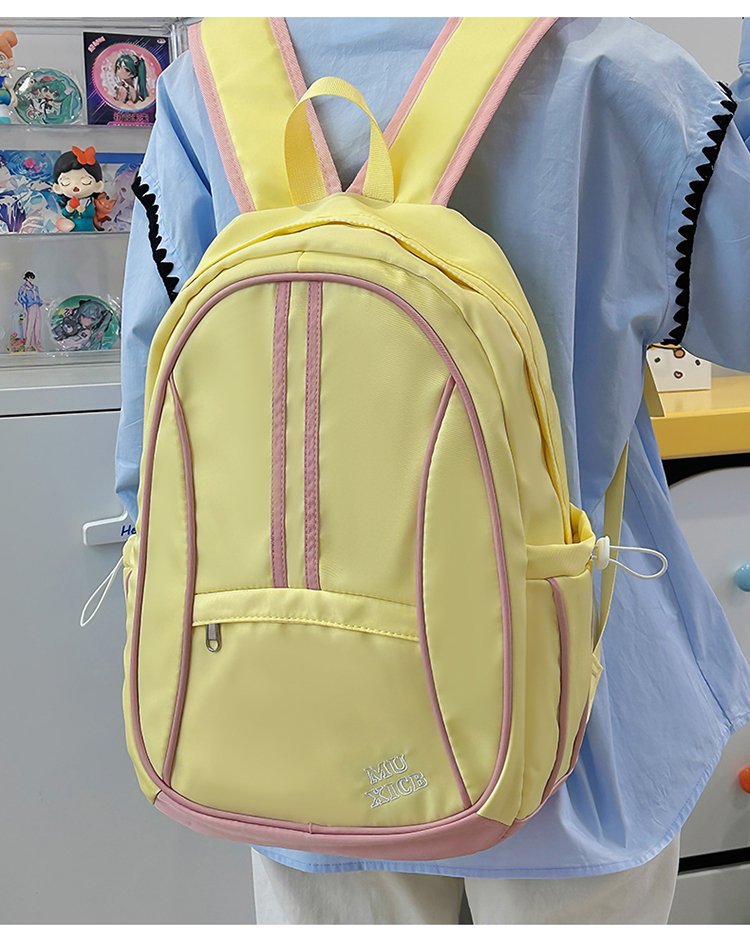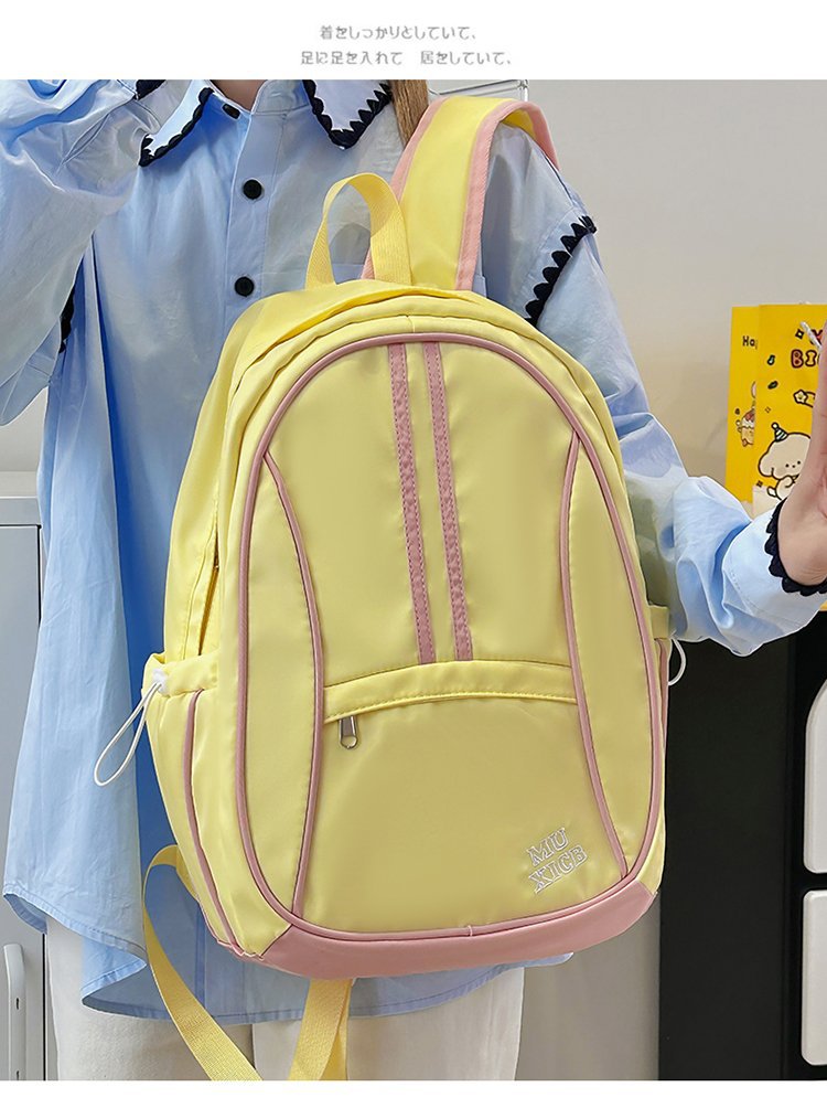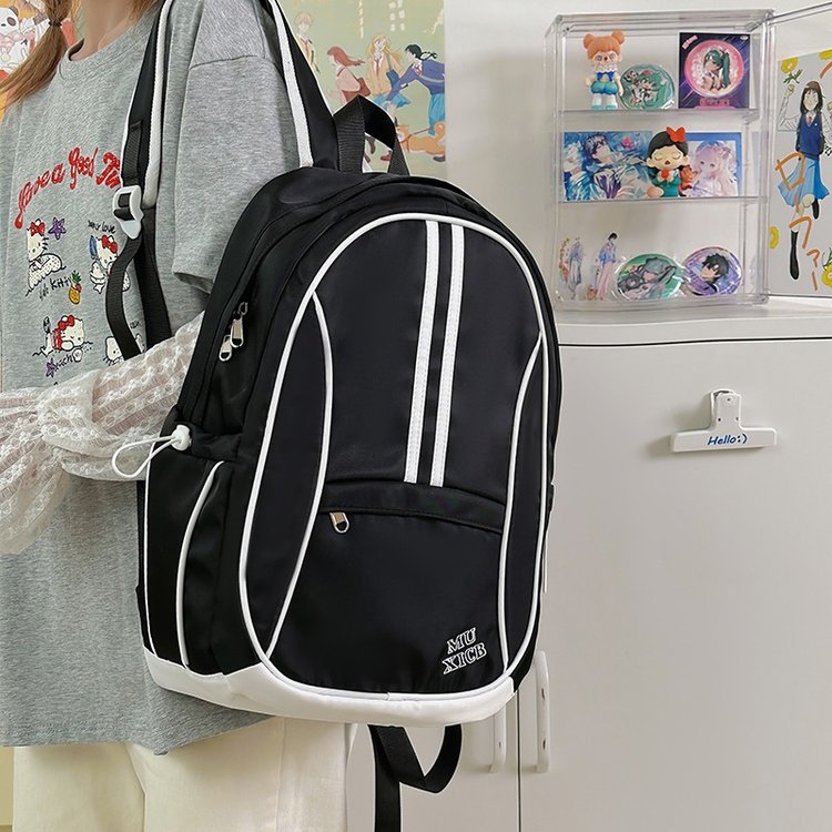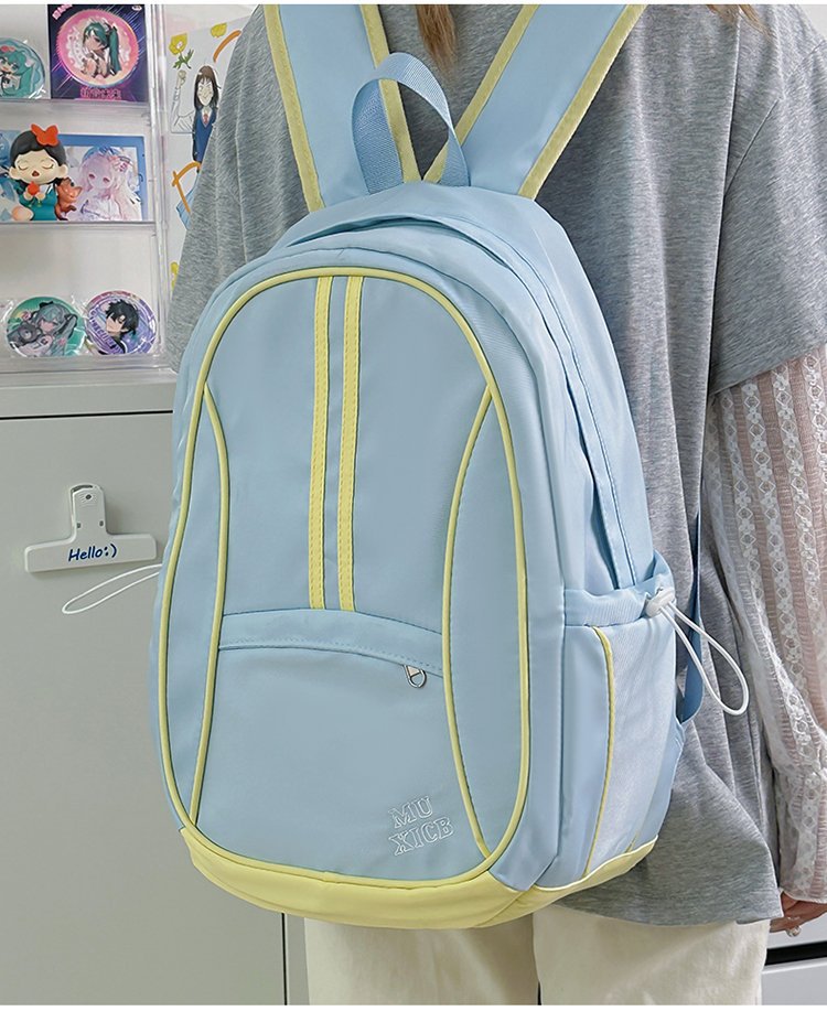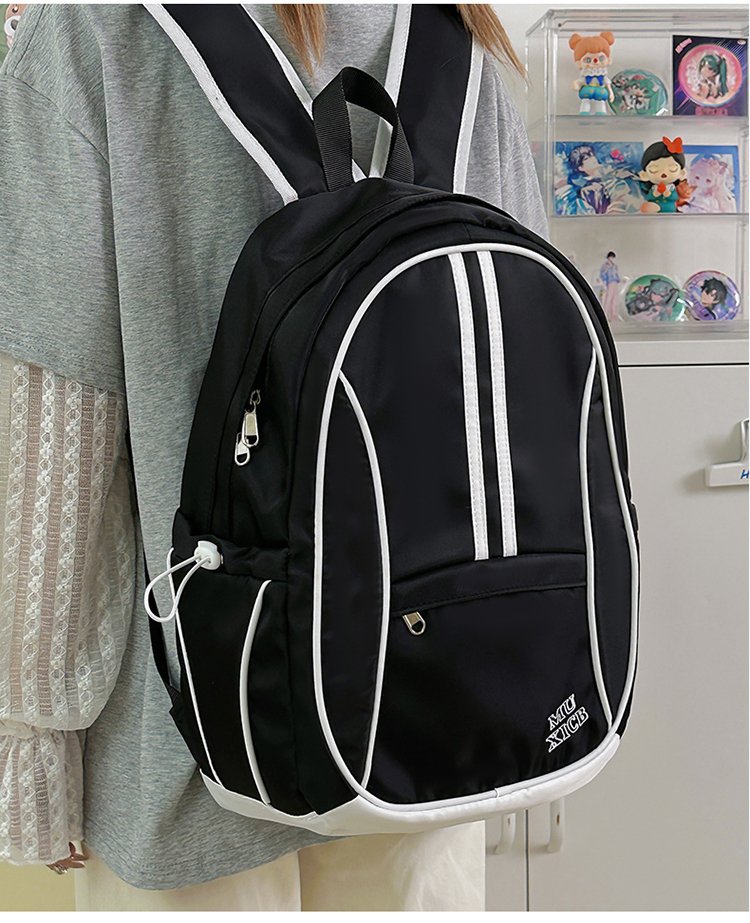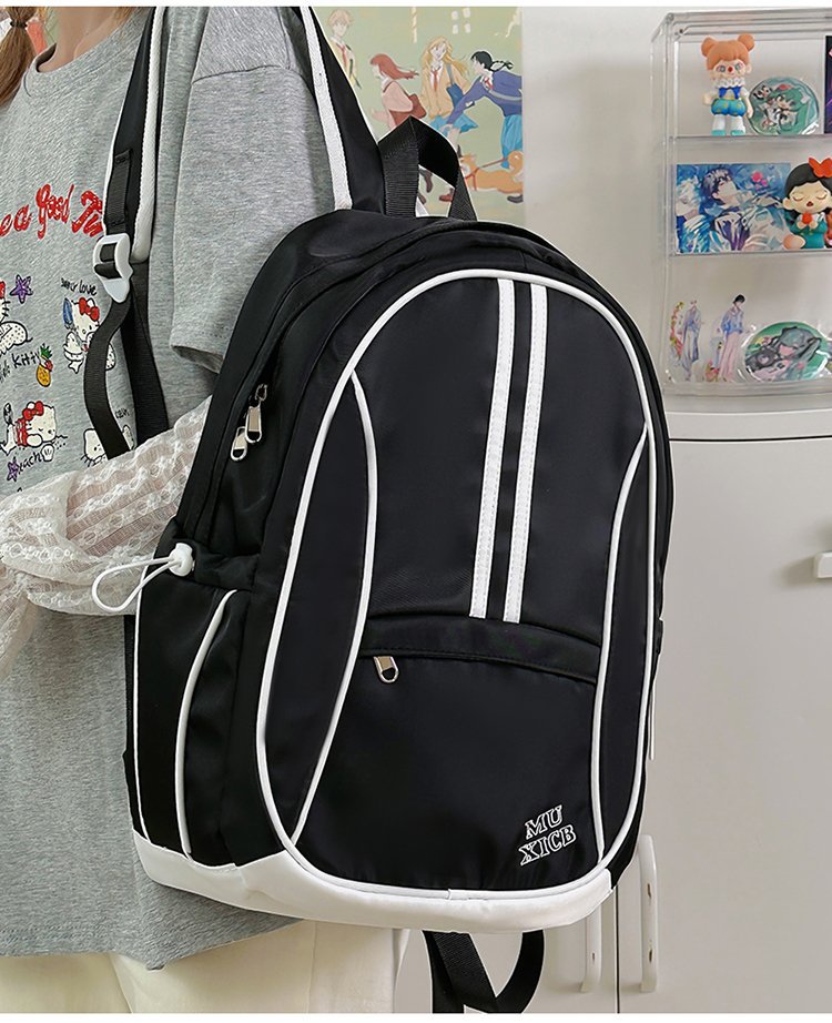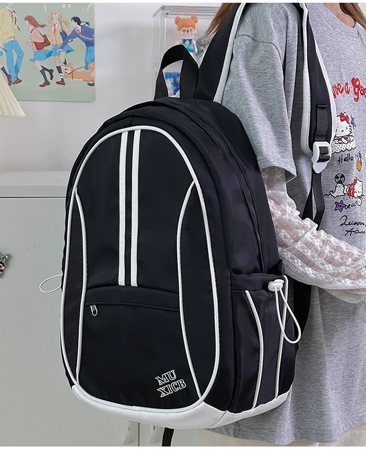 美式复古撞色双肩包男女休闲百搭书包大学生高中生大容量背包潮