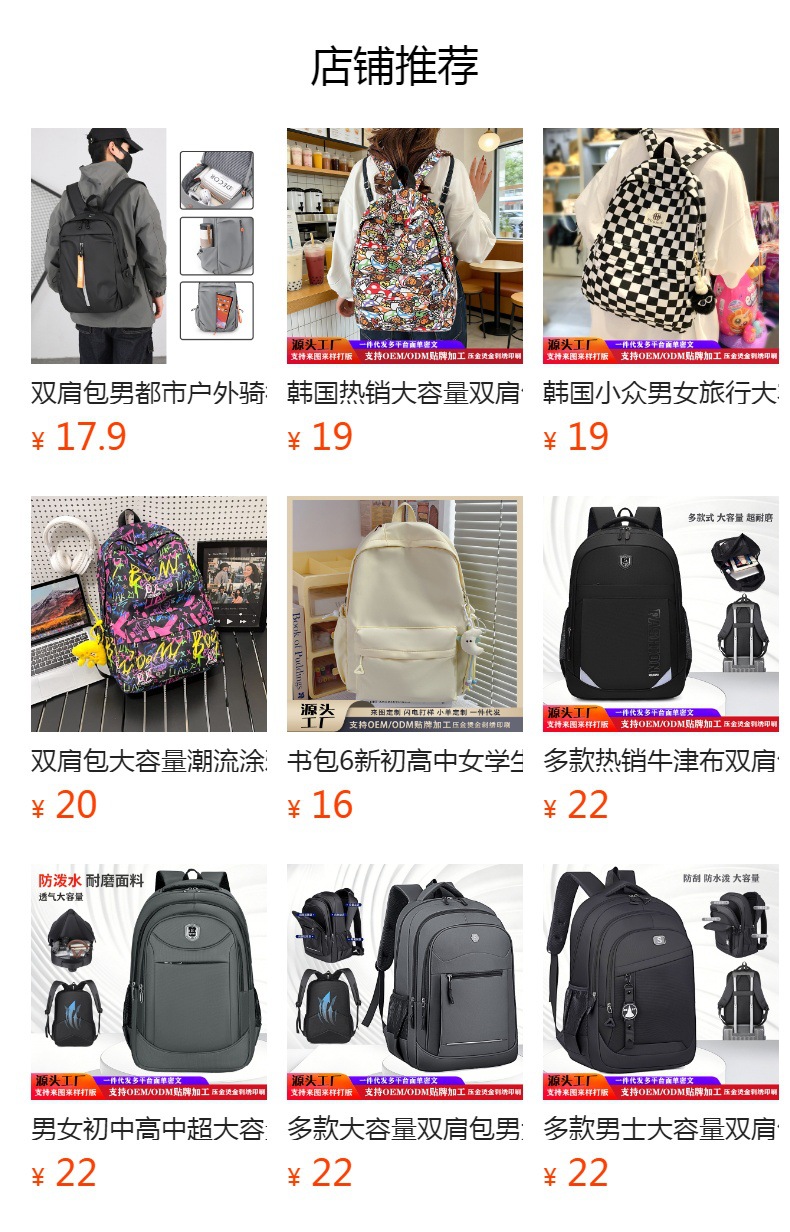 背包男款大容量小众轻便学生户外运动旅行防水电脑双肩包白沟书包