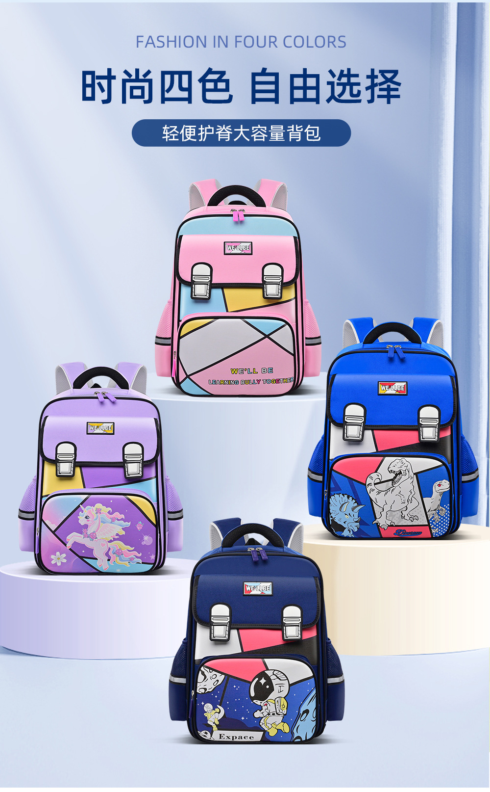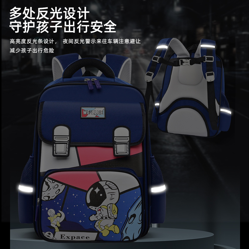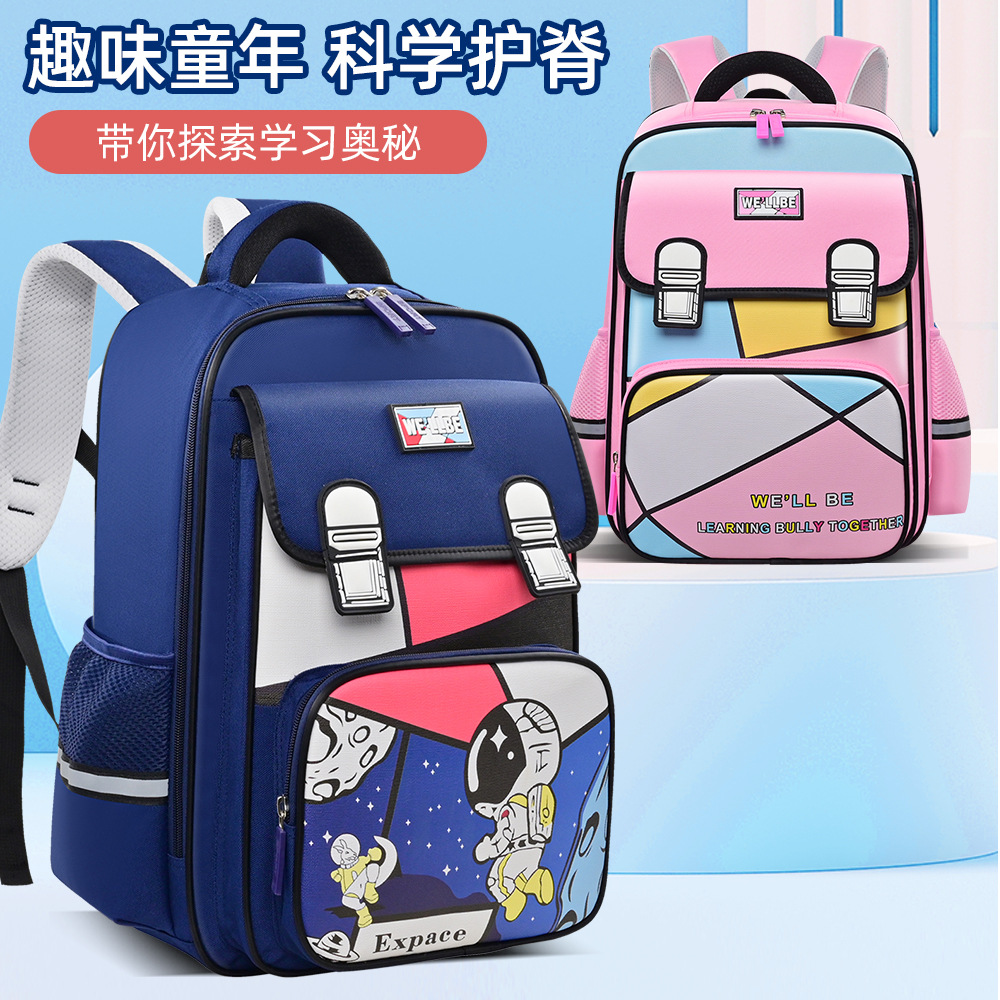 新款儿童小学生书包1-3-6年级卡通宇航员独角兽大容量双肩英伦轻