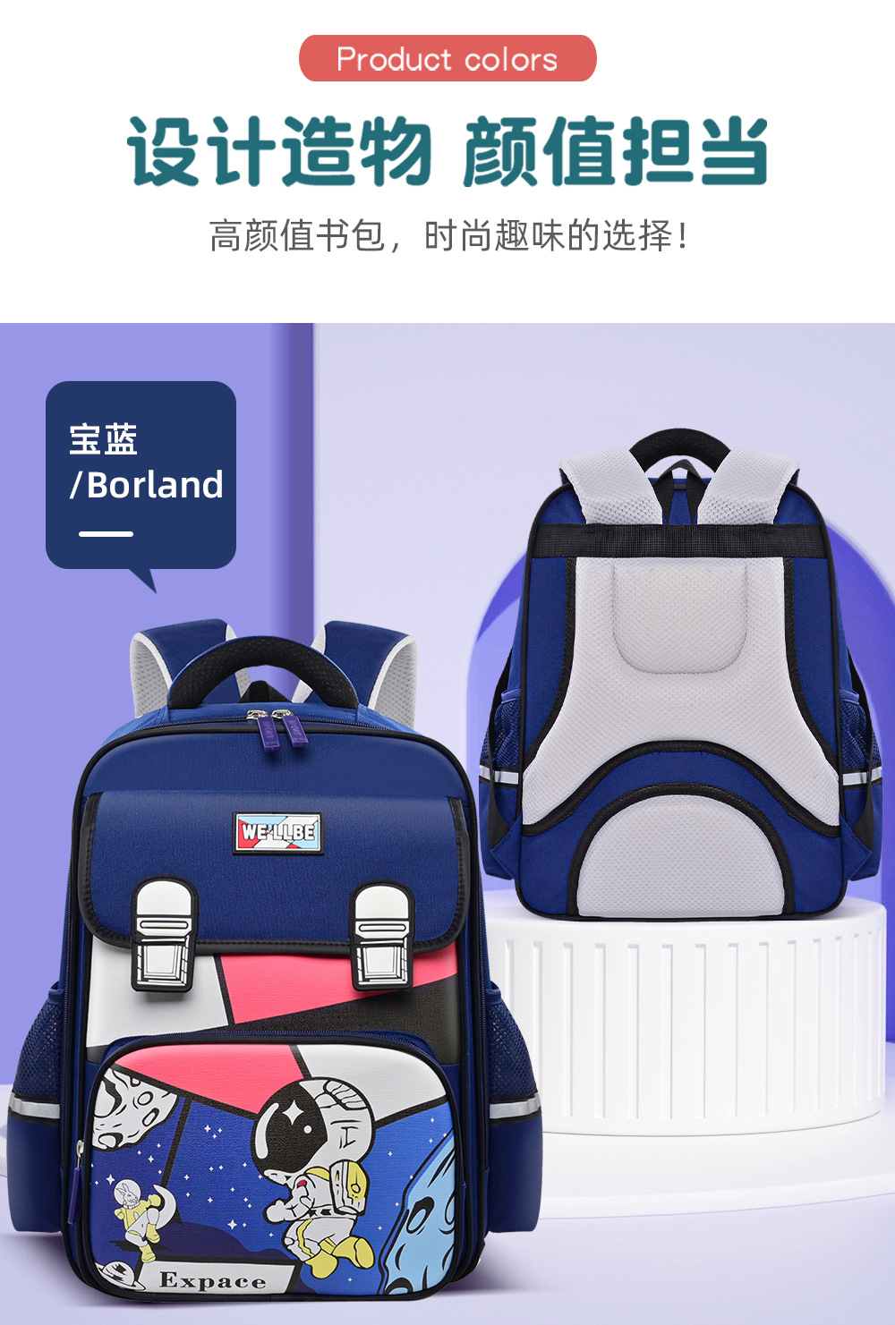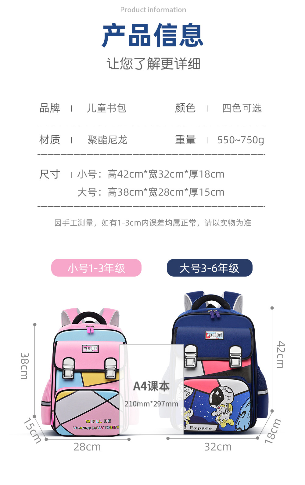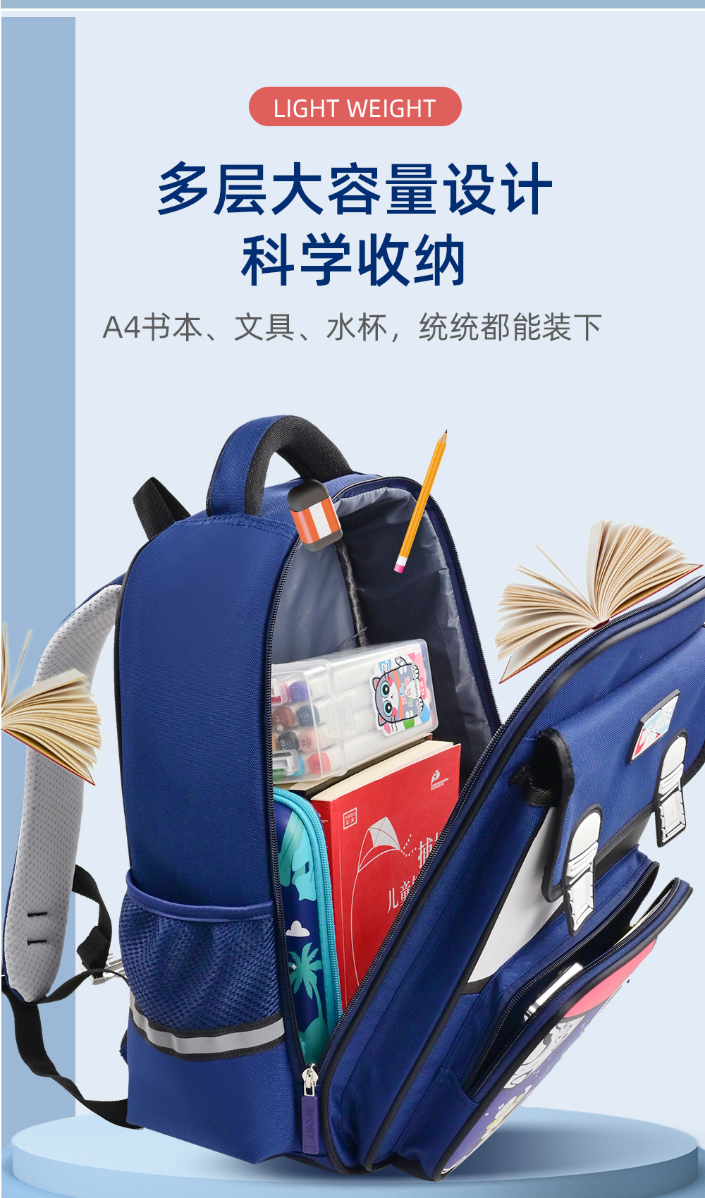 新款儿童小学生书包1-3-6年级卡通宇航员独角兽大容量双肩英伦轻