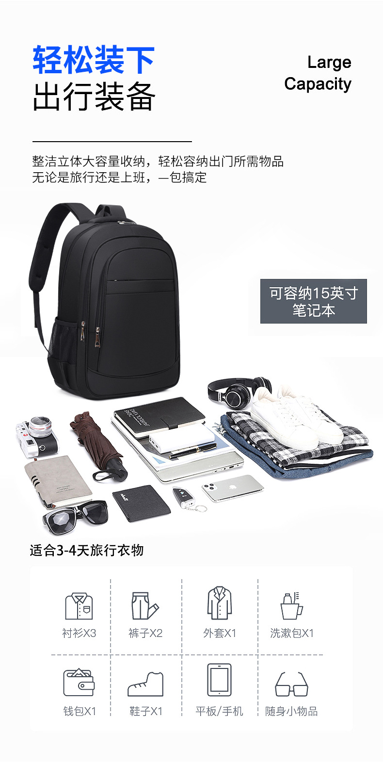 商务双肩包轻便时尚电脑背包高级感男士通勤旅行包大容量学生书包