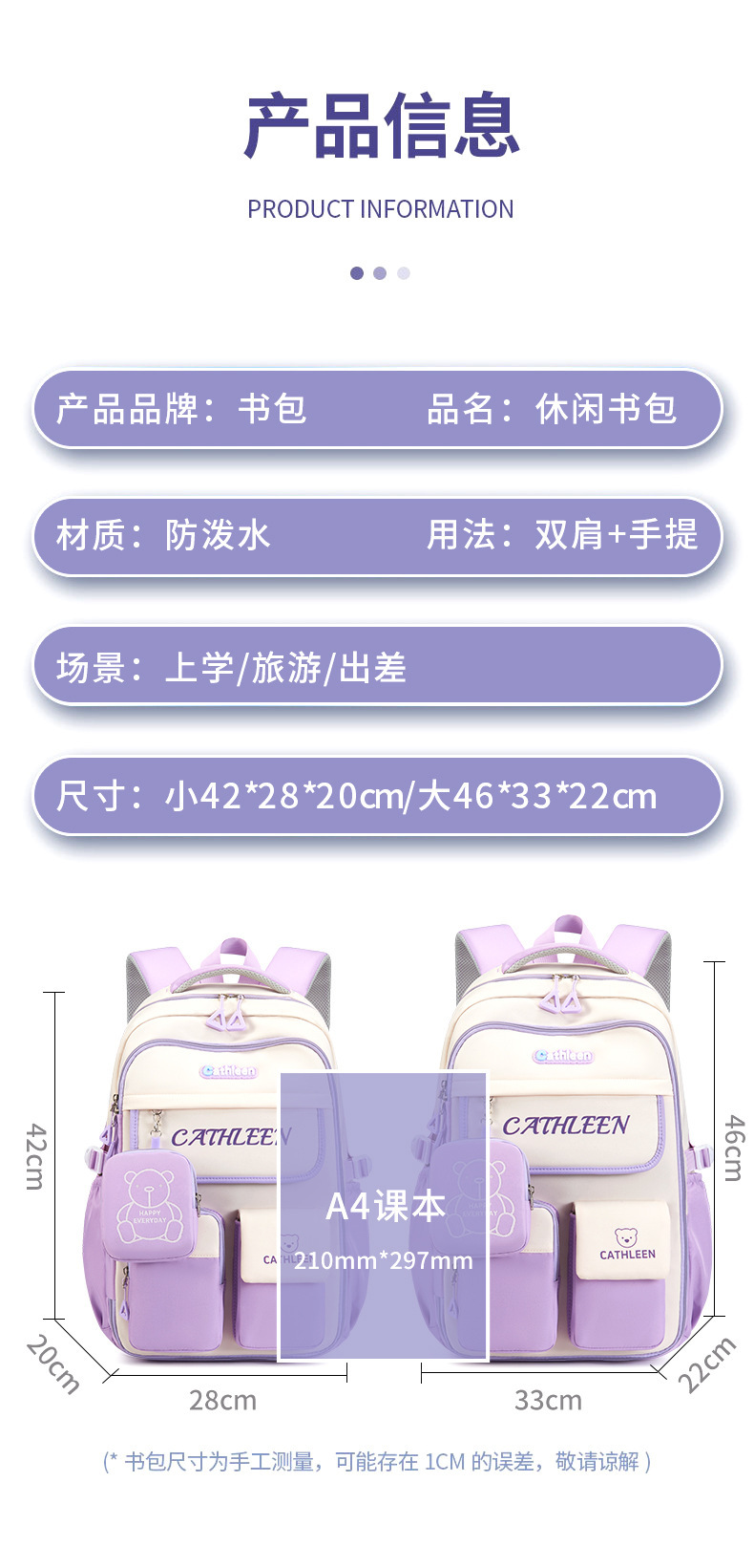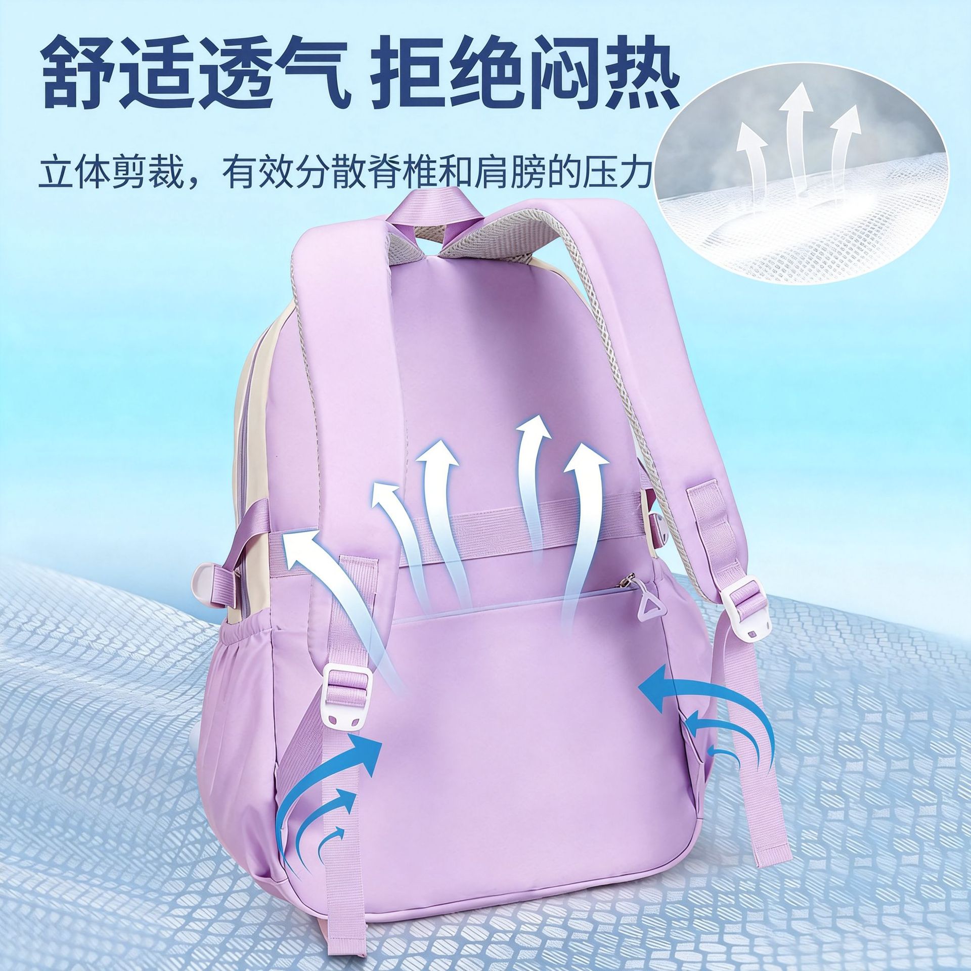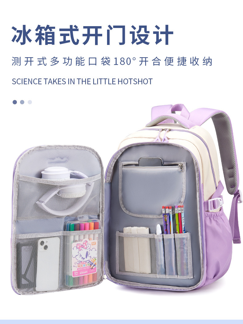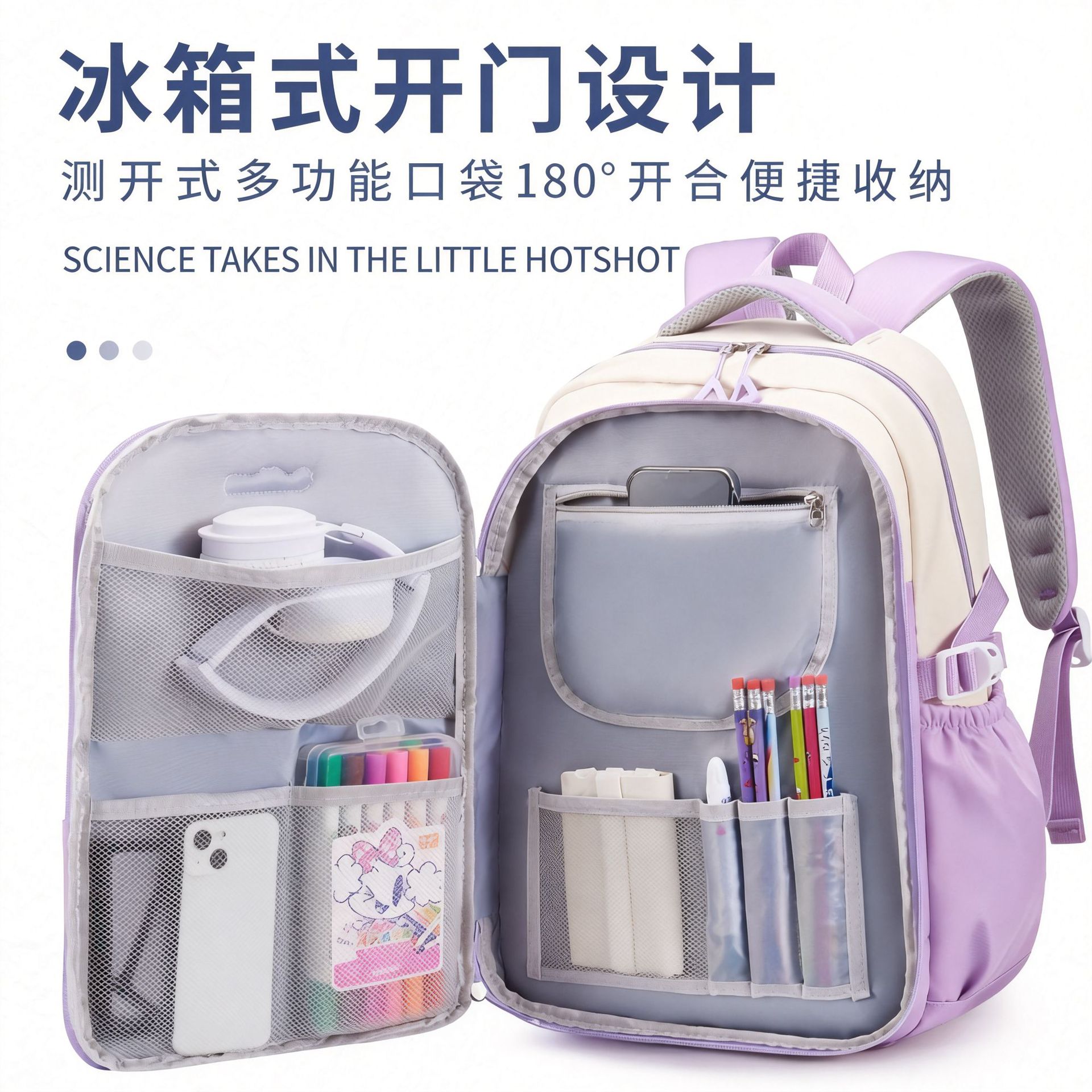 新款初小学生书包男女孩轻便护脊大容量防泼水冰箱式设计双肩背包