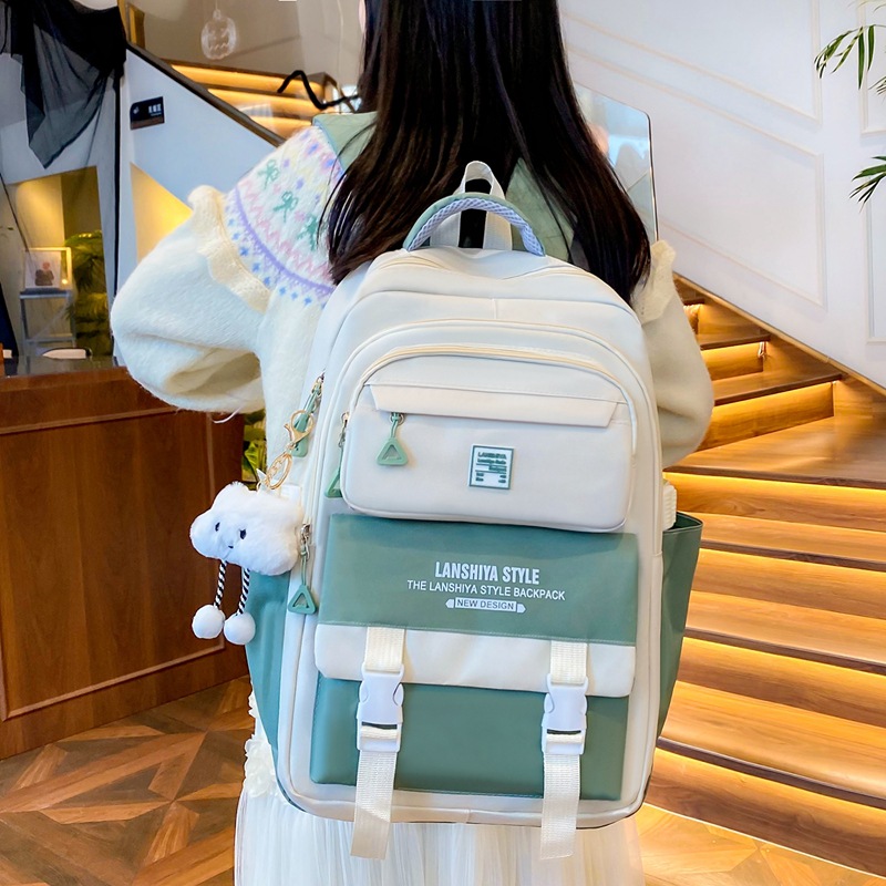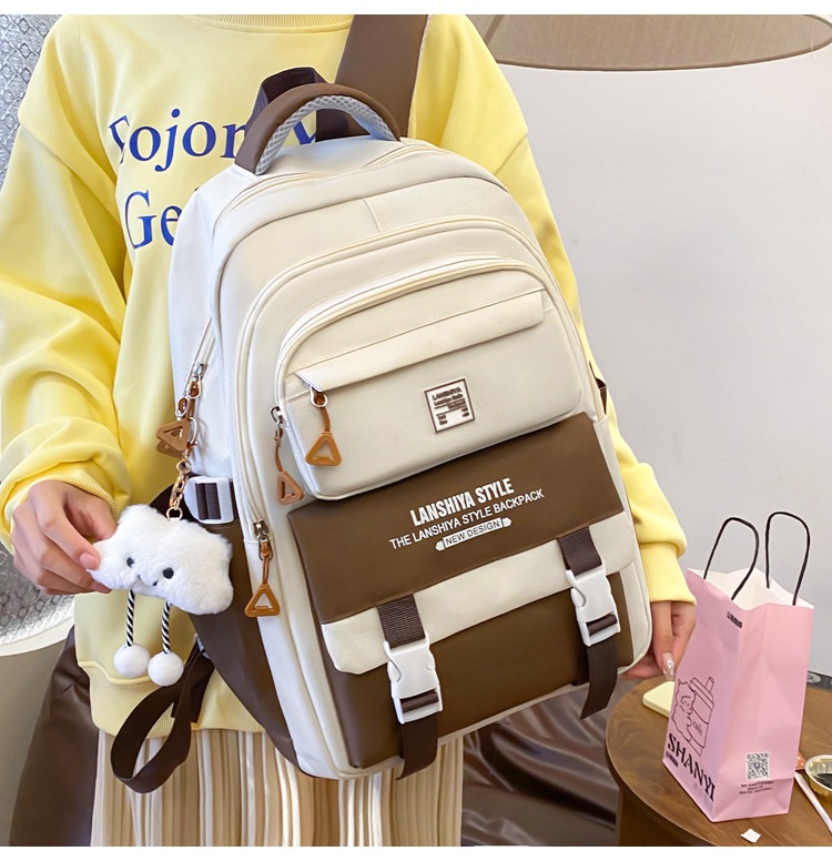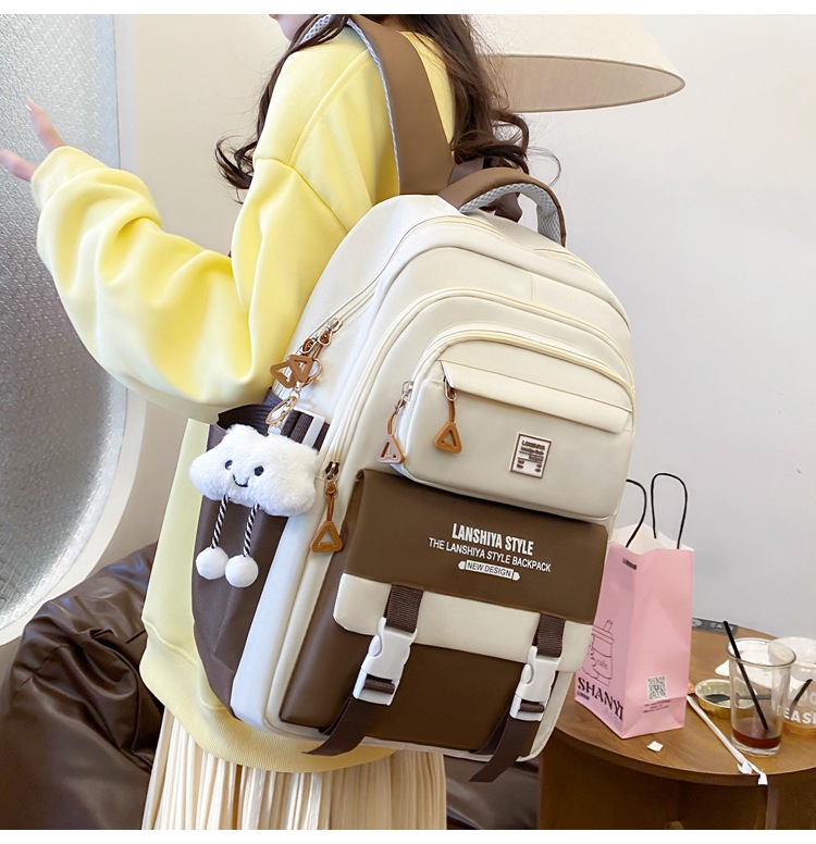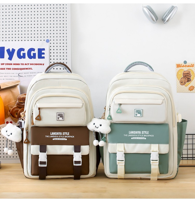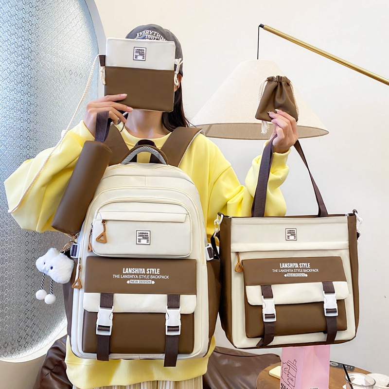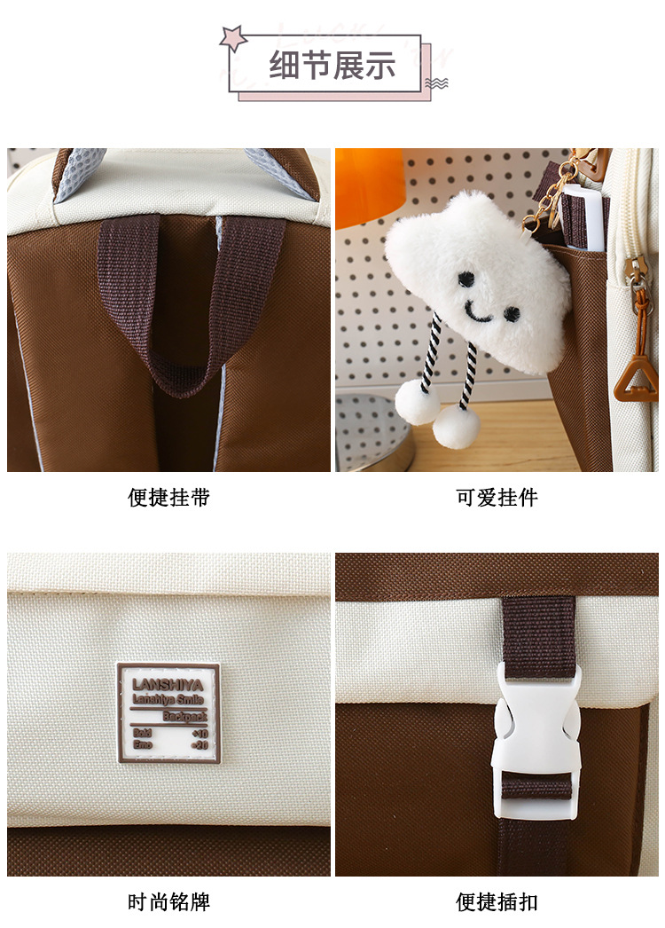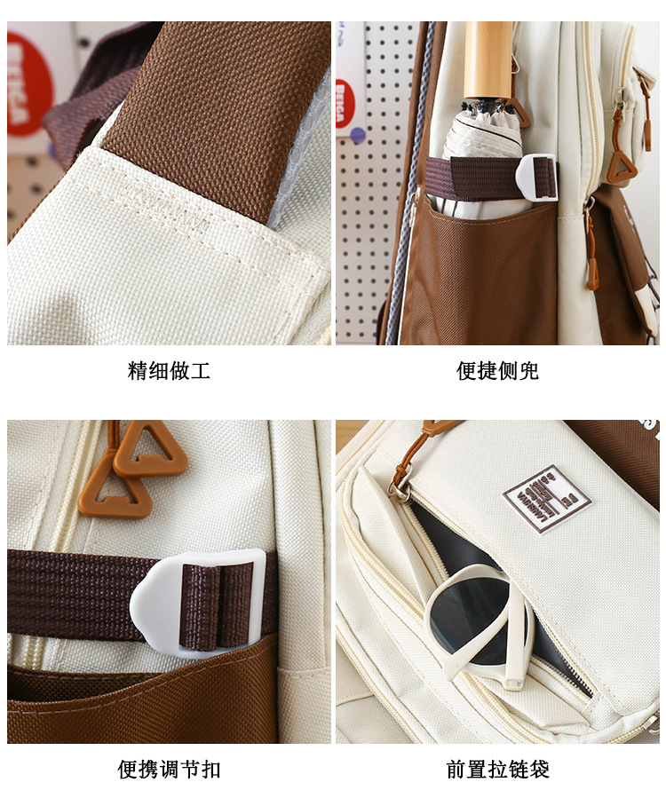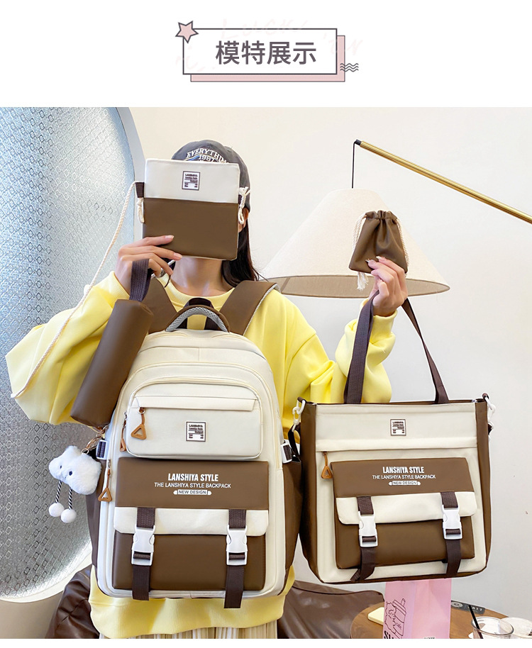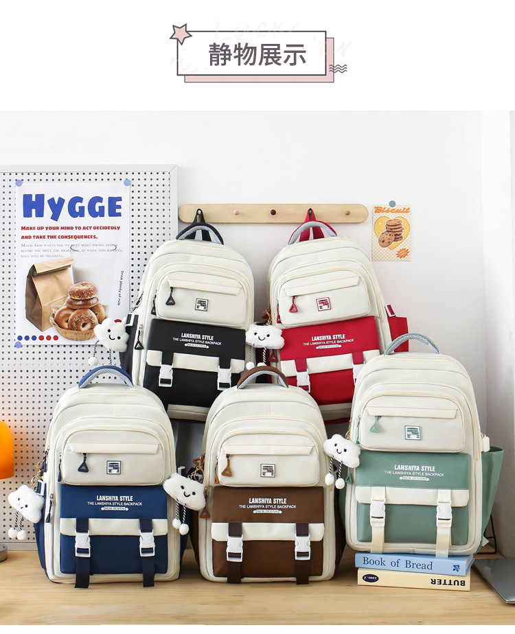 批发学生书包女初中生高颜值纯色双肩包男校园逛街五件套背包厂家