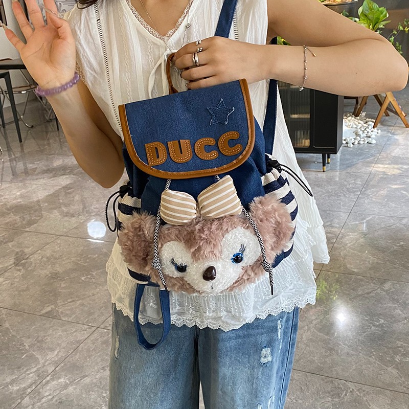 书包ins小众达菲雪莉饼饼毛绒包双肩包卡通痛包大容量学生玩偶包