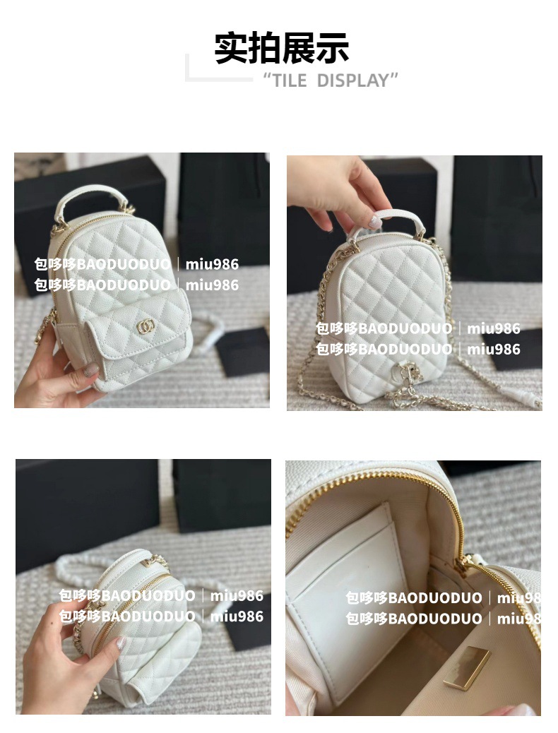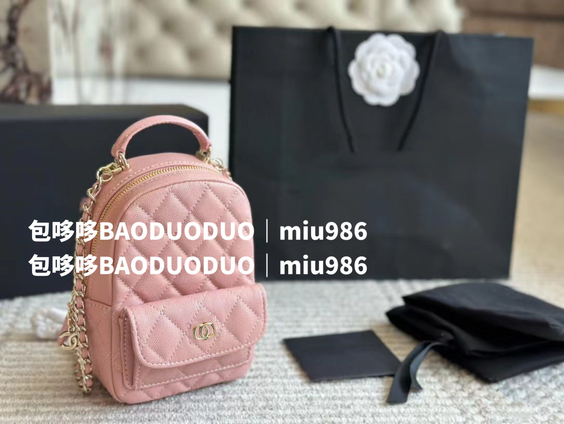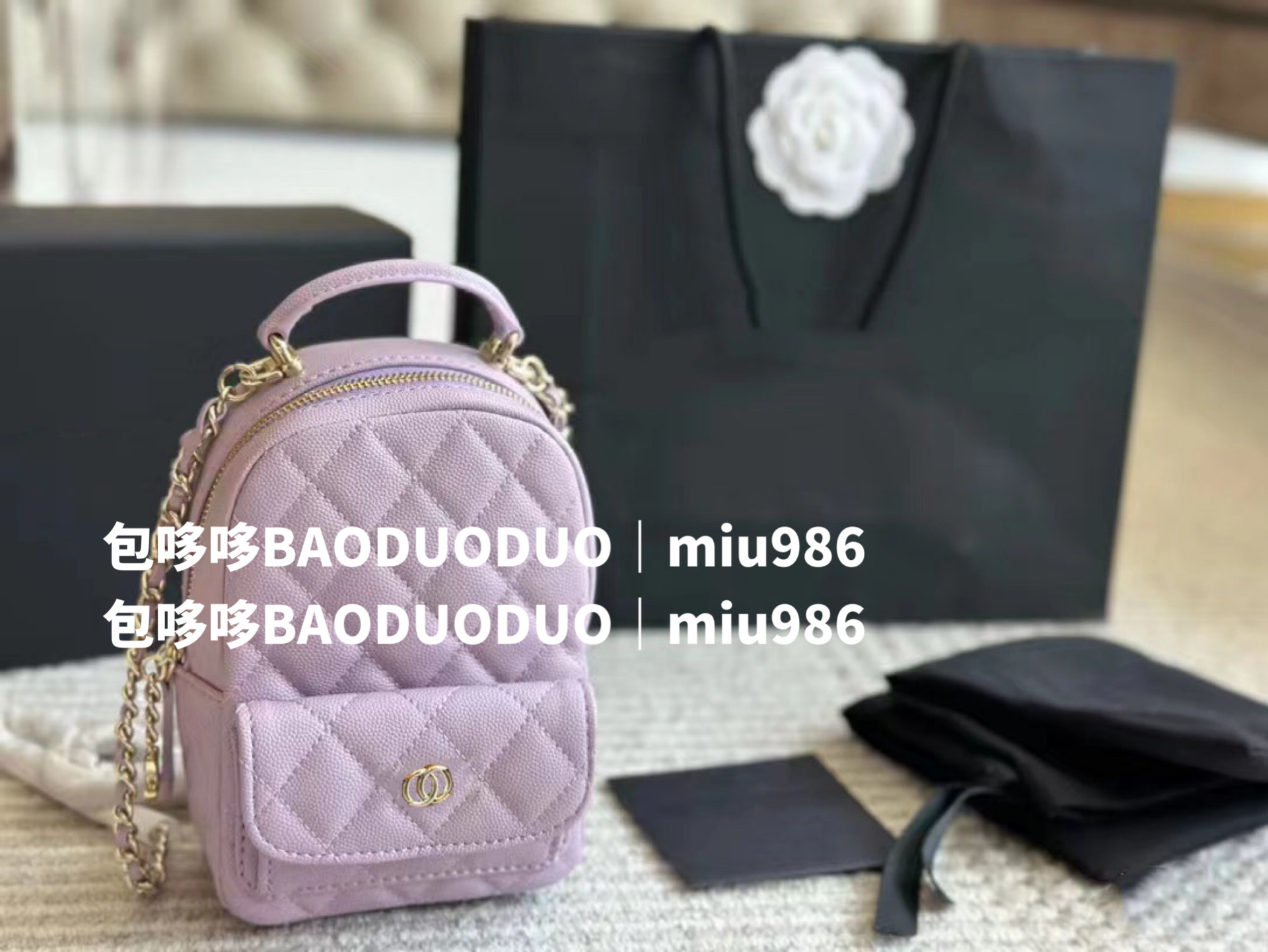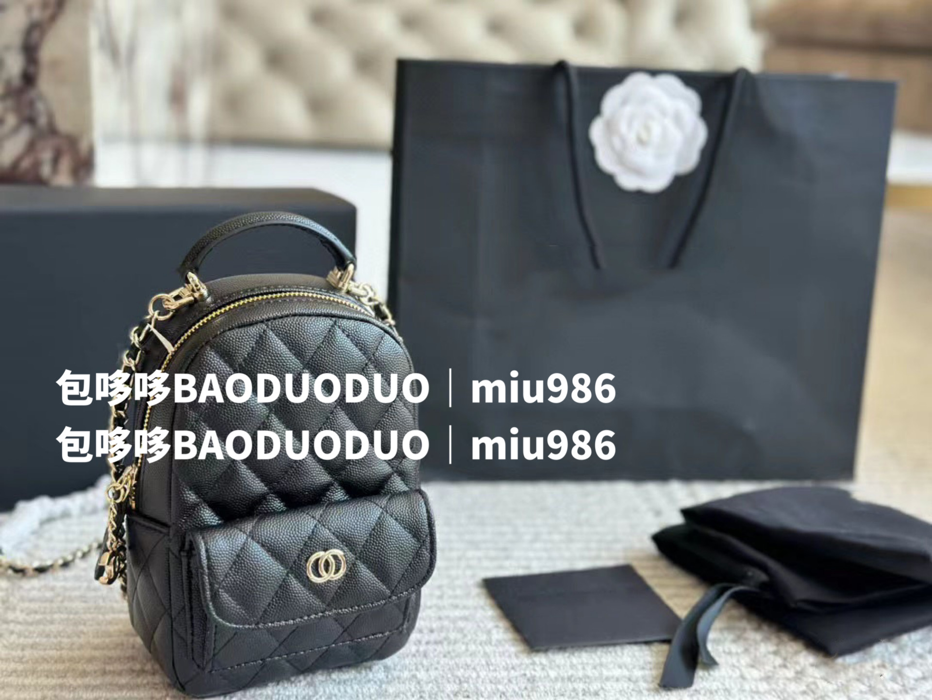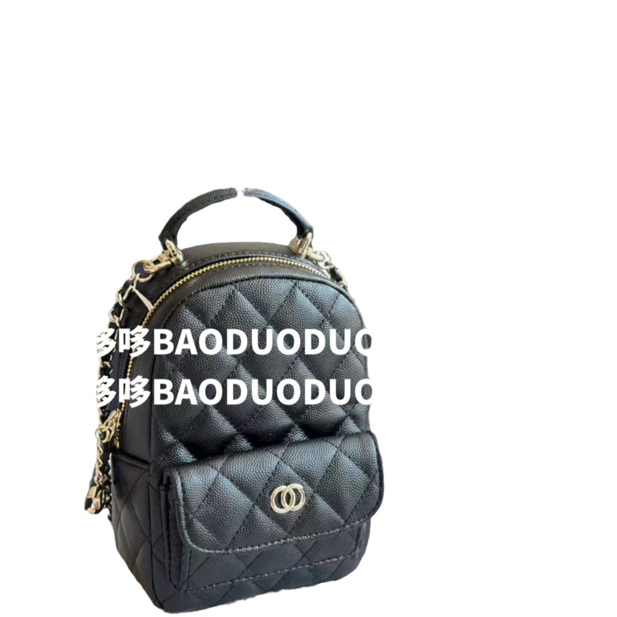 24C新款小香风mini小书包菱格链条荔枝牛皮复古手提双肩包小背包