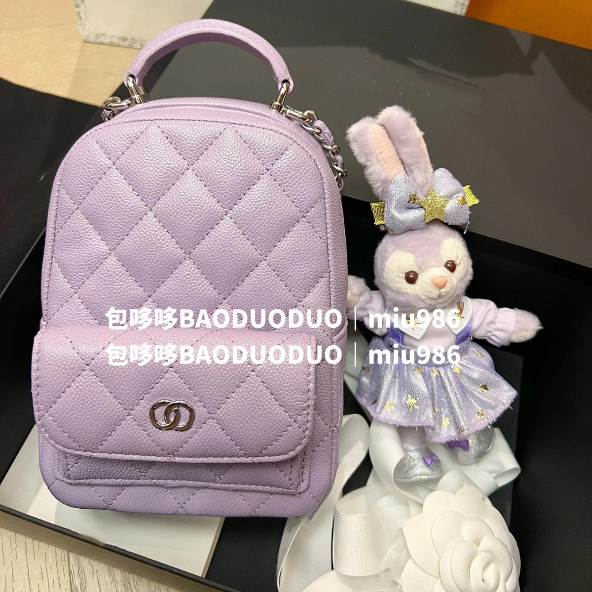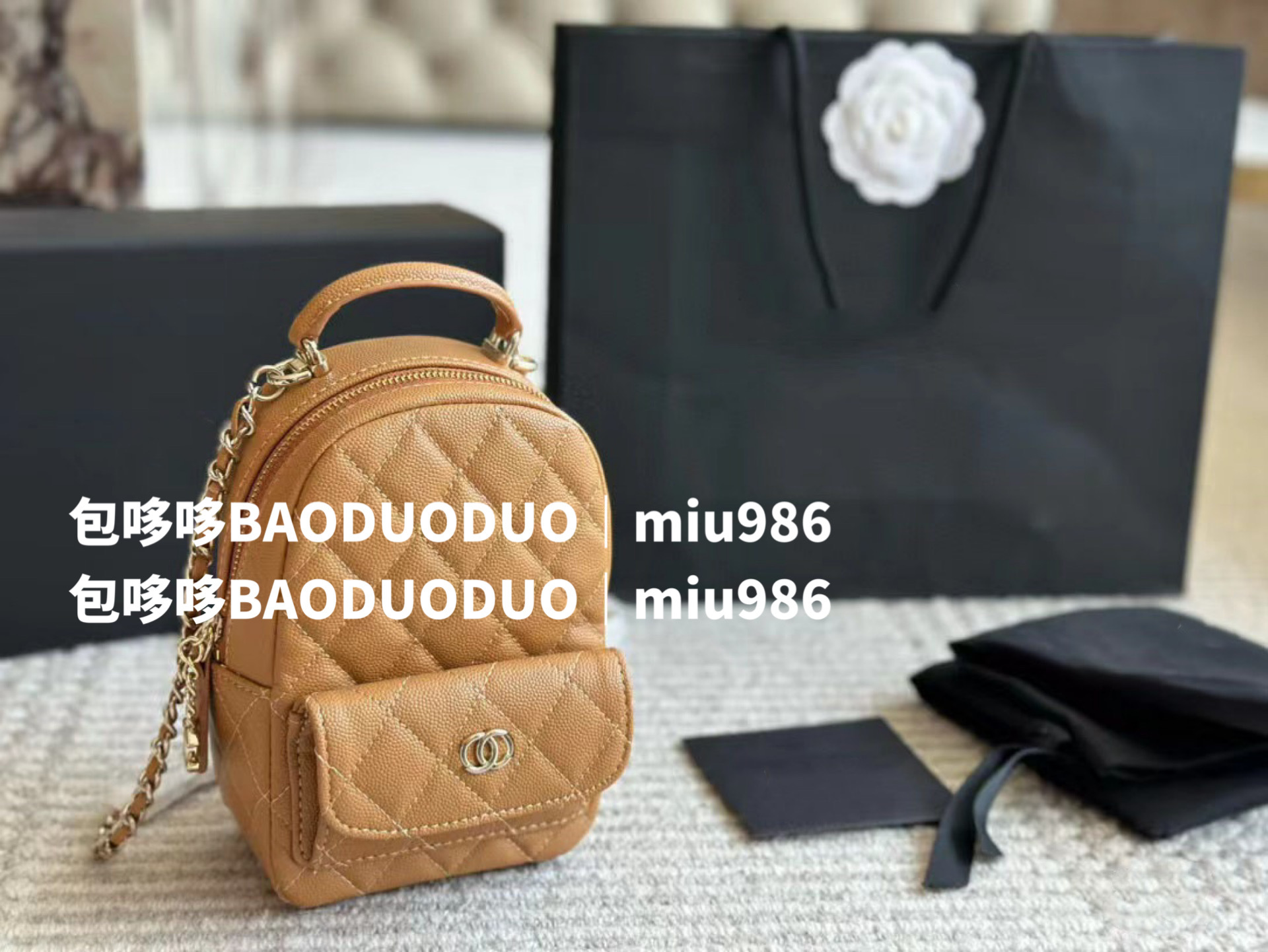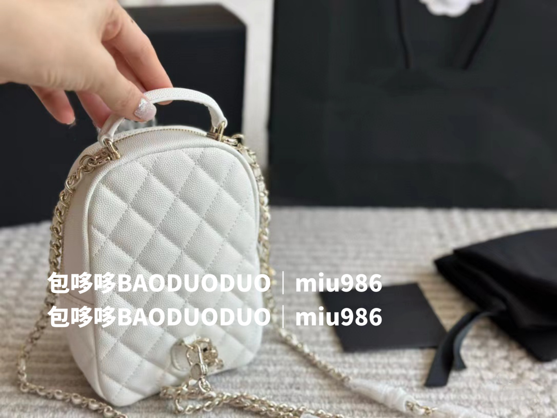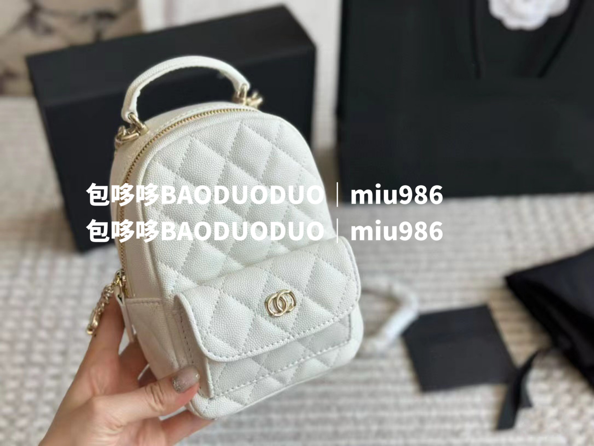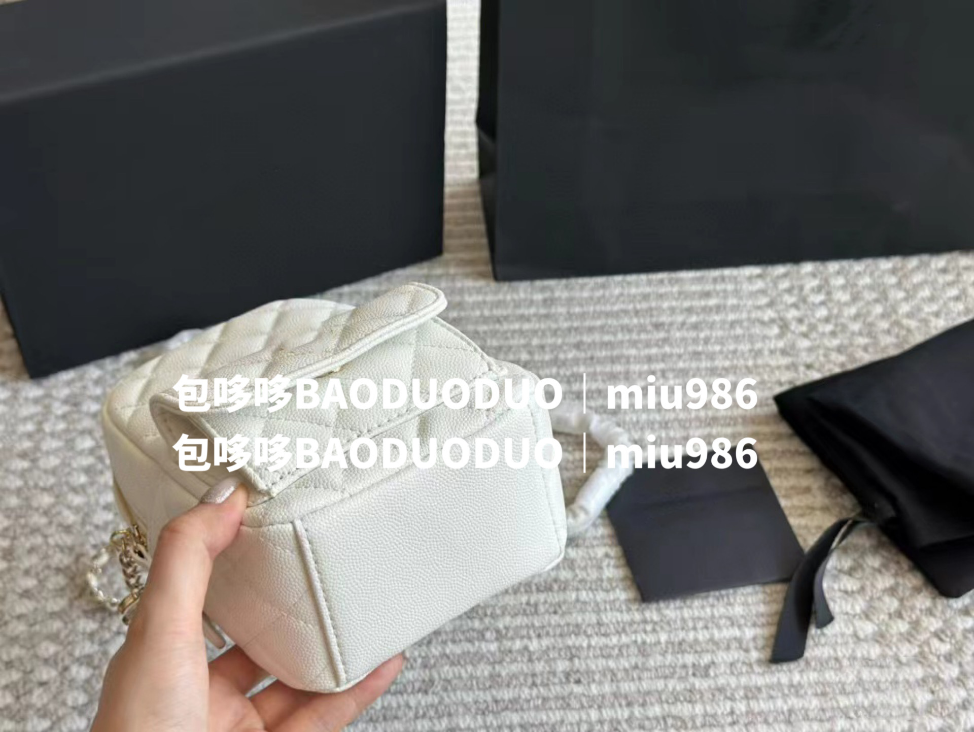 24C新款小香风mini小书包菱格链条荔枝牛皮复古手提双肩包小背包