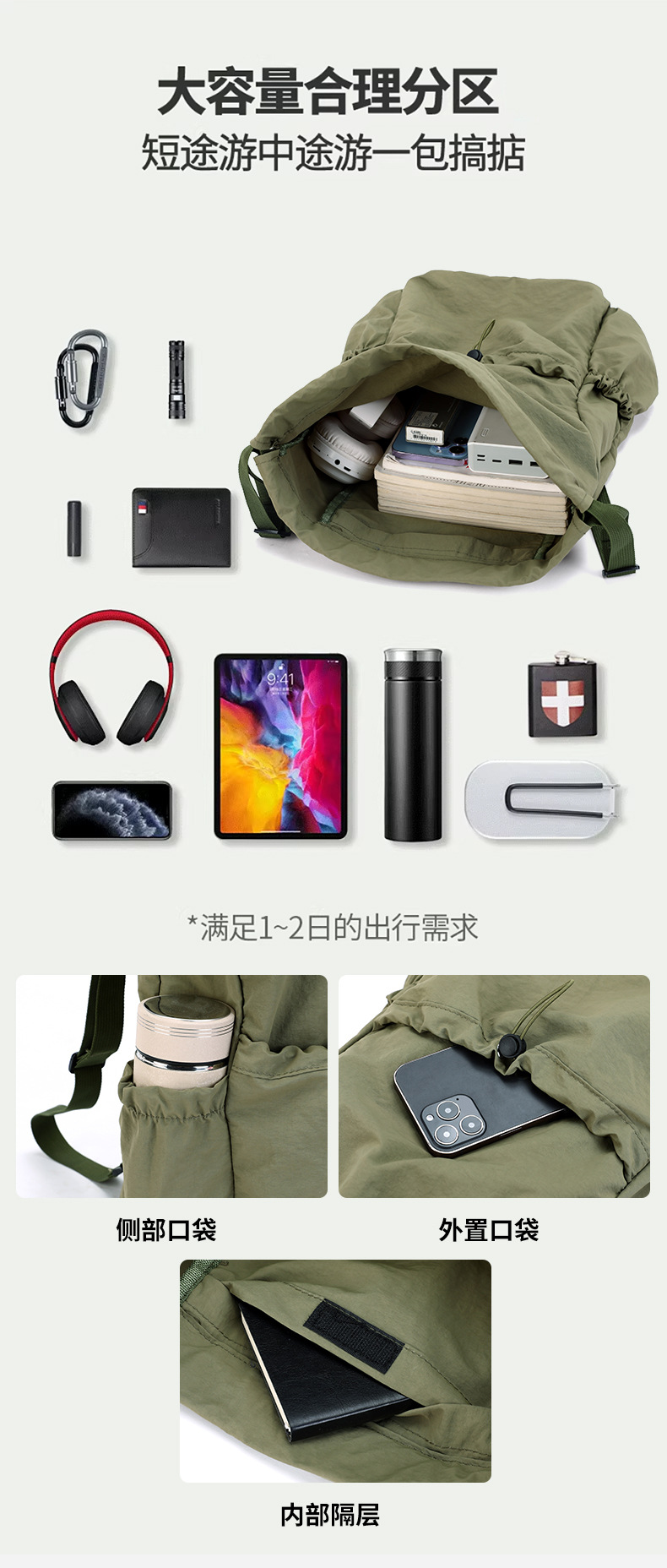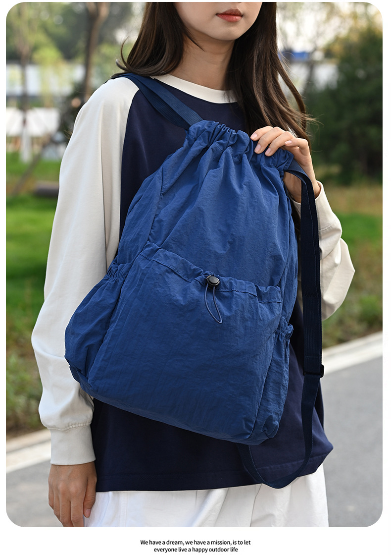 双肩背包书包男女学生户外时尚轻便大容量防水抽绳运动布袋收纳包