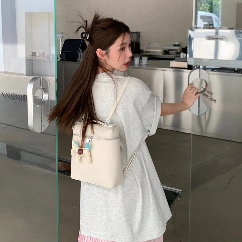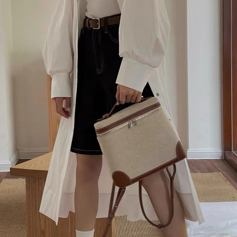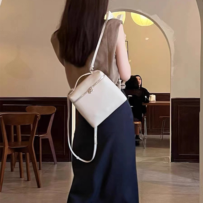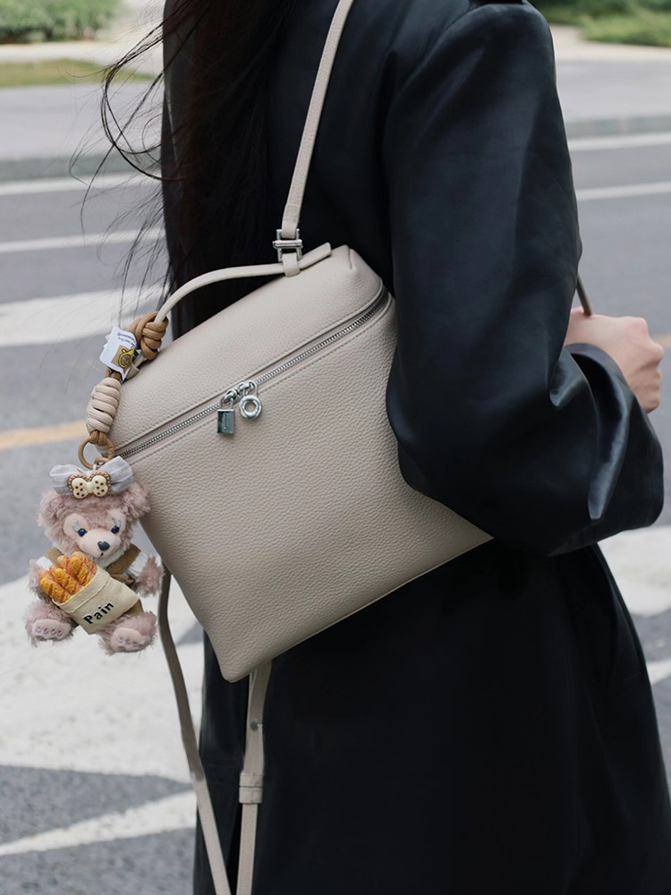 高品质LP双肩包女2025新款时尚牛皮背包上班通勤书包loro包饭盒包