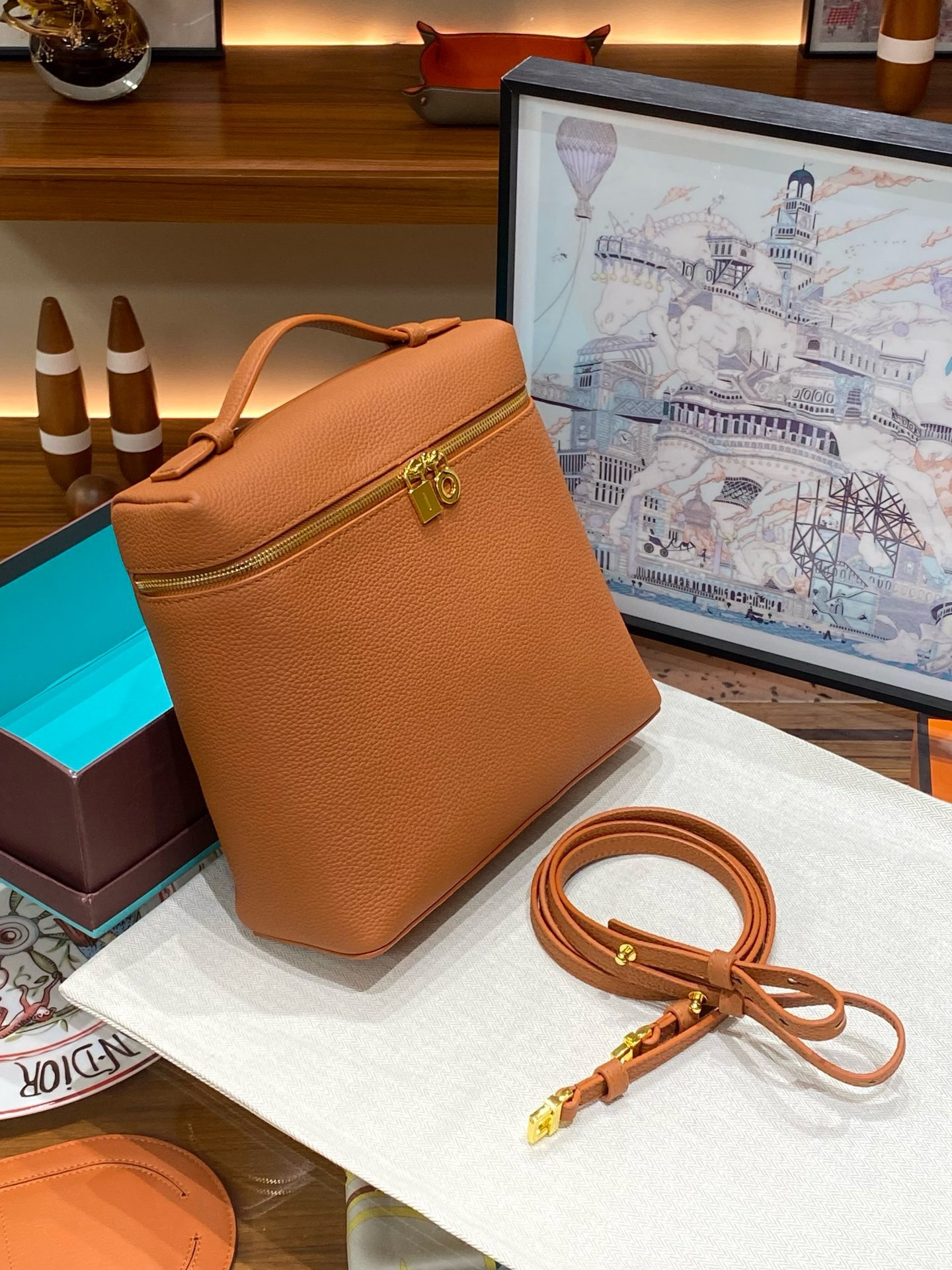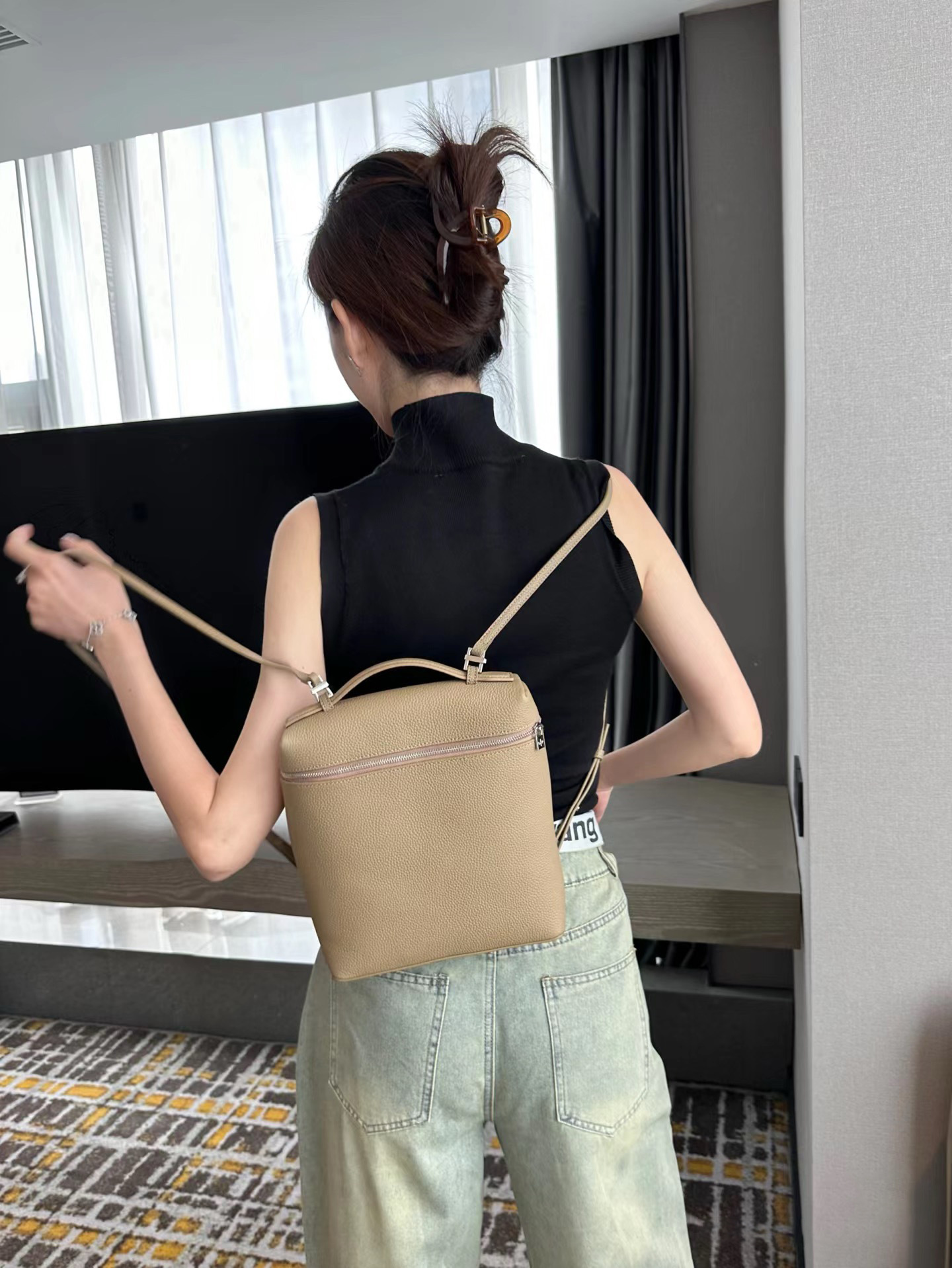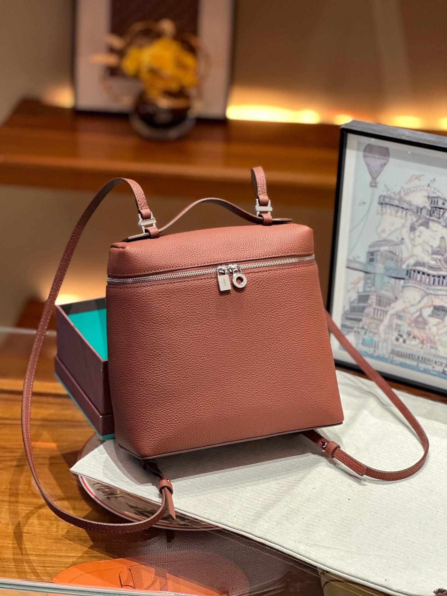 高品质LP双肩包女2025新款时尚牛皮背包上班通勤书包loro包饭盒包