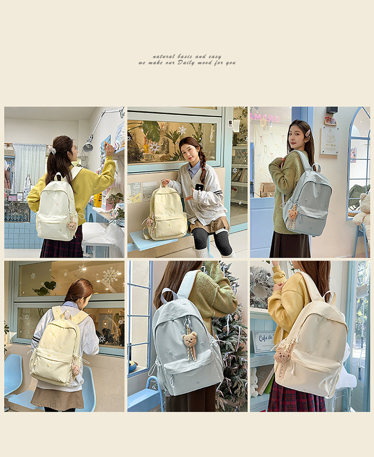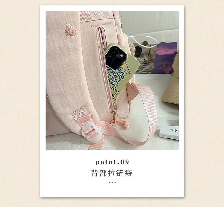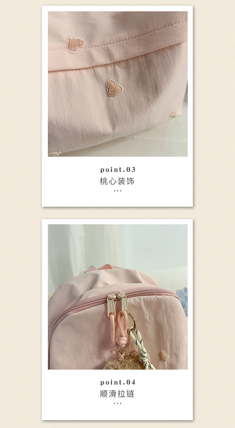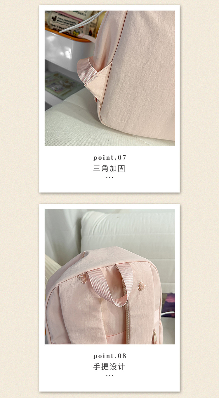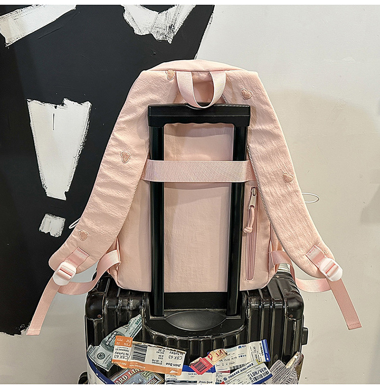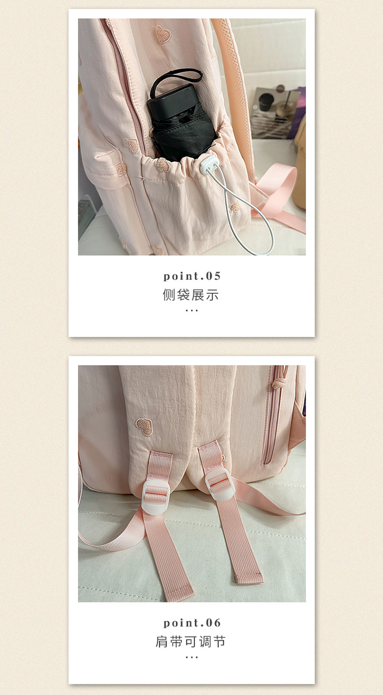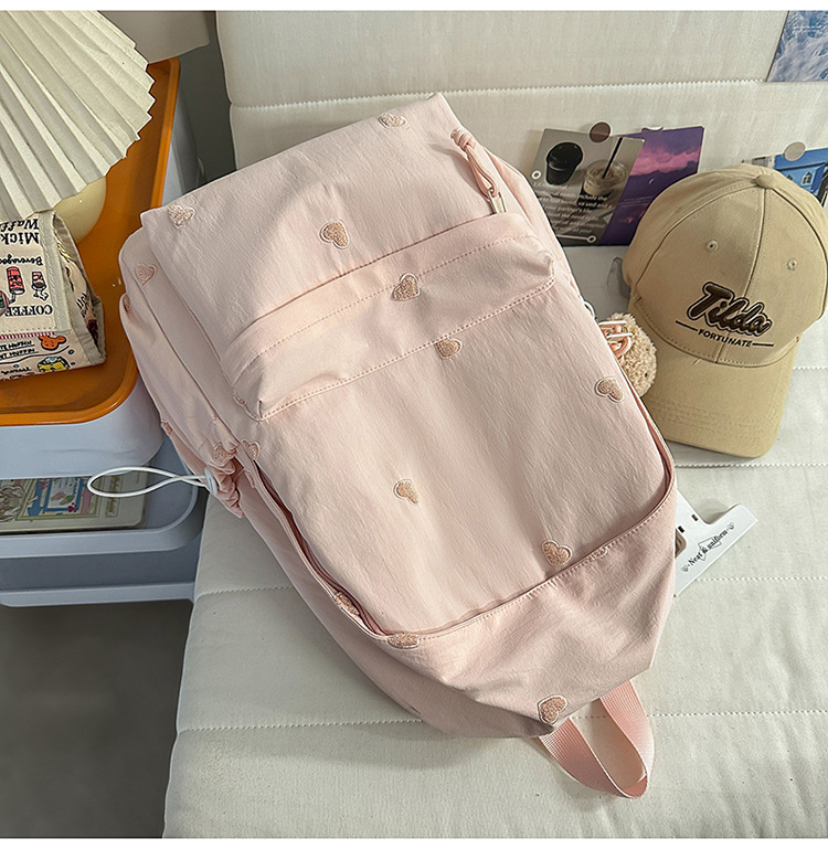 书包少女简约百搭双肩包大学生中学生爱心刺绣纯色补课包出游背包