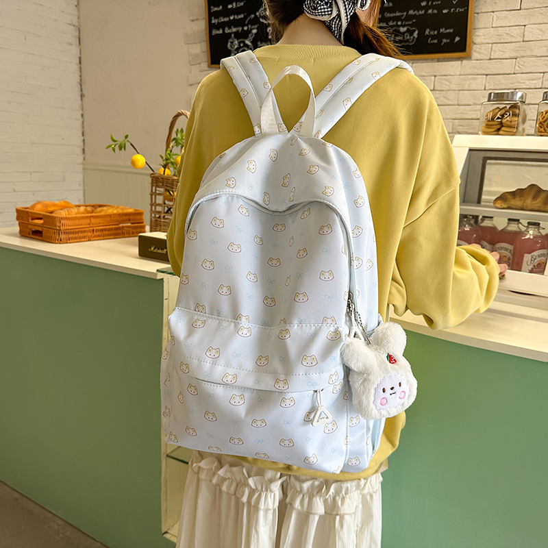 可爱蝴蝶结书包猫咪少女温柔日系初中生小狗大学生双肩包背包跨境