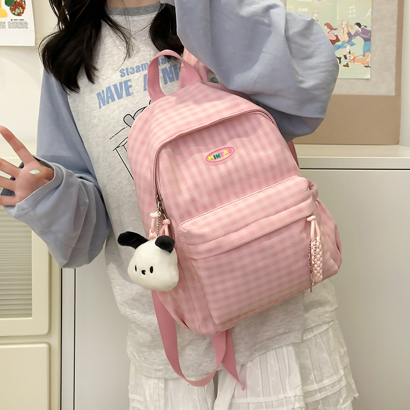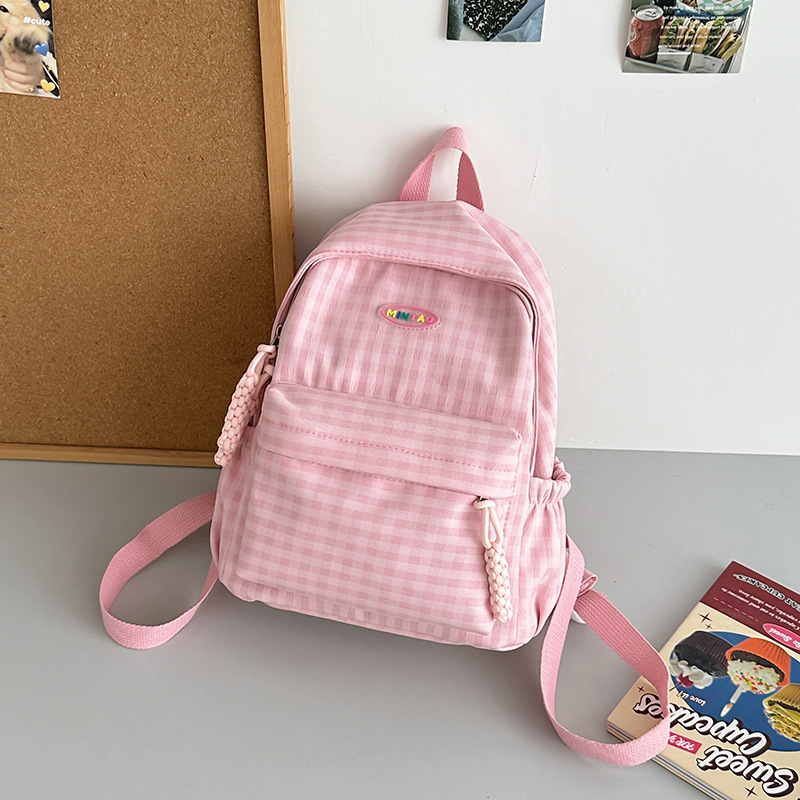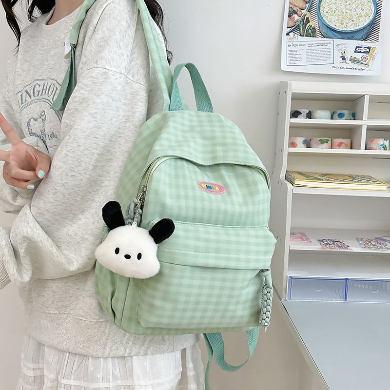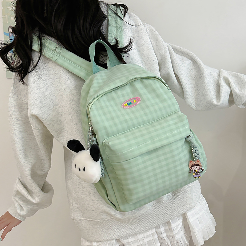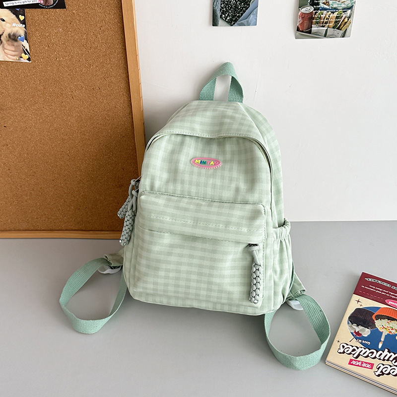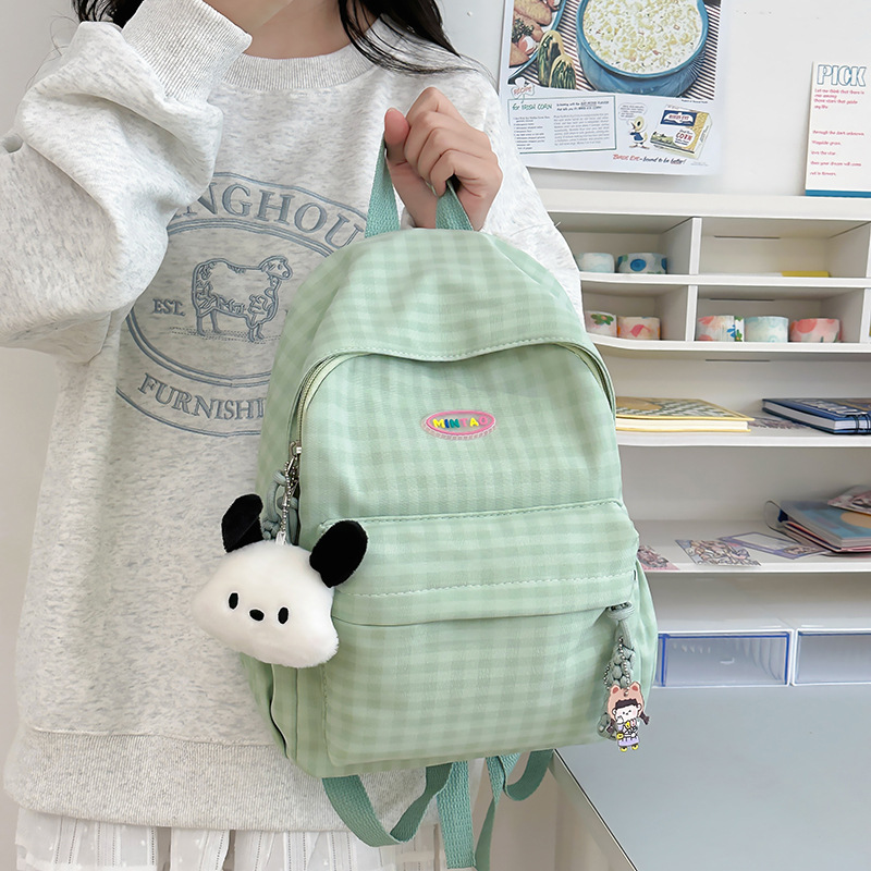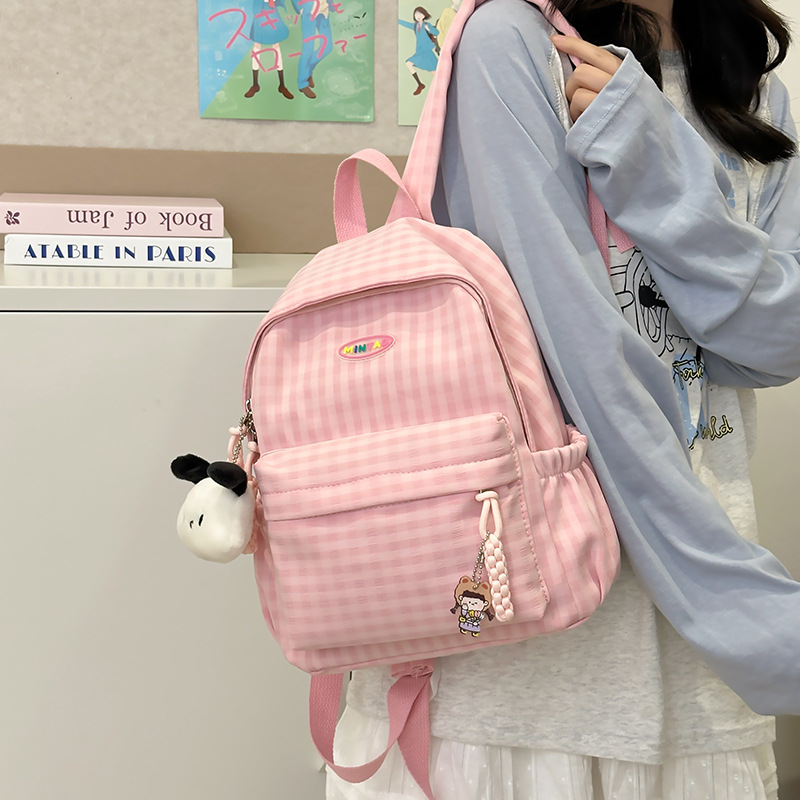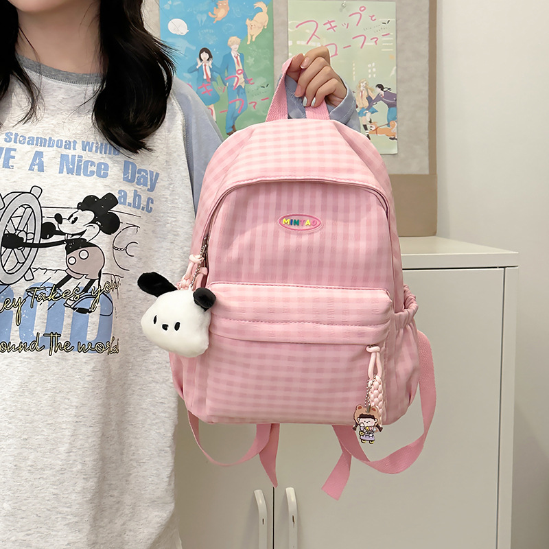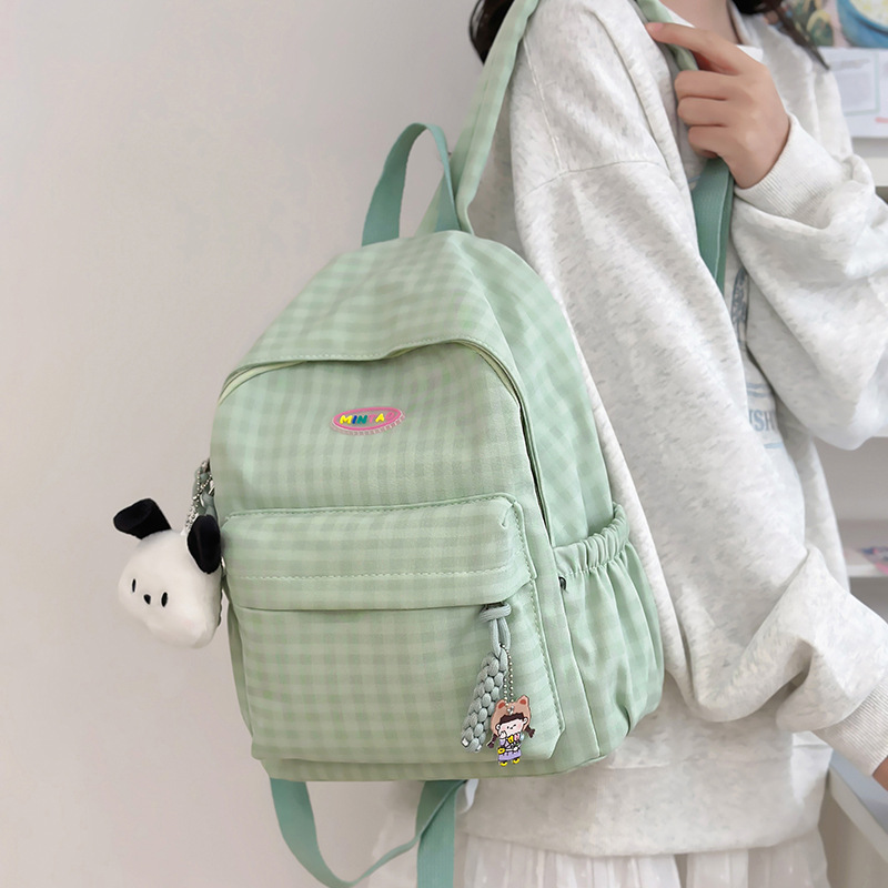 格子双肩包简约大容量学生书包新款日系双肩背包女ins原宿小背包