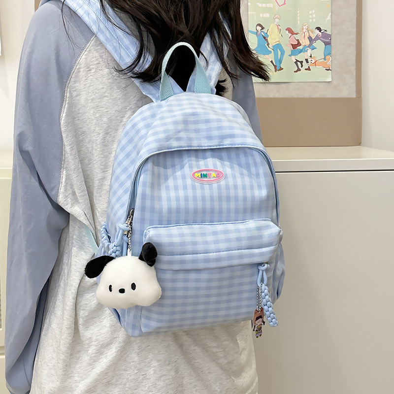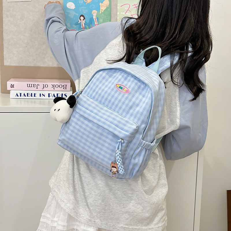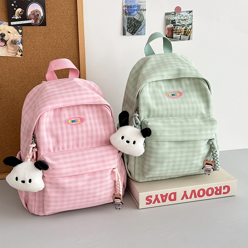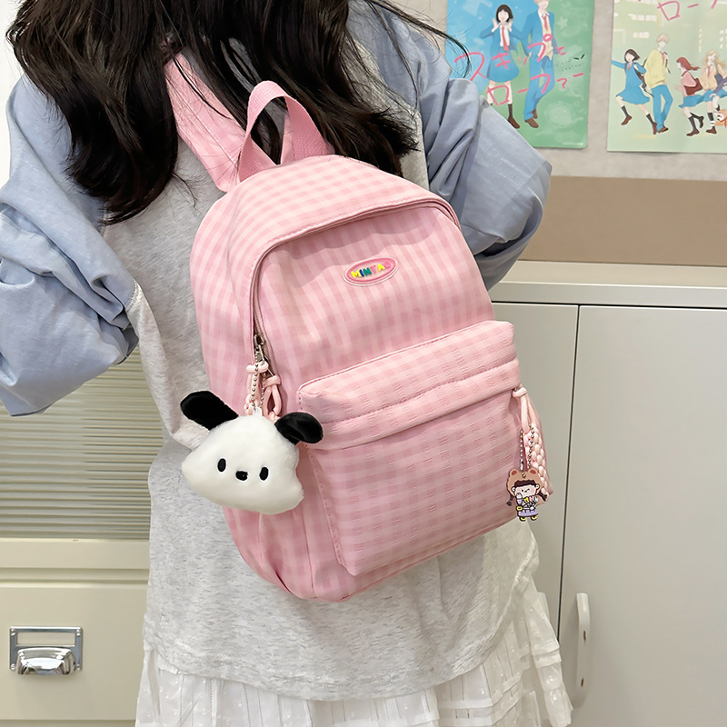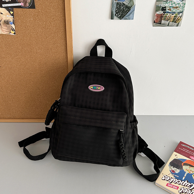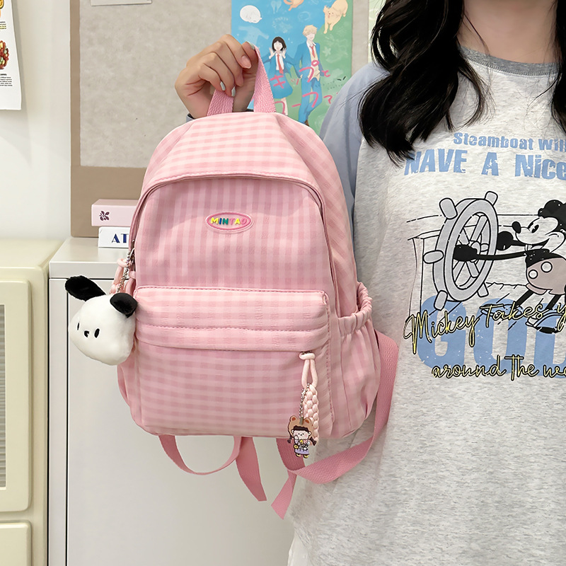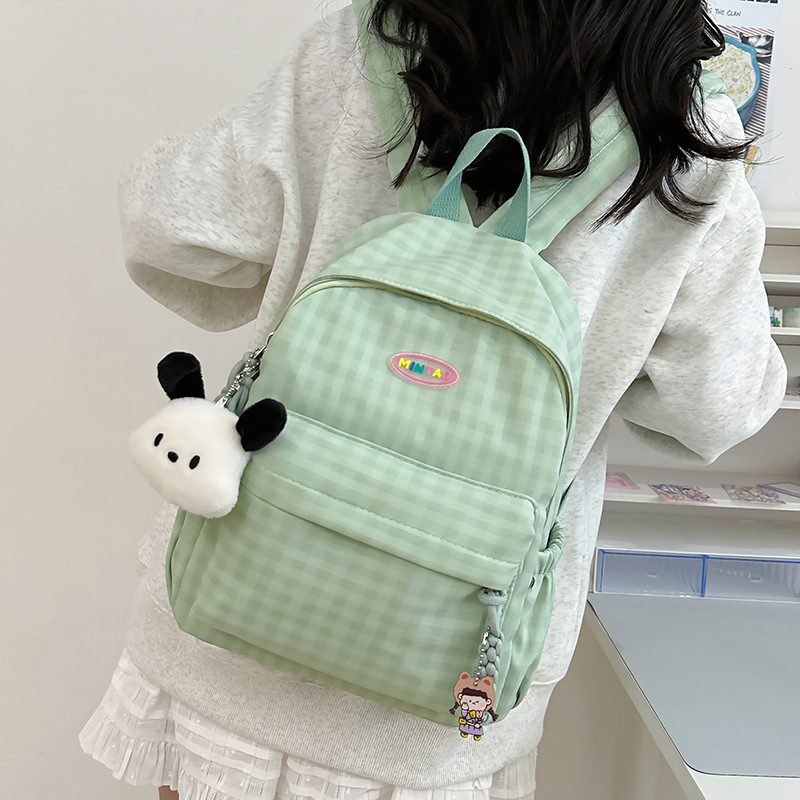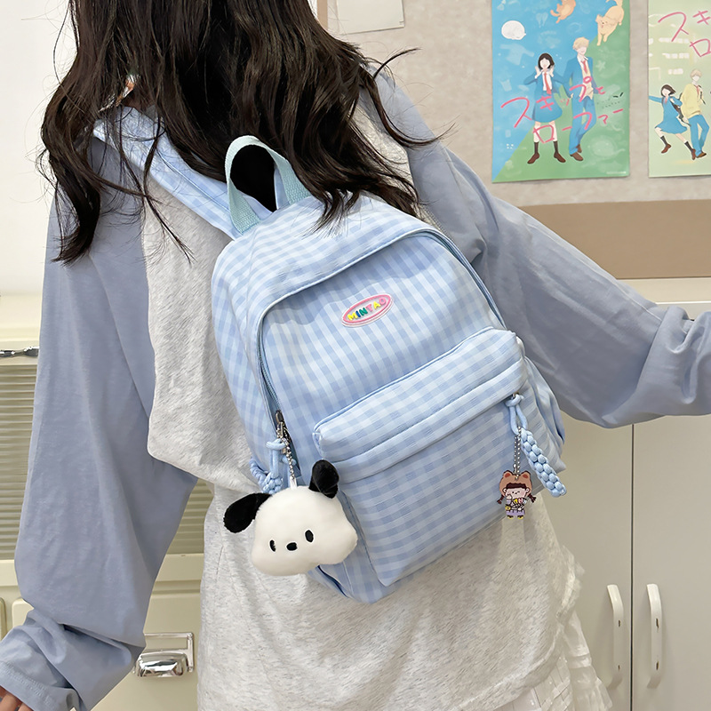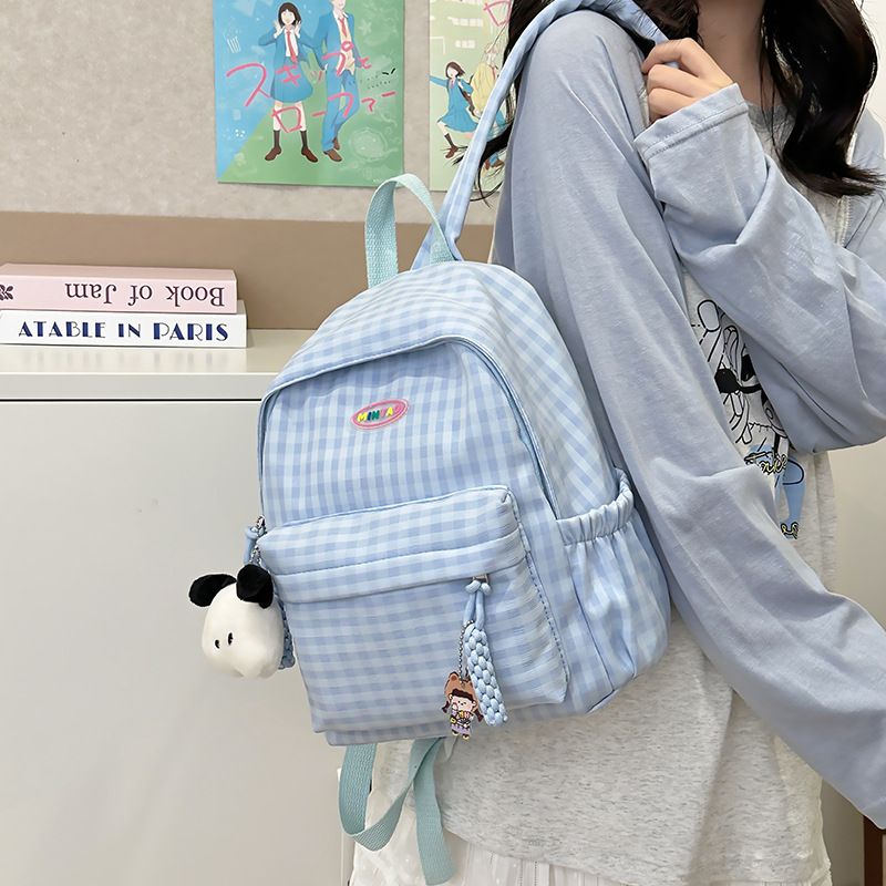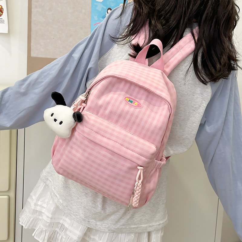 格子双肩包简约大容量学生书包新款日系双肩背包女ins原宿小背包