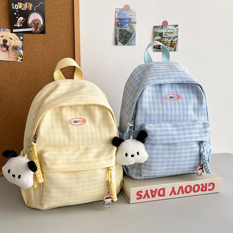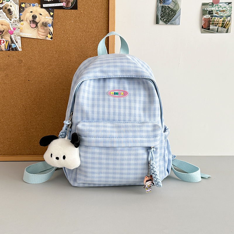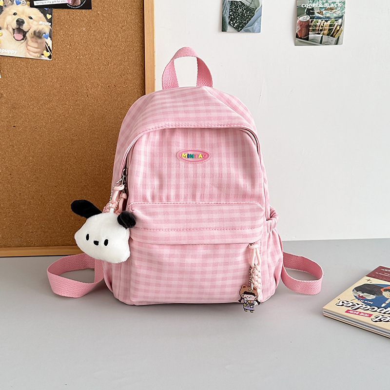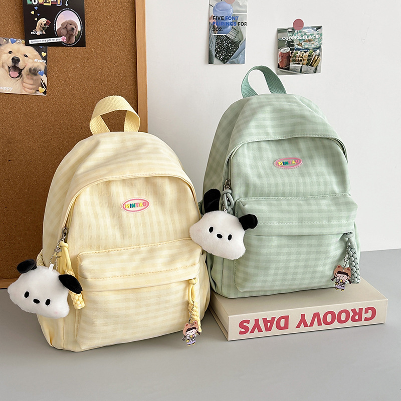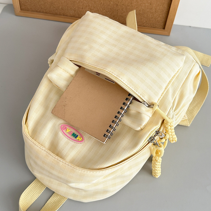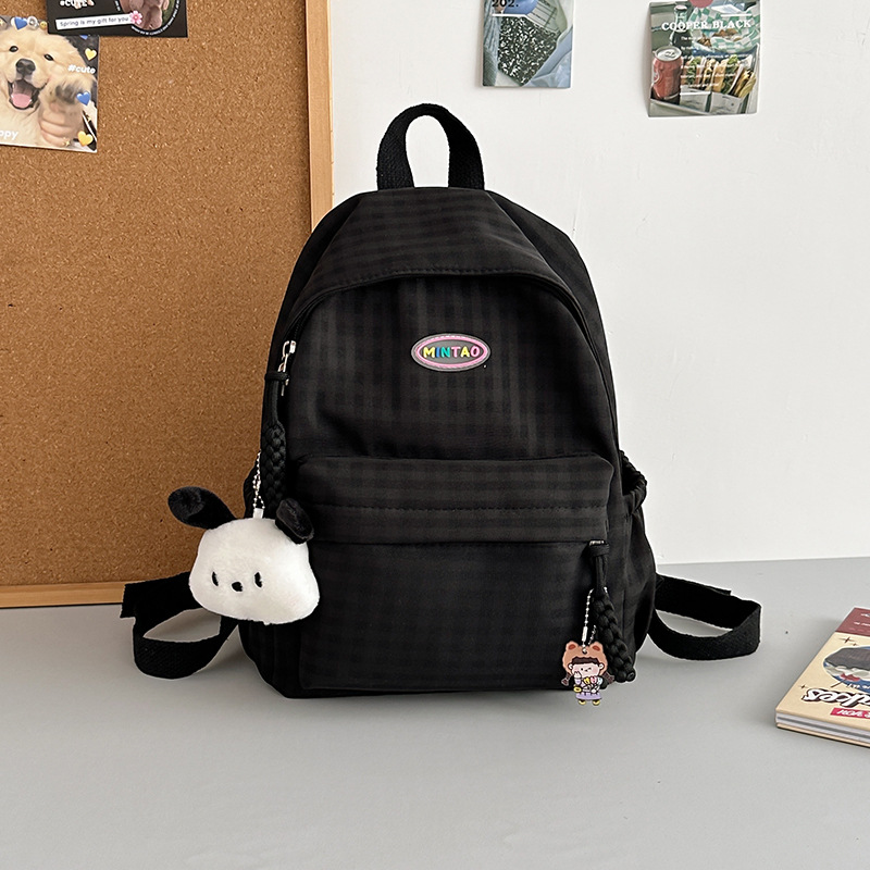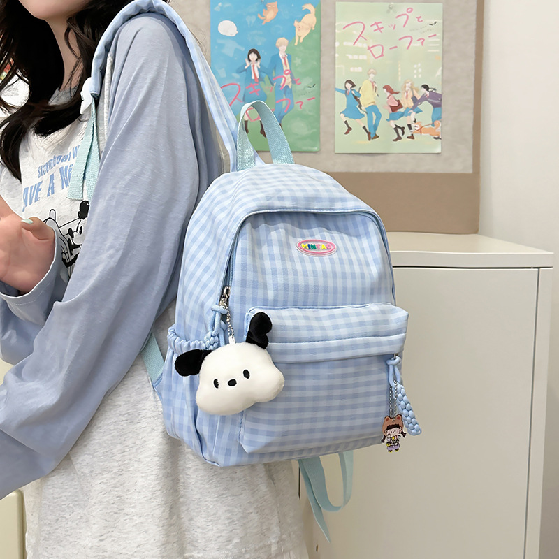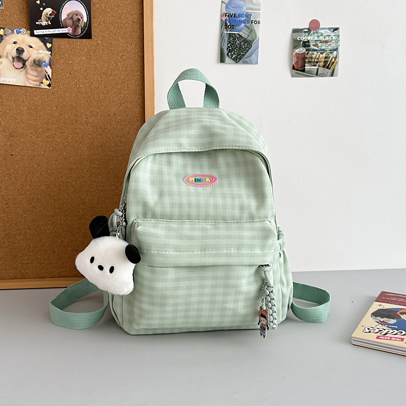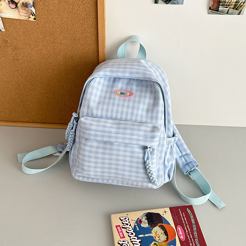 格子双肩包简约大容量学生书包新款日系双肩背包女ins原宿小背包