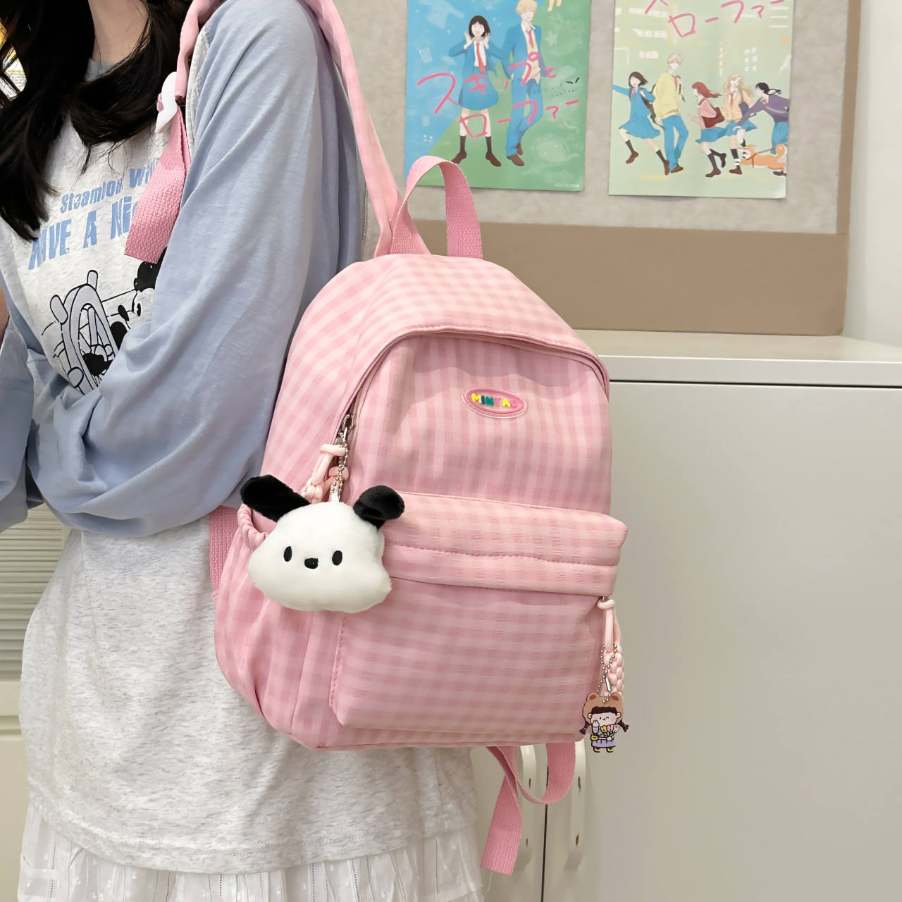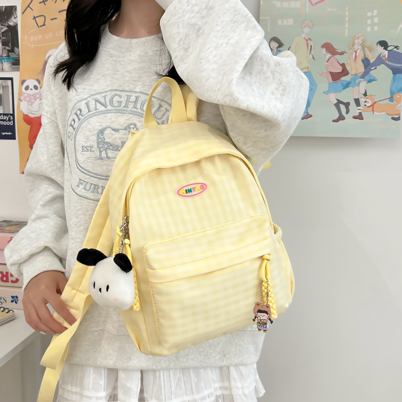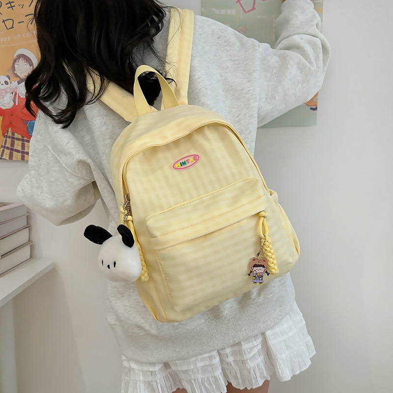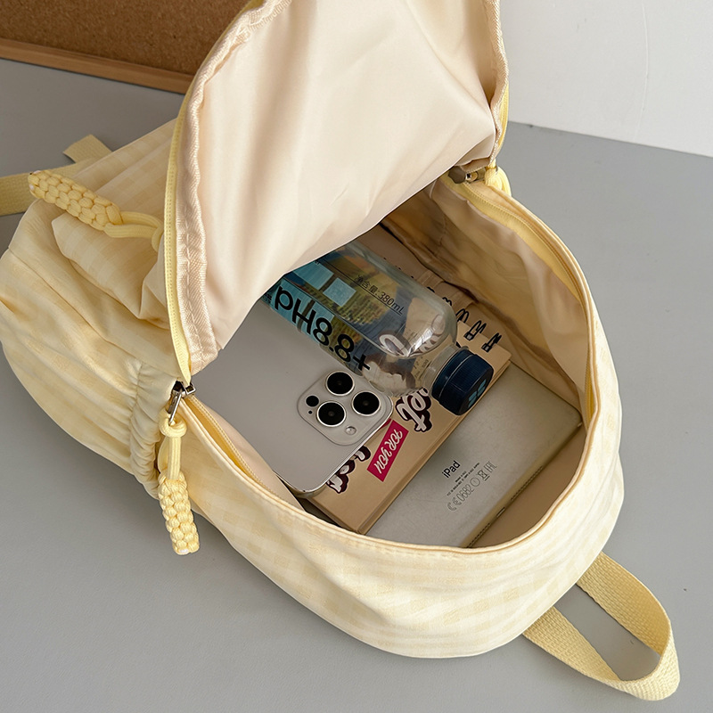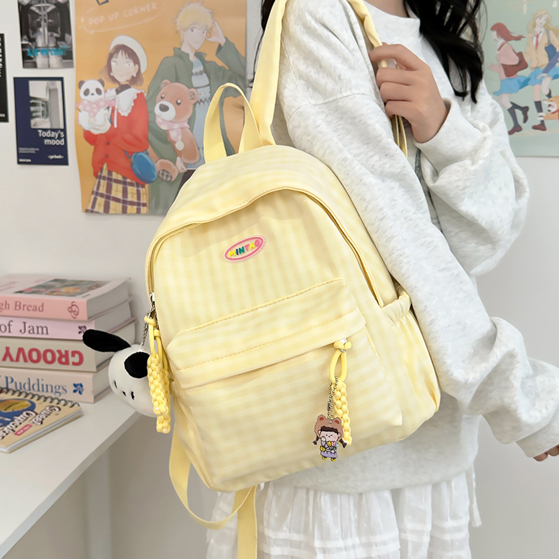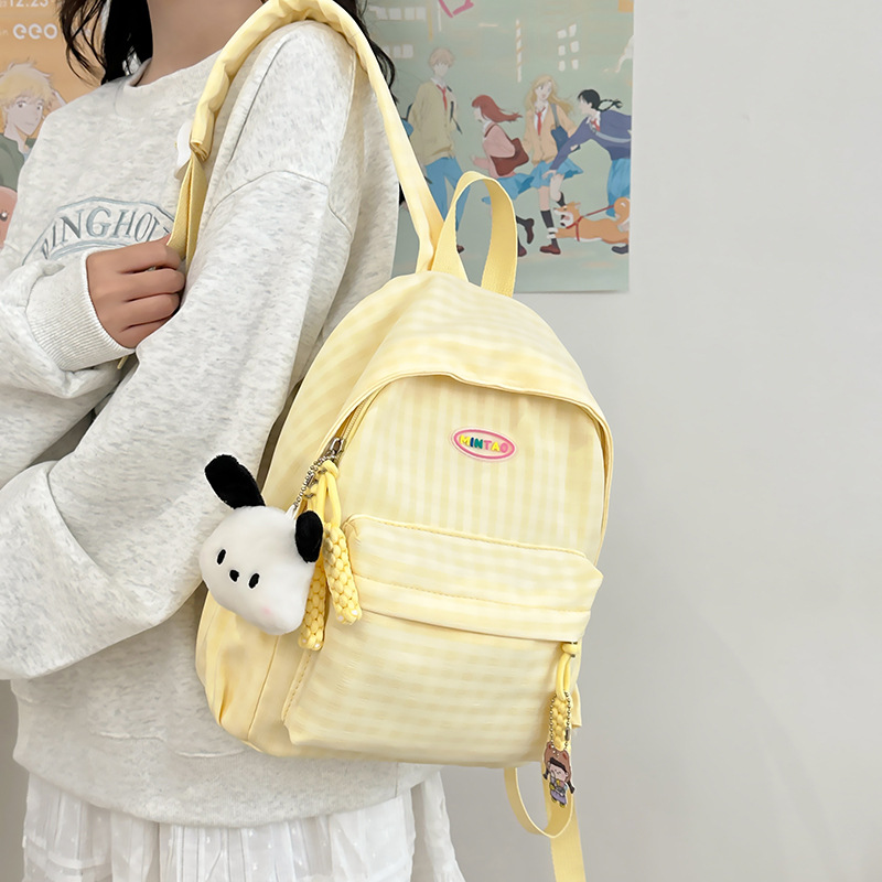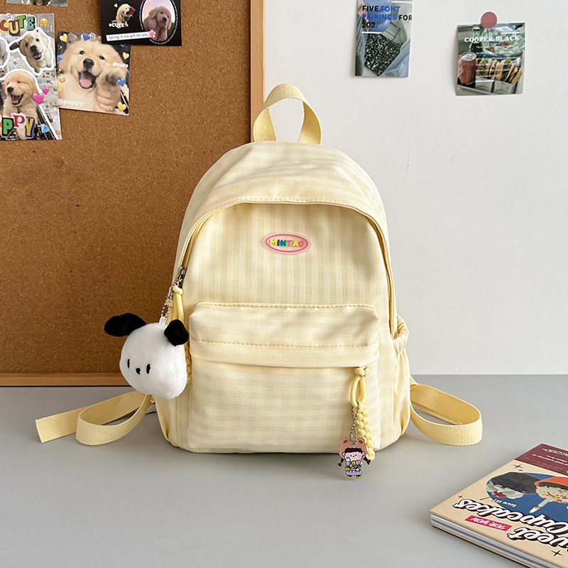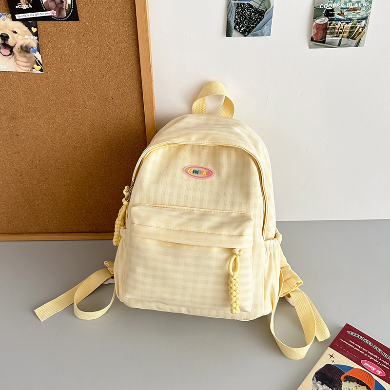 格子双肩包简约大容量学生书包新款日系双肩背包女ins原宿小背包