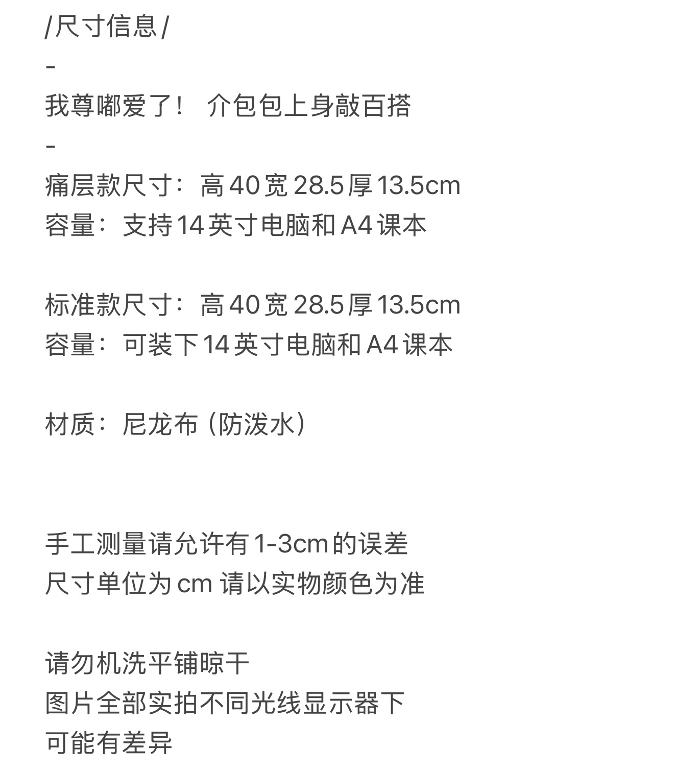 | 大号尺寸高40*宽28.5*厚13.5cm | USD $5.24 | 999 piece available |