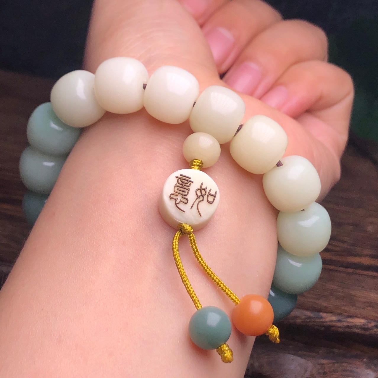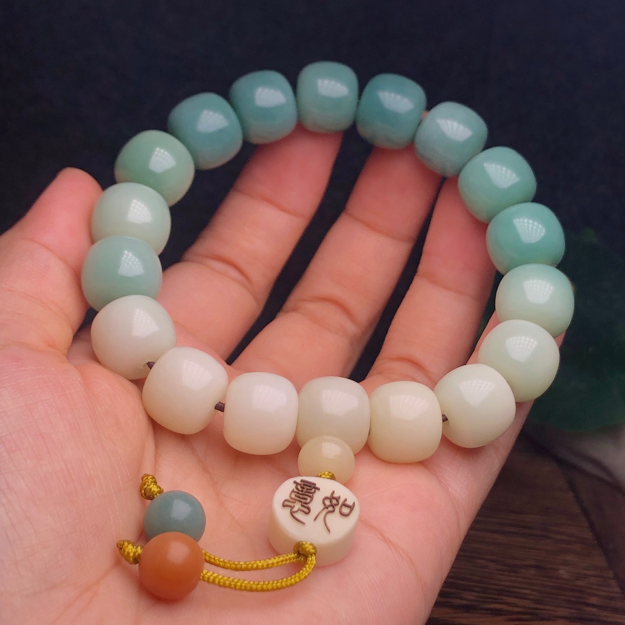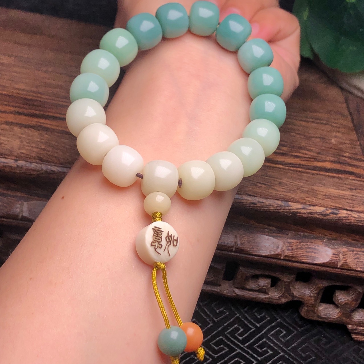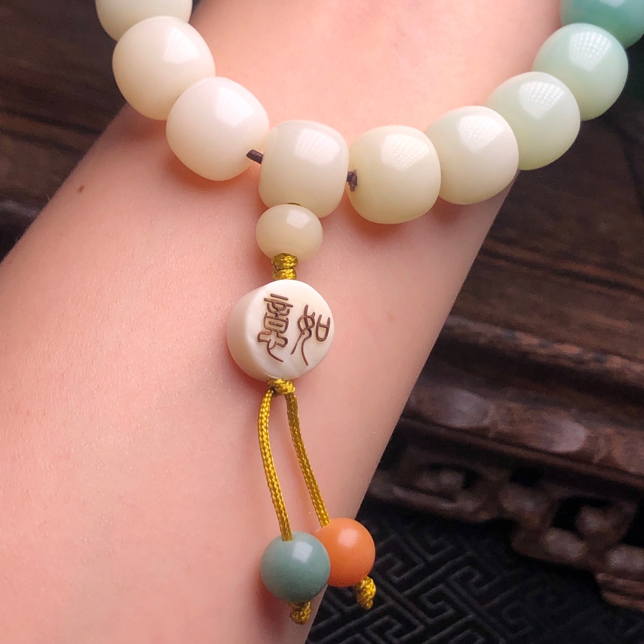 【商品介绍】: 此款主珠是阴皮菩提+象牙果如意 简单大方 一整条同料。