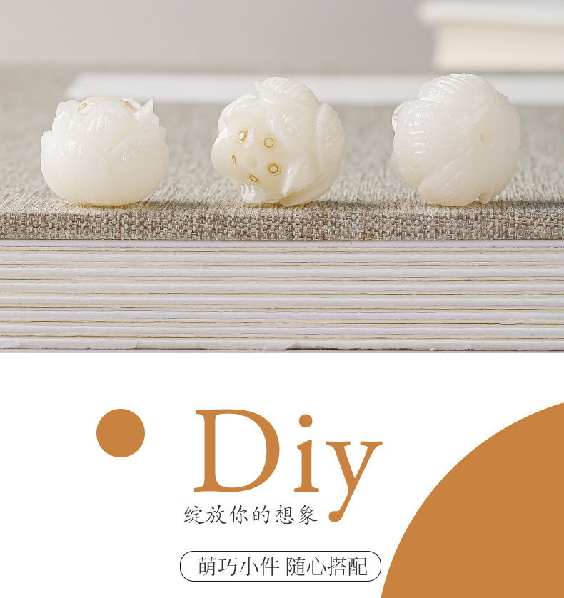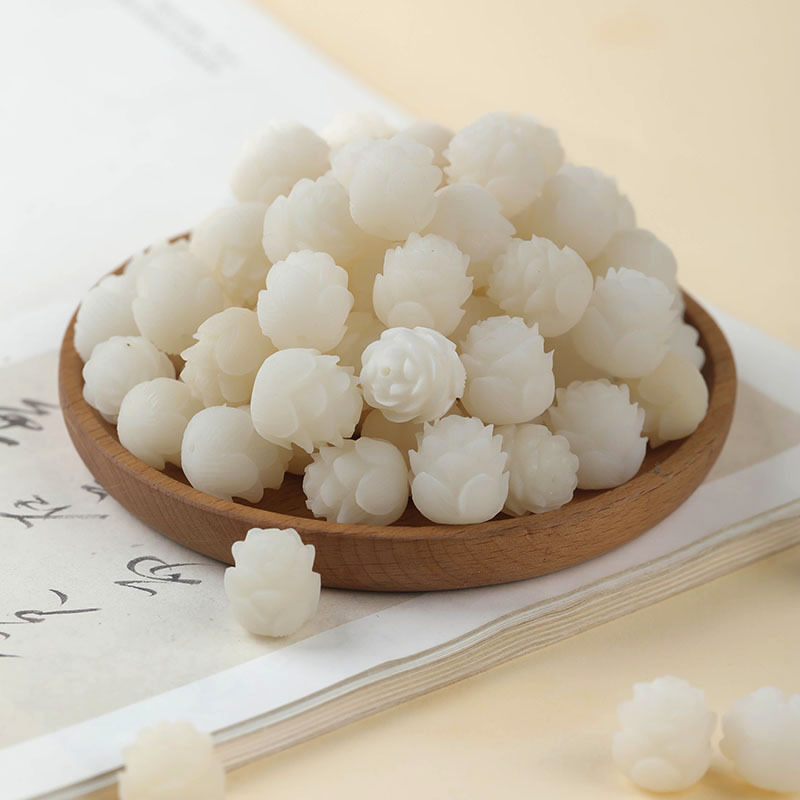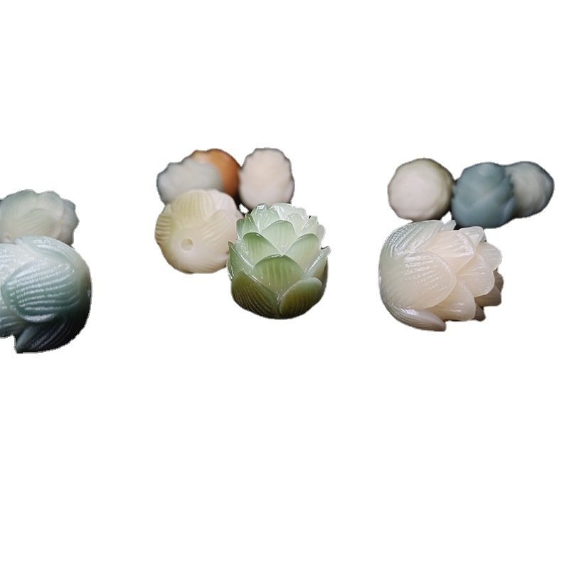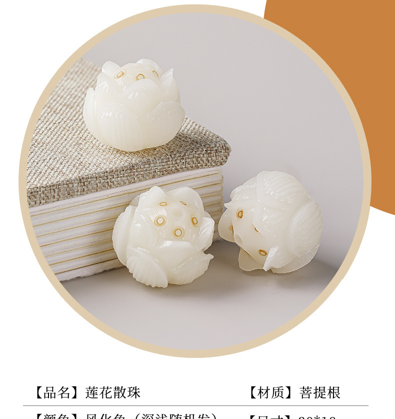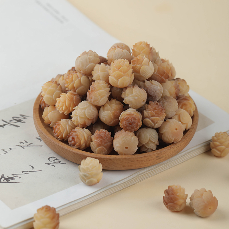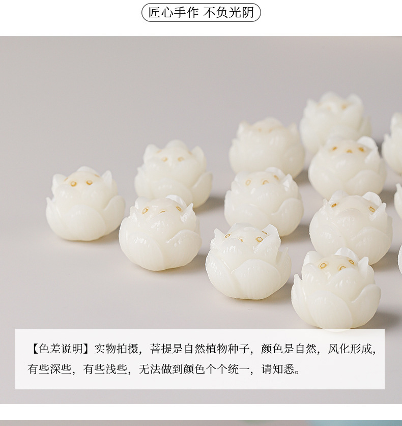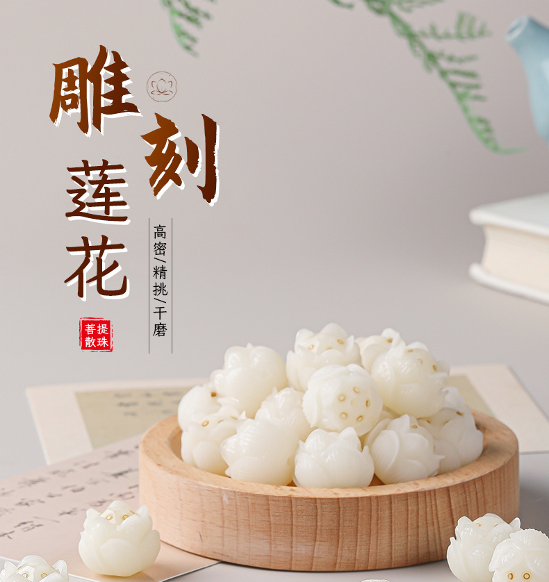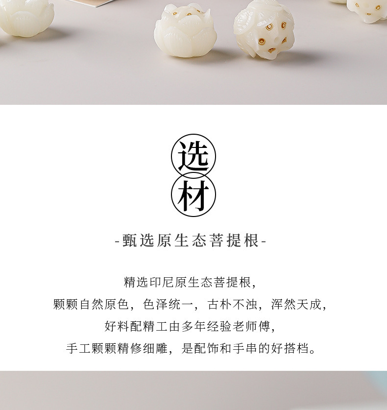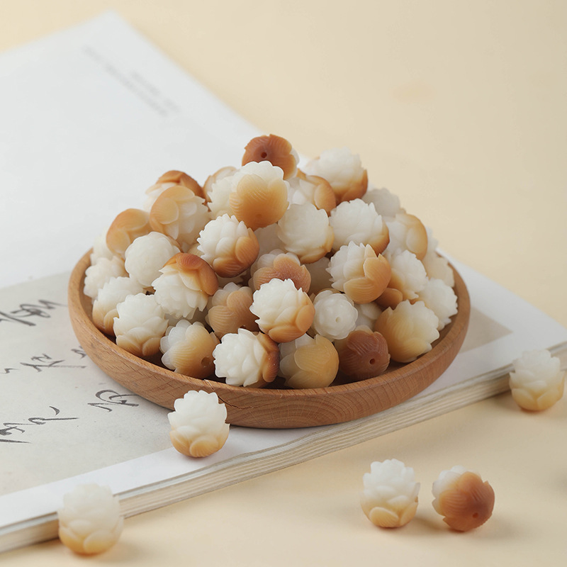 批发白玉菩提根莲花雕刻散珠炭烧飘花菩提子文玩创意DIY佛珠手串