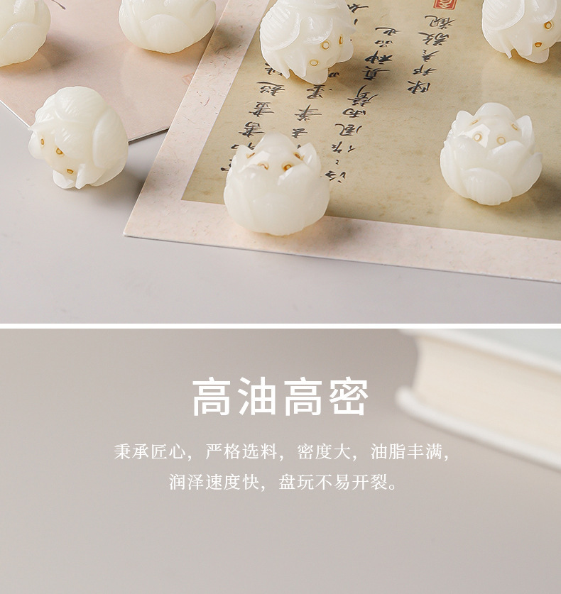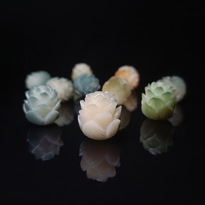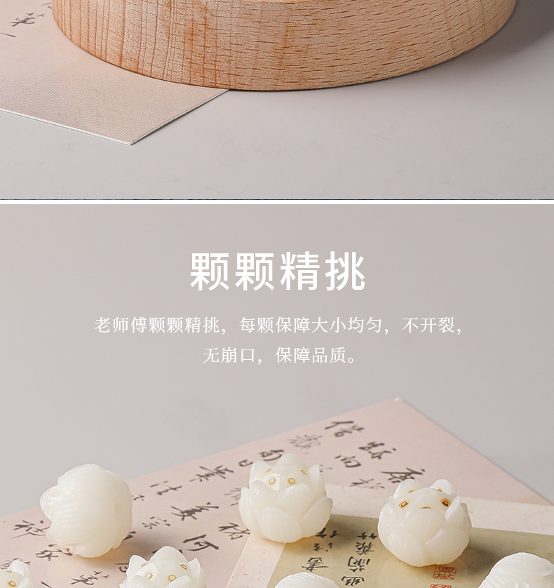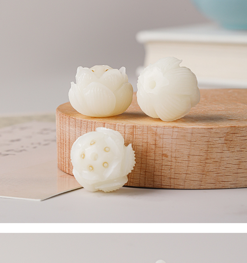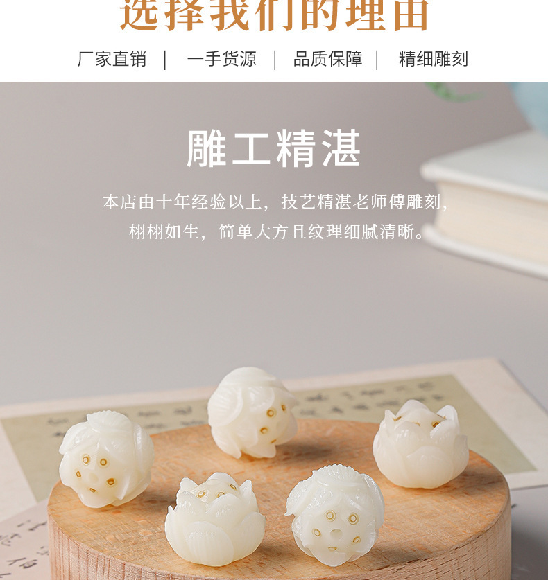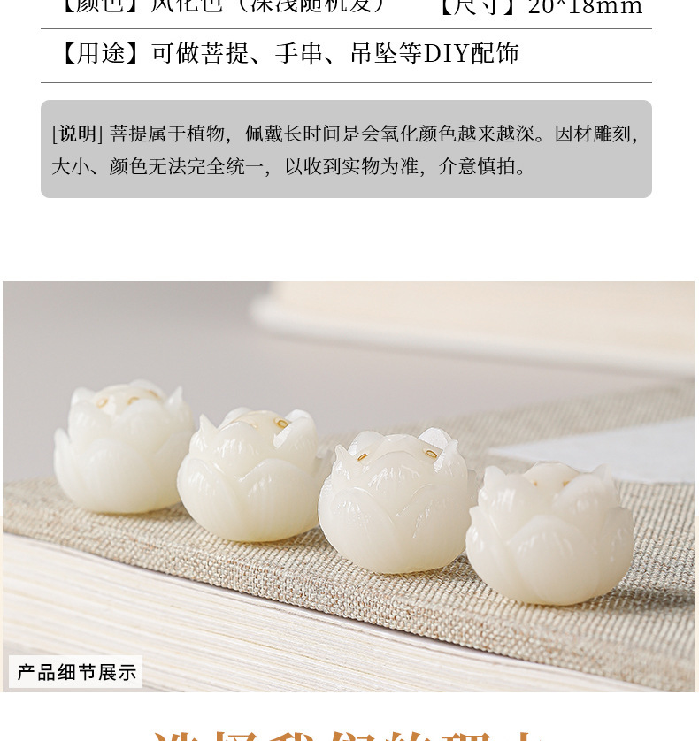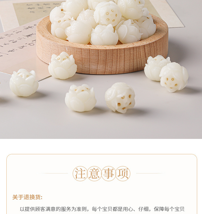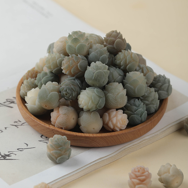 批发白玉菩提根莲花雕刻散珠炭烧飘花菩提子文玩创意DIY佛珠手串