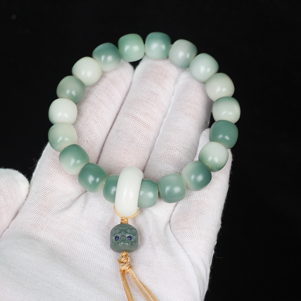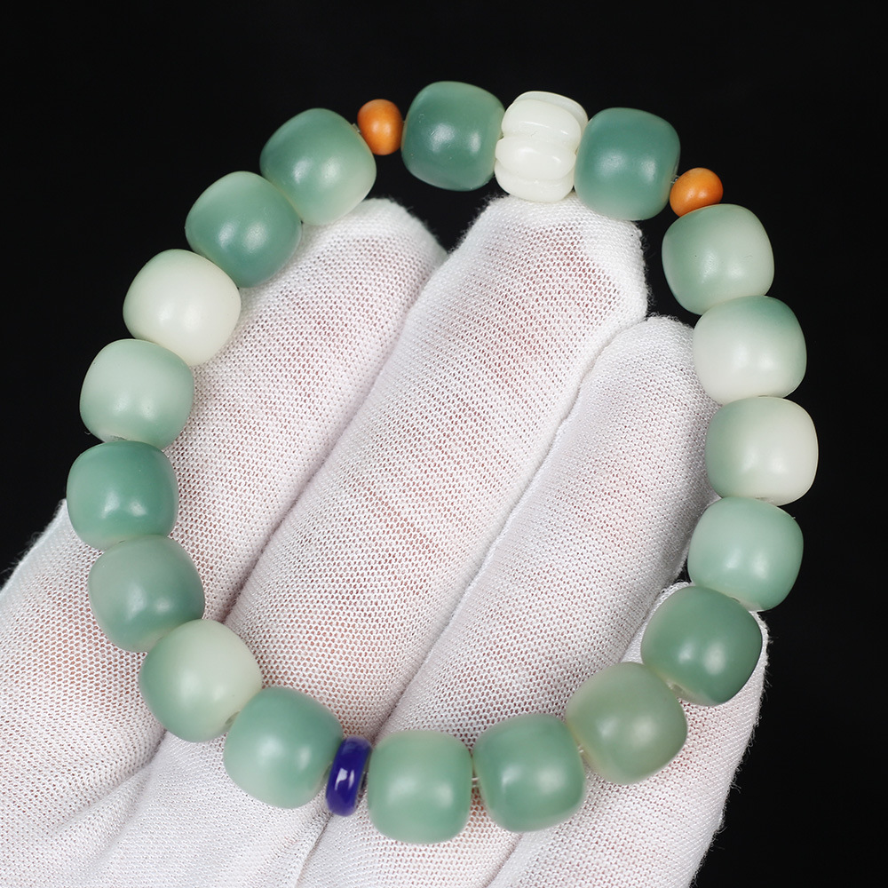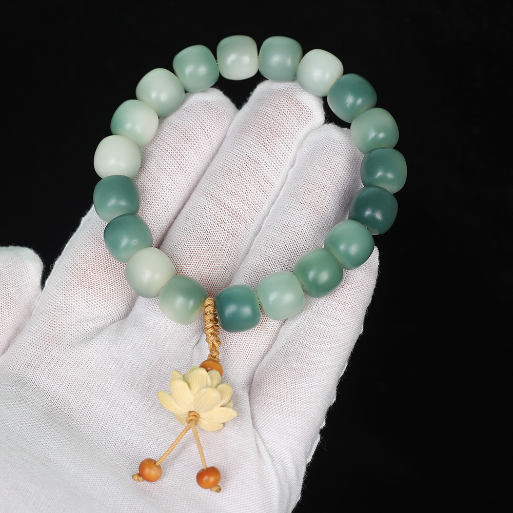 绿阴皮白玉菩提根手串渐变绿菩提子男女手链佛珠饰品文玩念珠批发