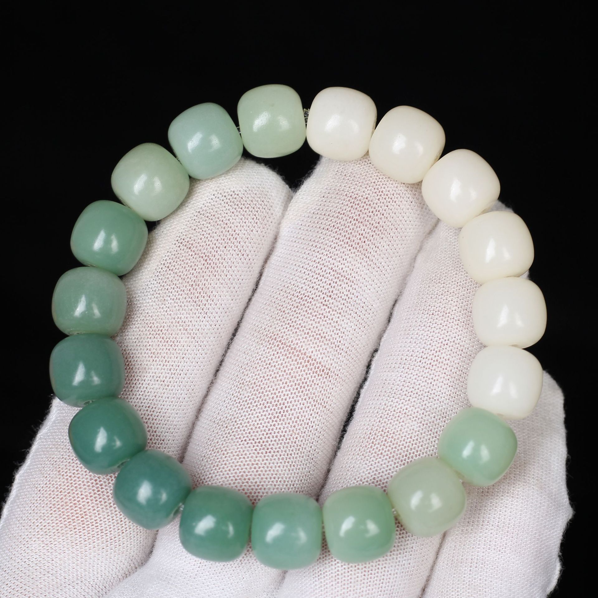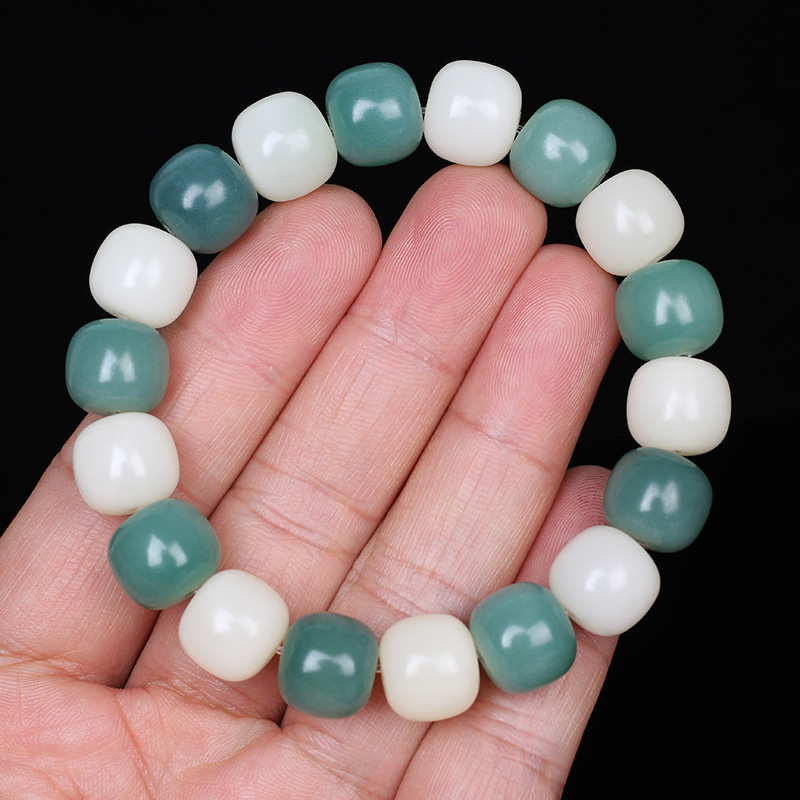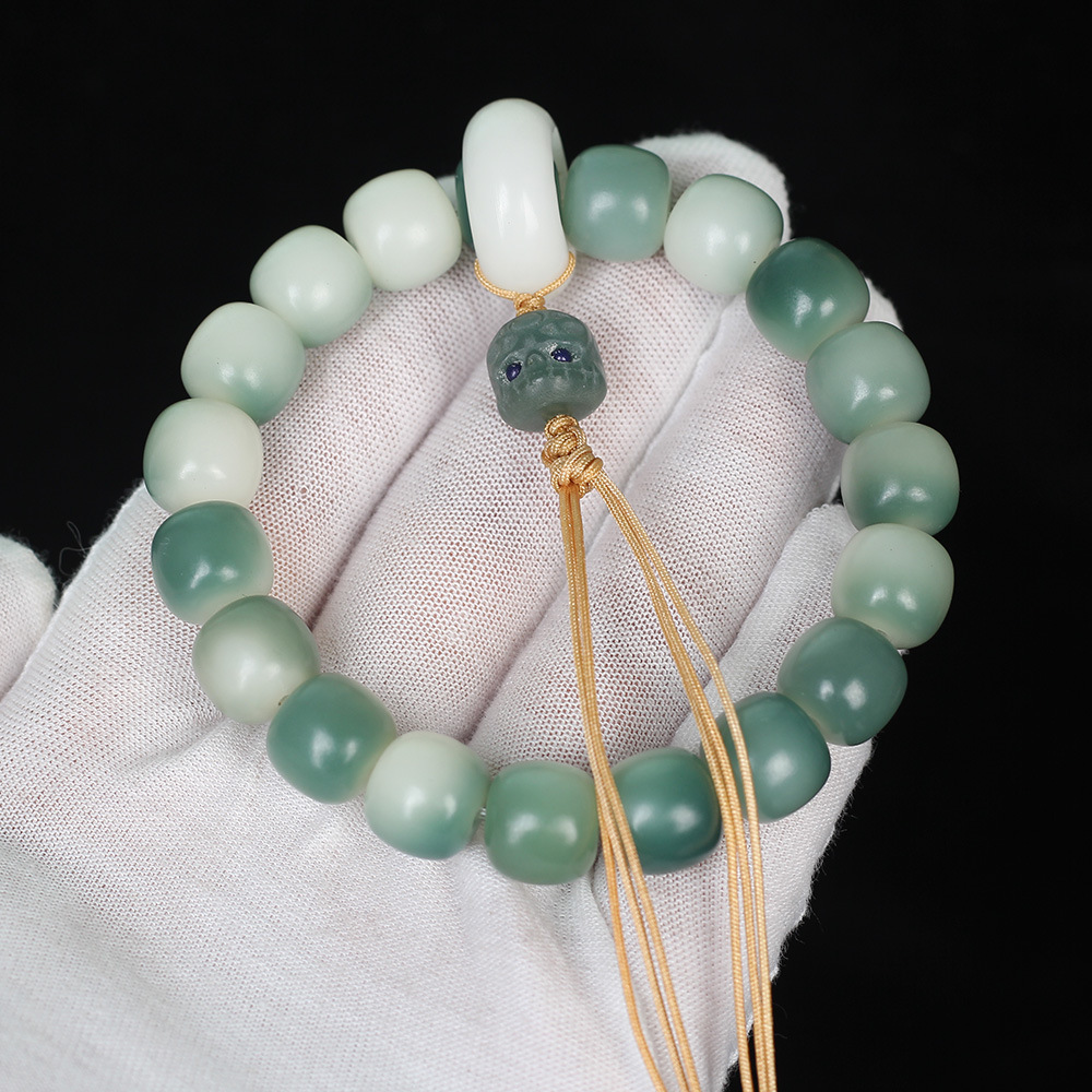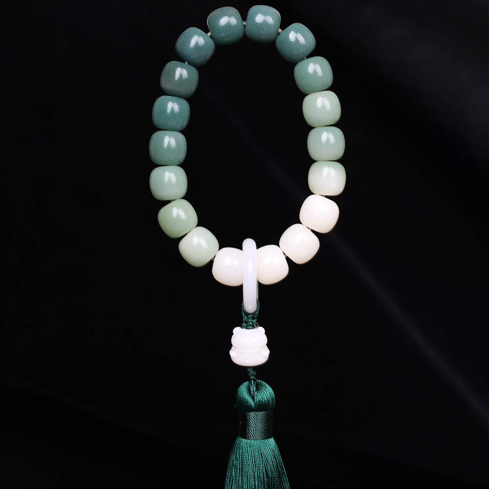 绿阴皮白玉菩提根手串渐变绿菩提子男女手链佛珠饰品文玩念珠批发