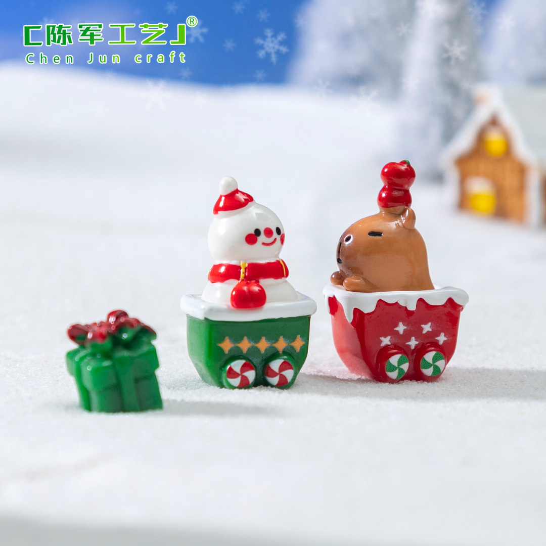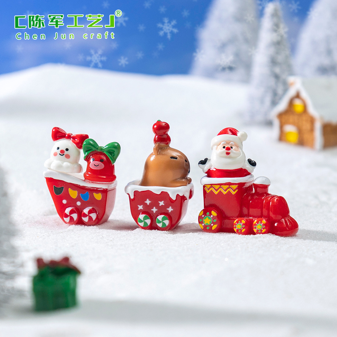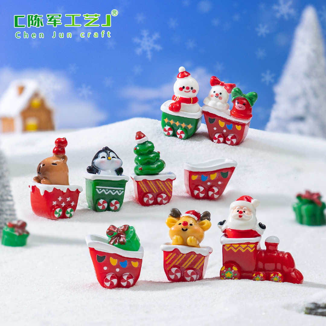 微景观创意圣诞火车雪人小动物萌粒 雪地造景diy装饰品配件小摆件