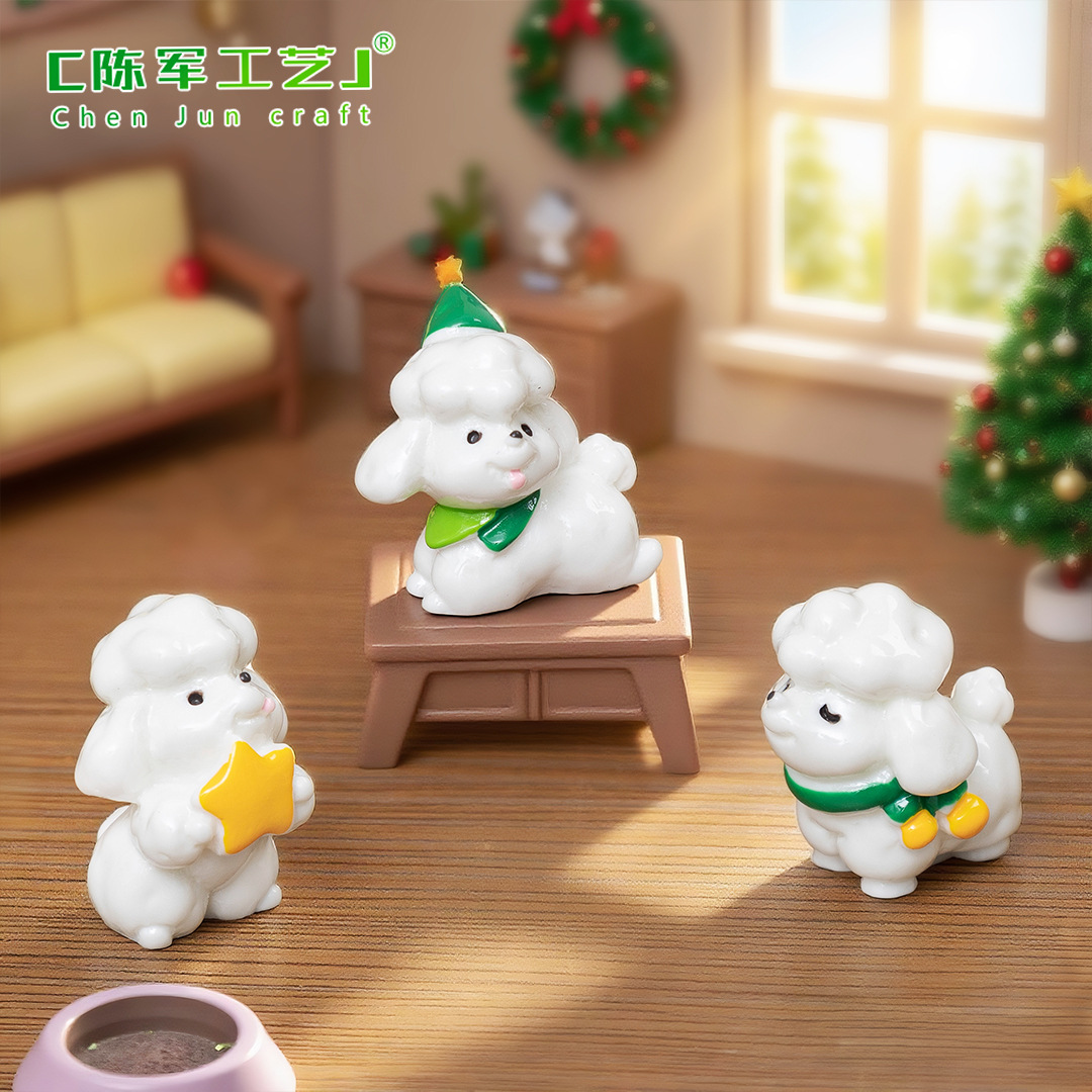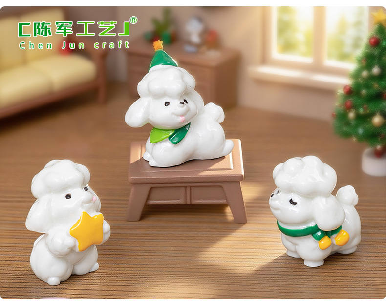 微景观可爱圣诞围巾小狗公仔萌粒 娃娃屋diy装饰品配件桌面小摆件