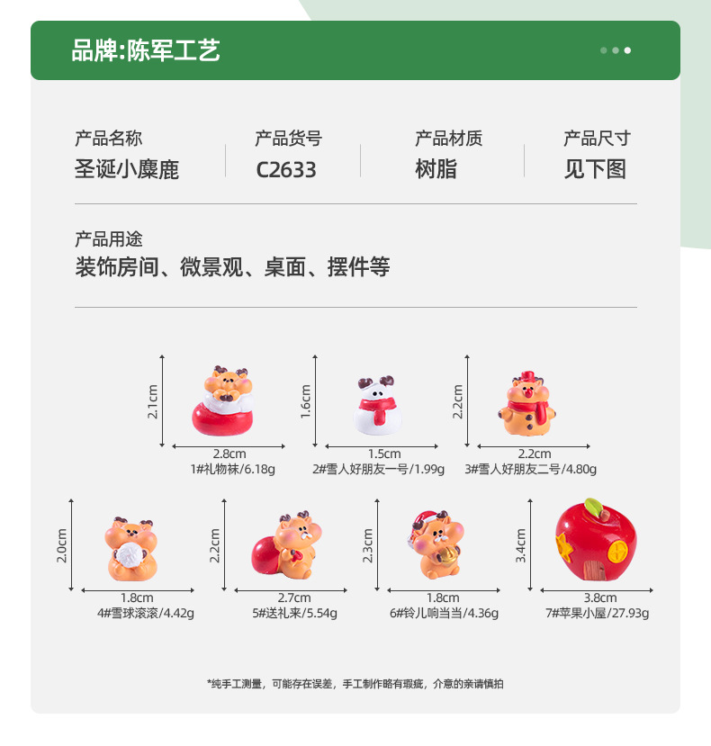 跨境新品可爱圣诞小麋鹿公仔 diy装饰品挂配件微景观圣诞节小摆件