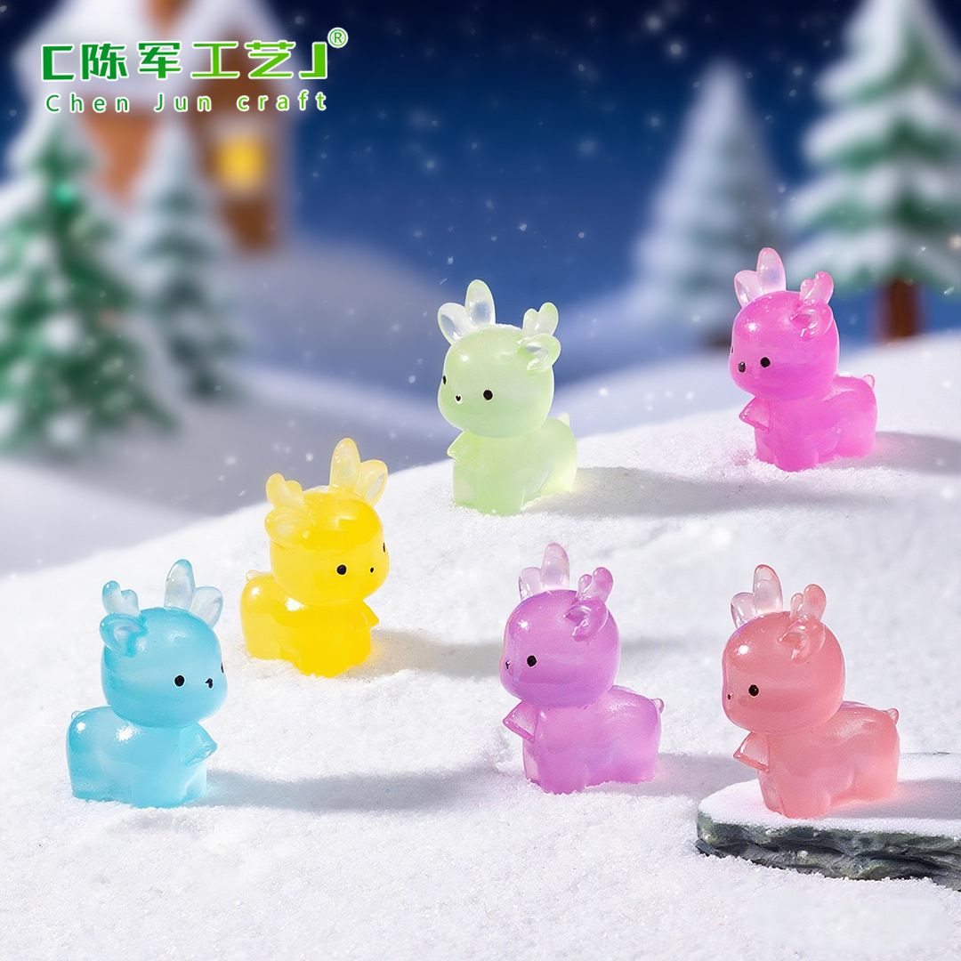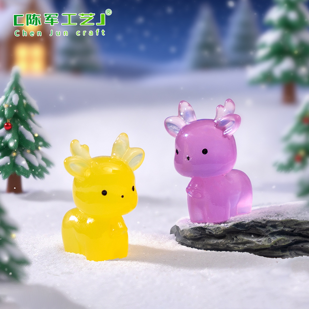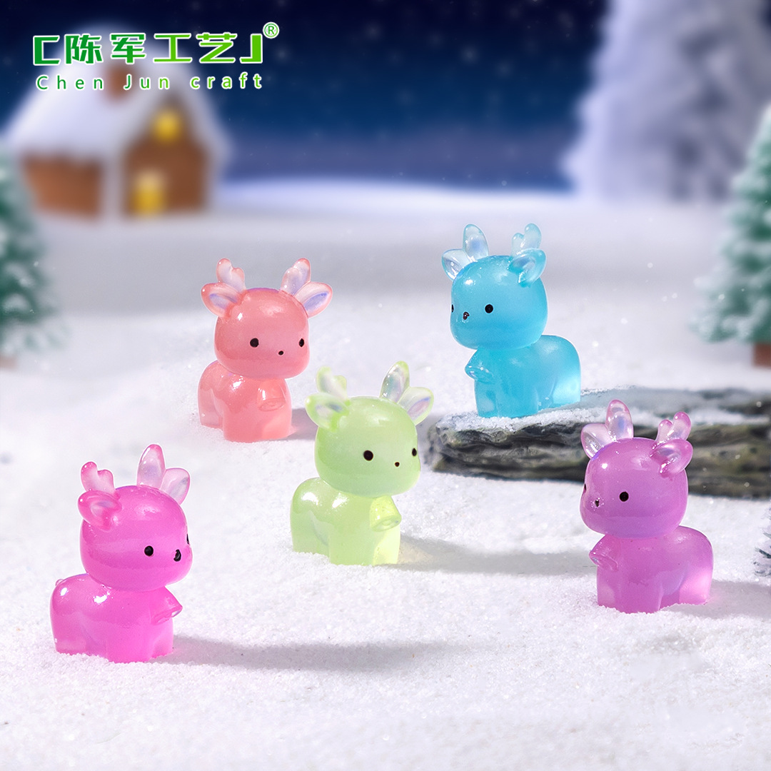 微景观夜光可爱圣诞鹿公仔萌粒 雪地造景diy装饰品配件迷你小摆件