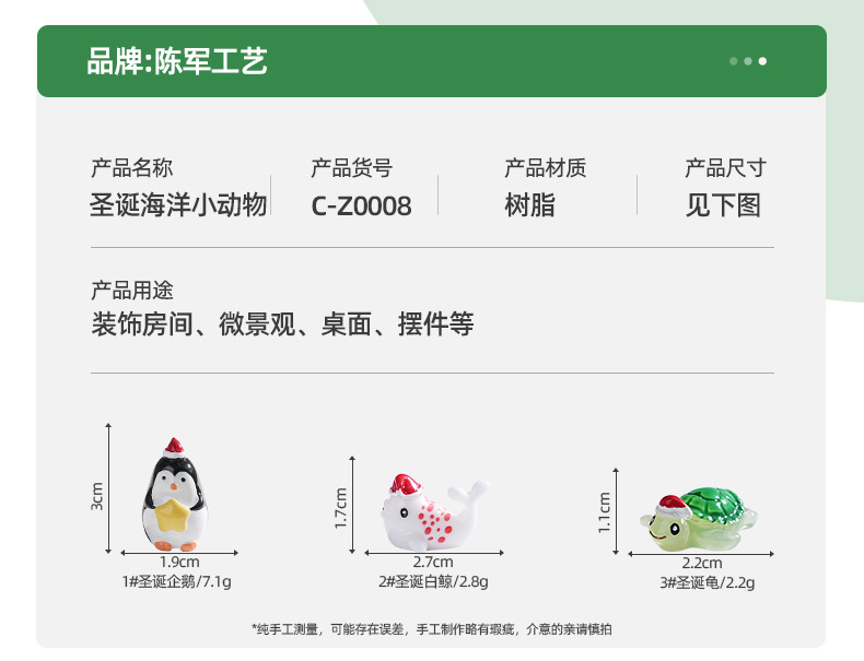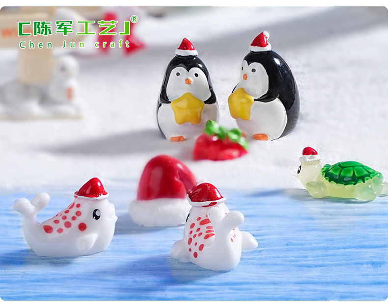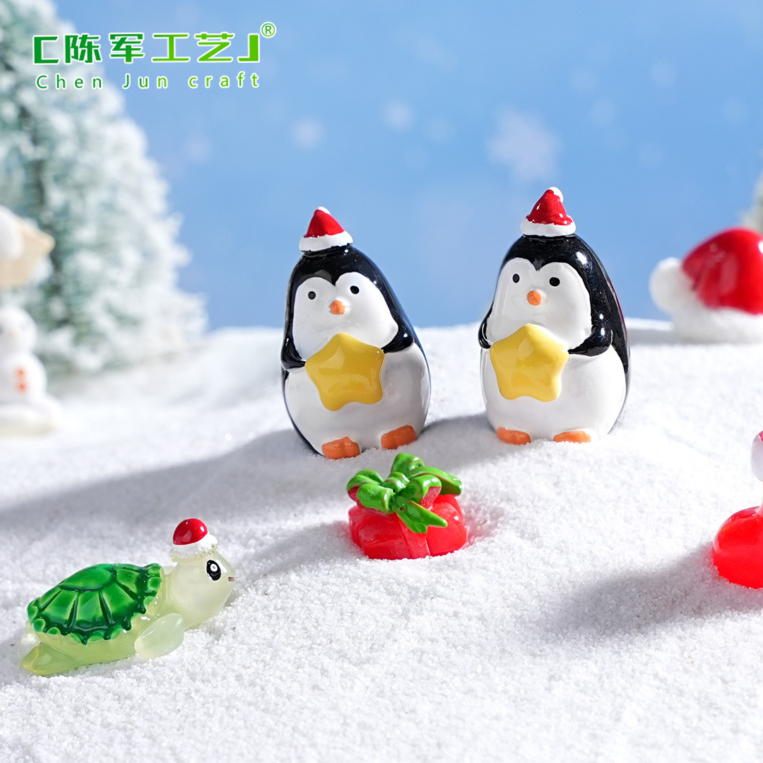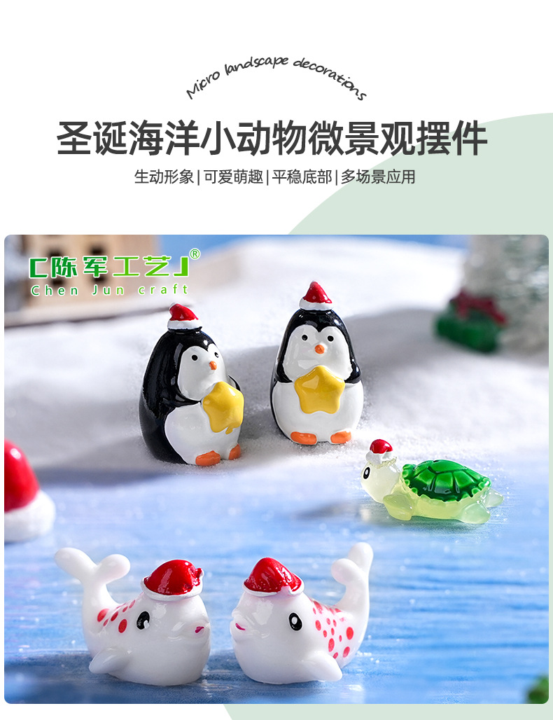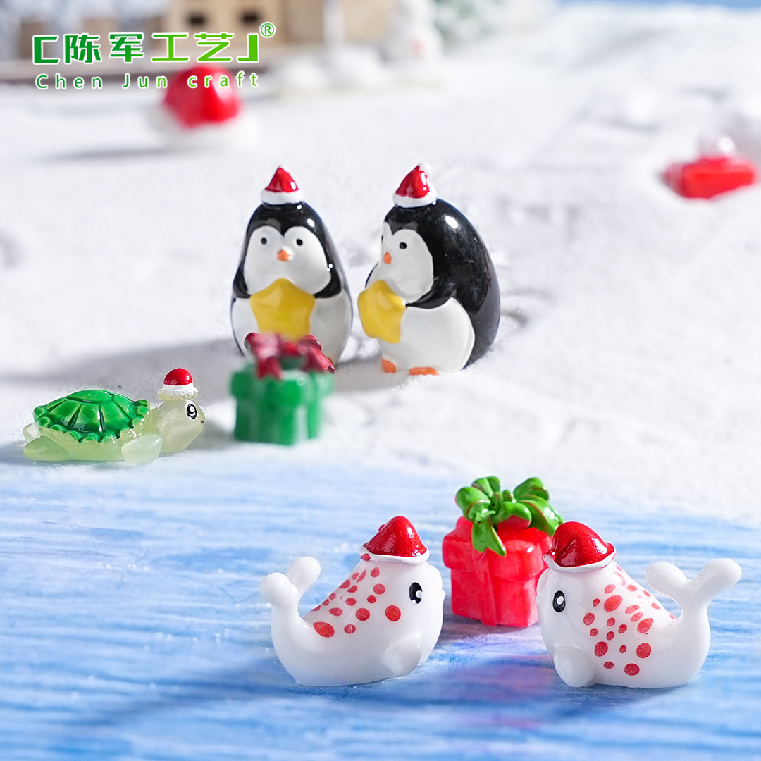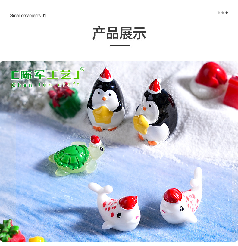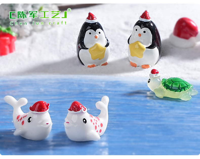 跨境新品微景观圣诞帽企鹅乌龟鲸鱼 DIY装饰品挂配件圣诞节小摆件