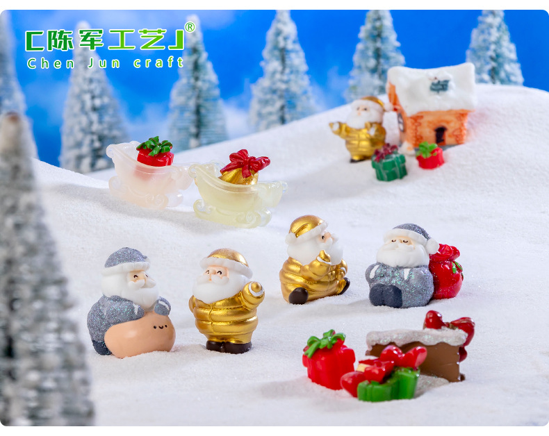 跨境新品微景观创意卡通圣诞节老人雪橇 diy装饰品配件迷你小摆件