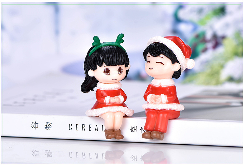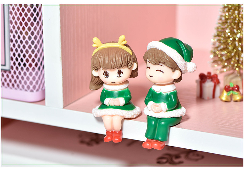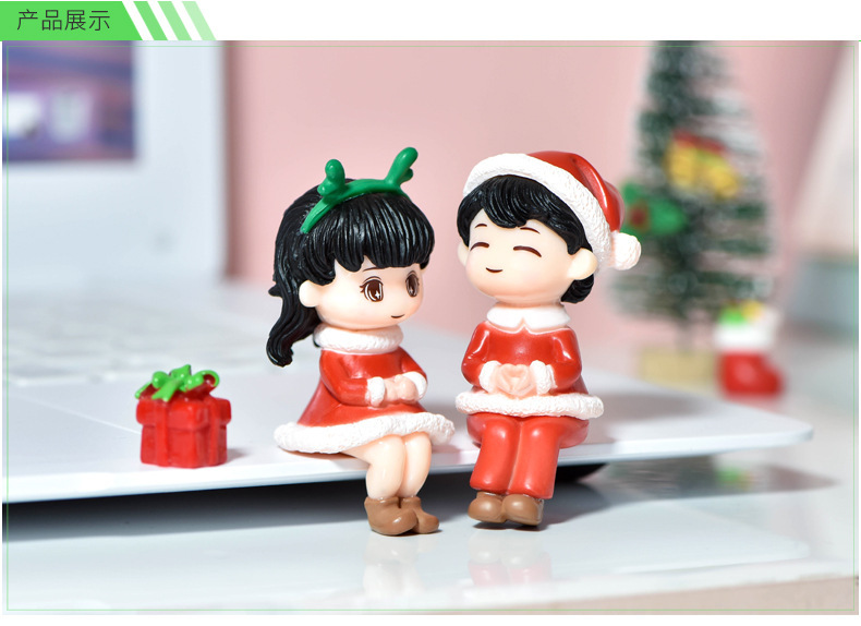 微景观可爱圣诞节情侣手办公仔盲盒装饰品配件微缩桌面车载小摆件