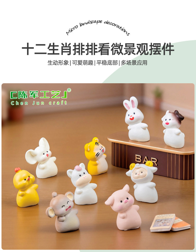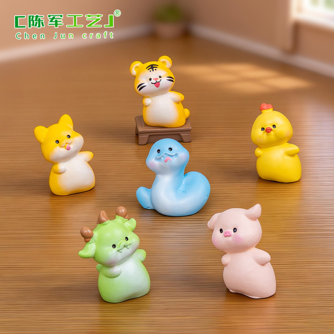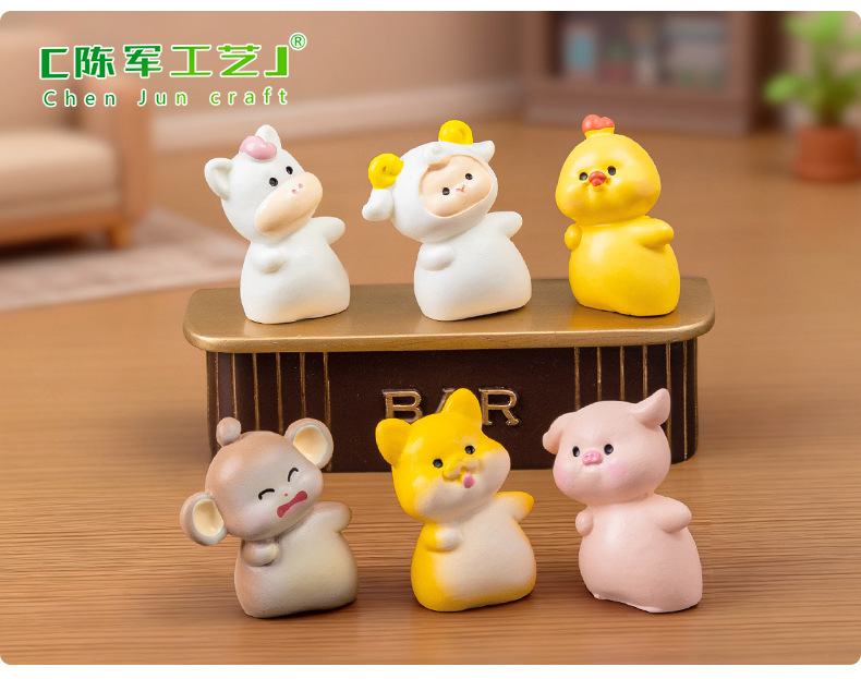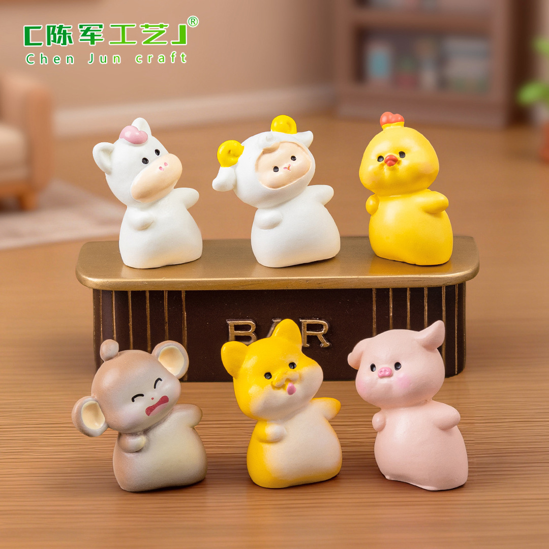 微景观创意歪头十二生肖 diy装饰品盲袋配件迷你汽车载桌面小摆件