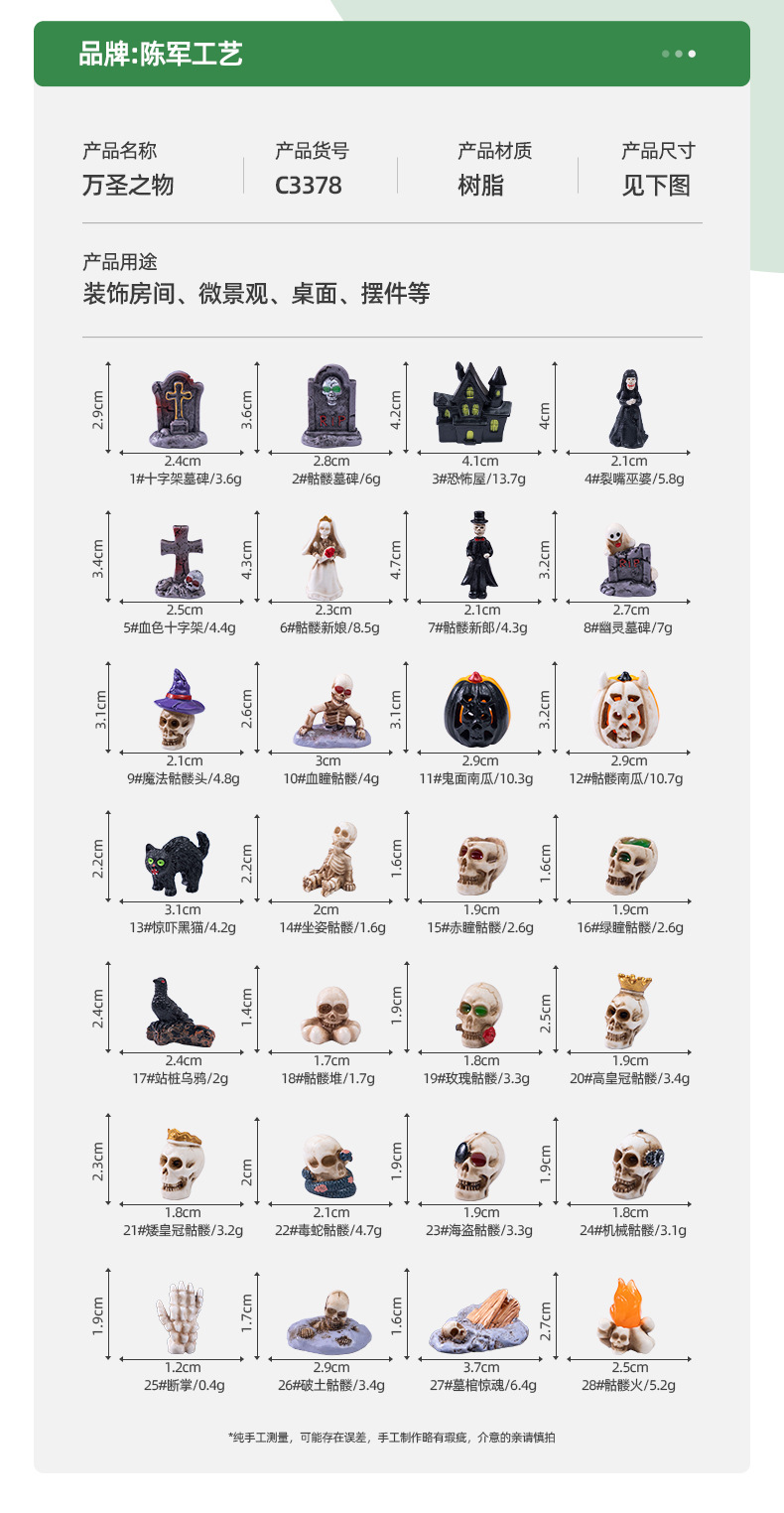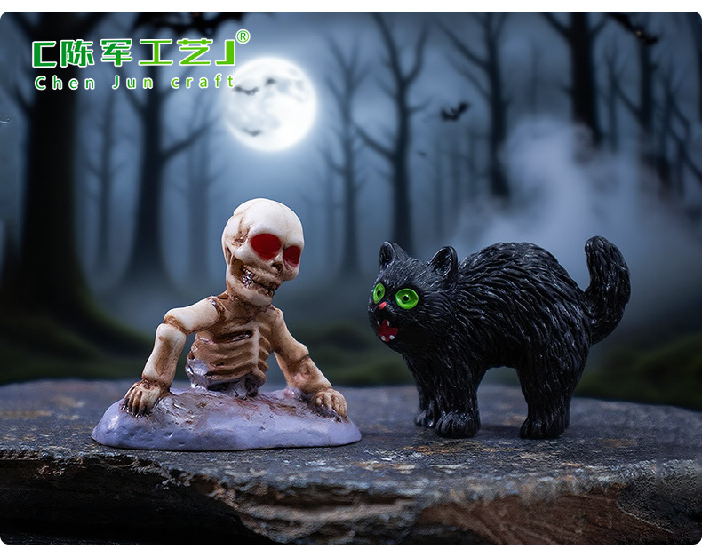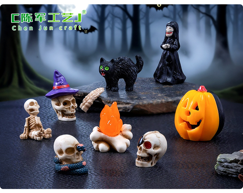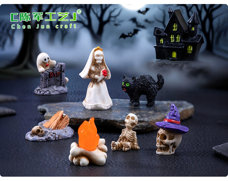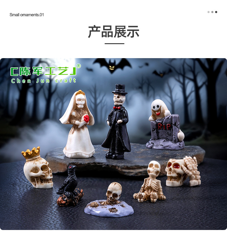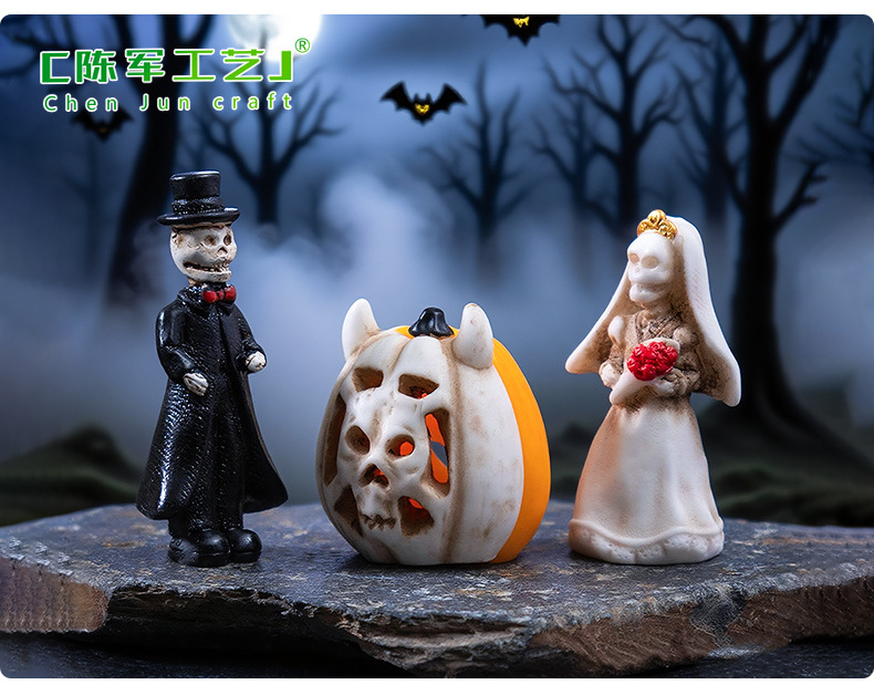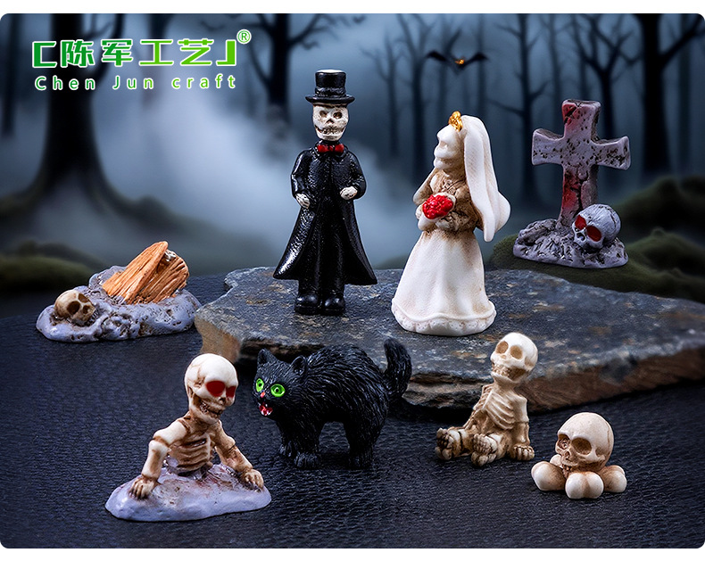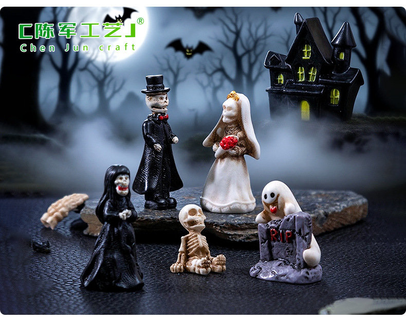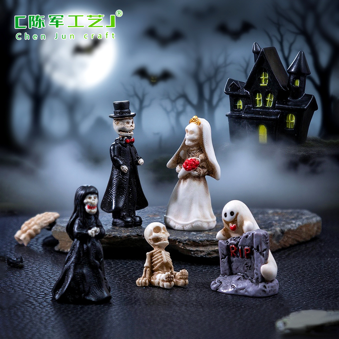 跨境新品万圣节骷髅情侣公仔萌粒 diy装饰品配件微景观桌面小摆件