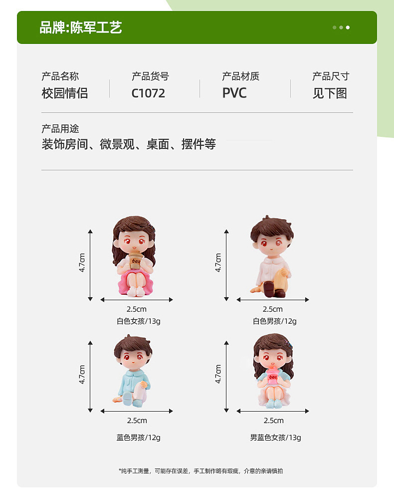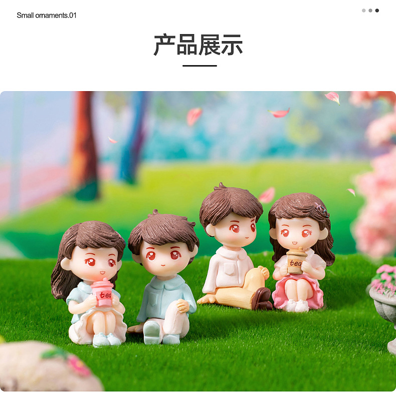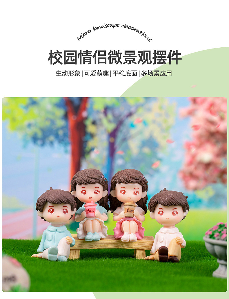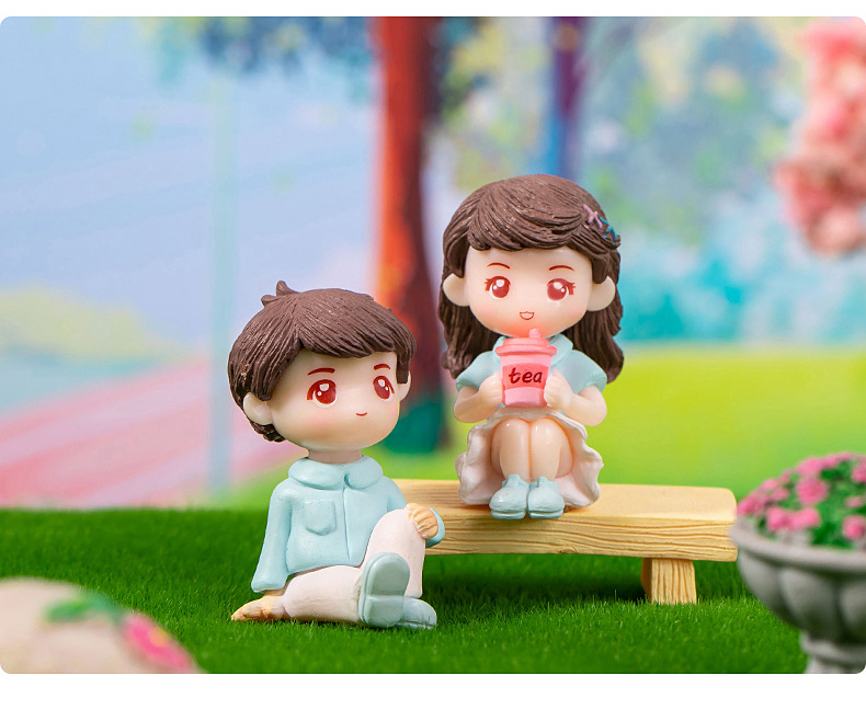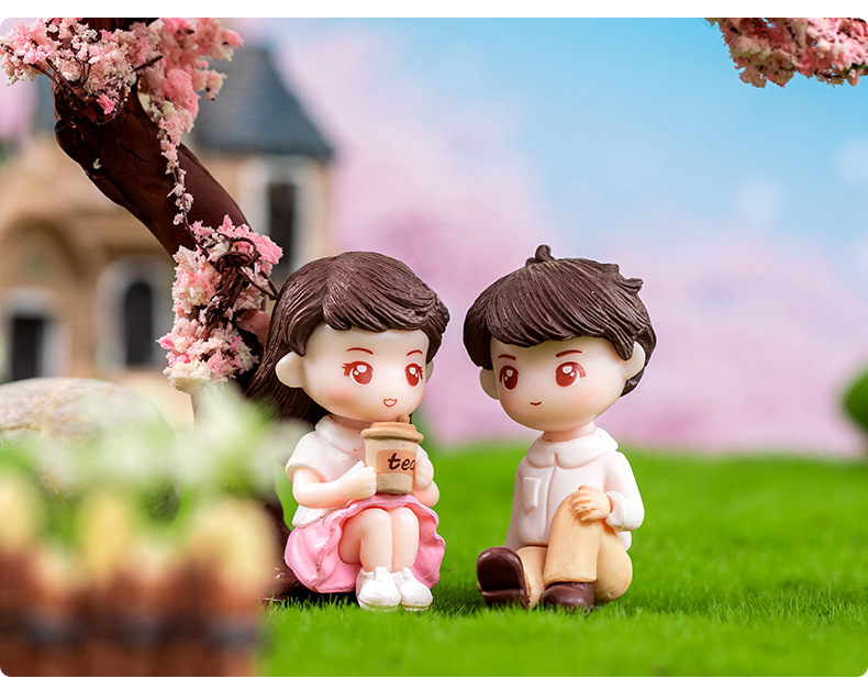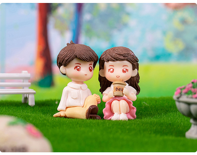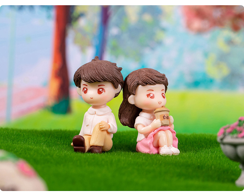 微景观卡通可爱情侣公仔手办礼物装饰品塑料工艺品车载桌面小摆件