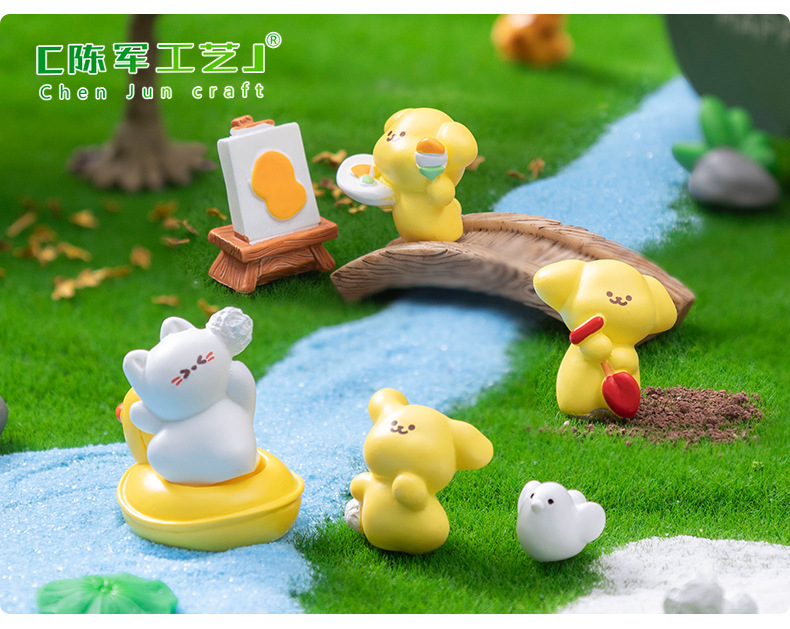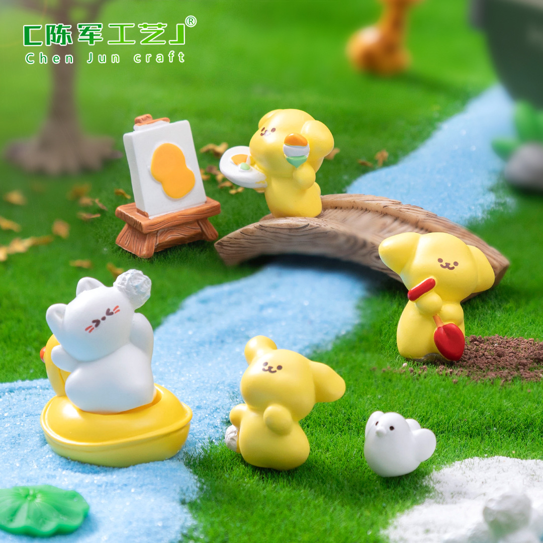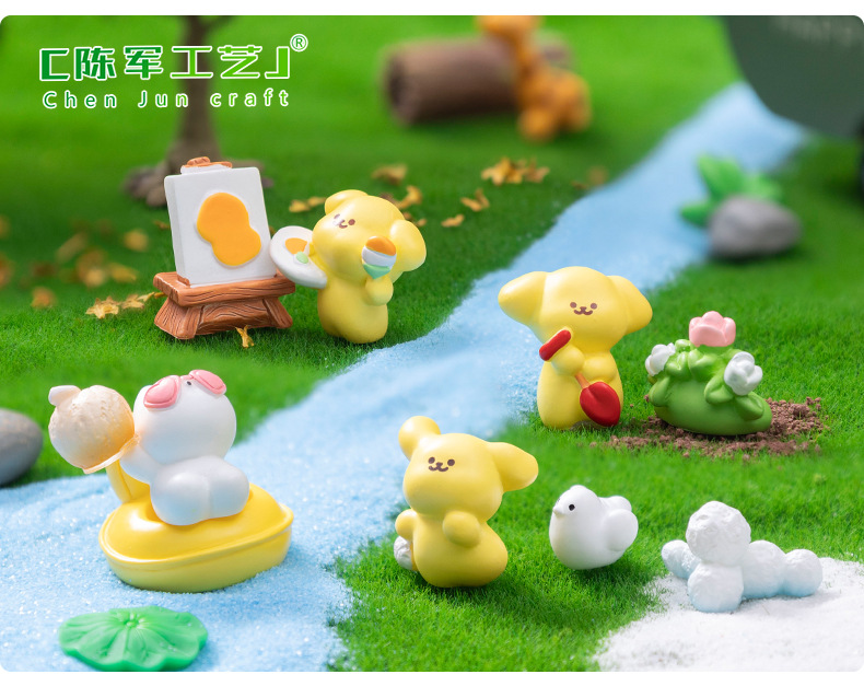 出游线条四季小狗狗公仔 园艺造景diy装饰品配件微景观小摆件田园