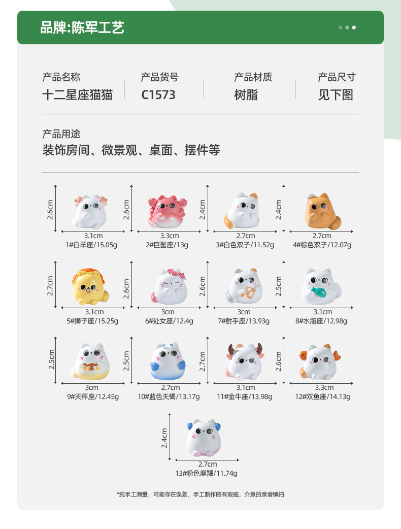 微景观可爱十二星座猫猫公仔 园艺造景diy装饰品盲袋挂配件小摆件