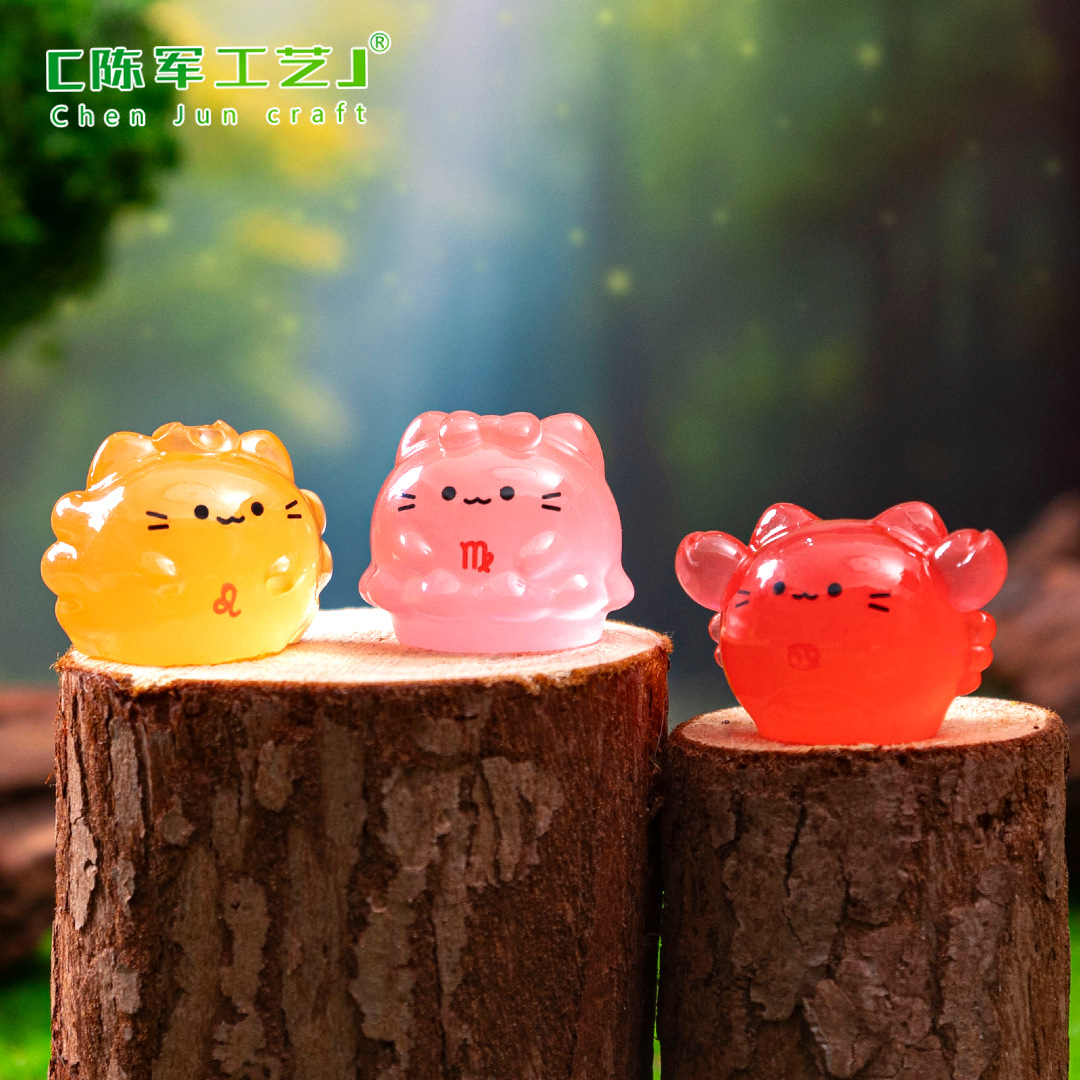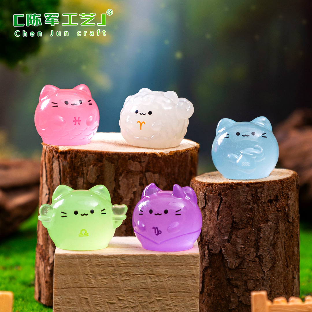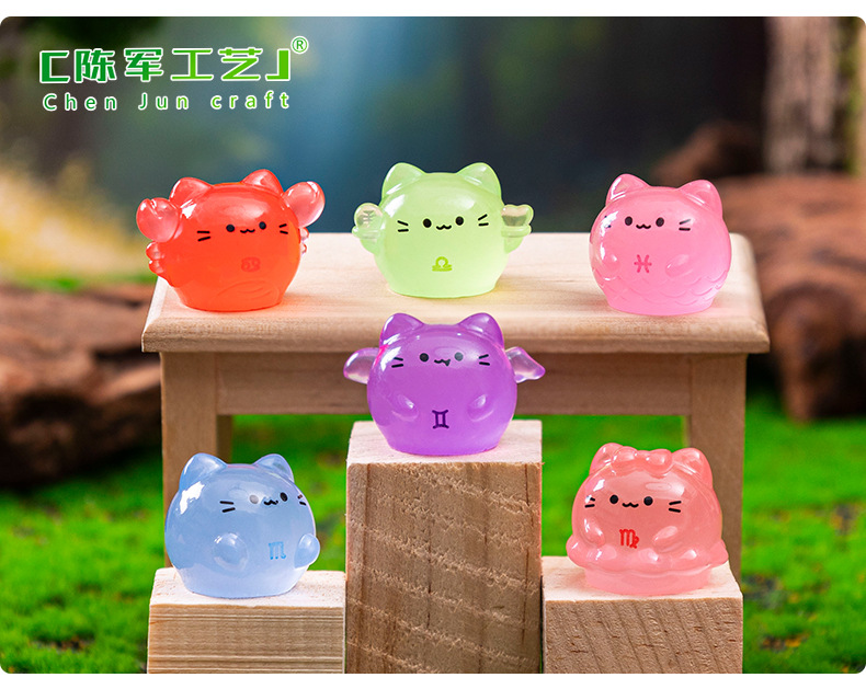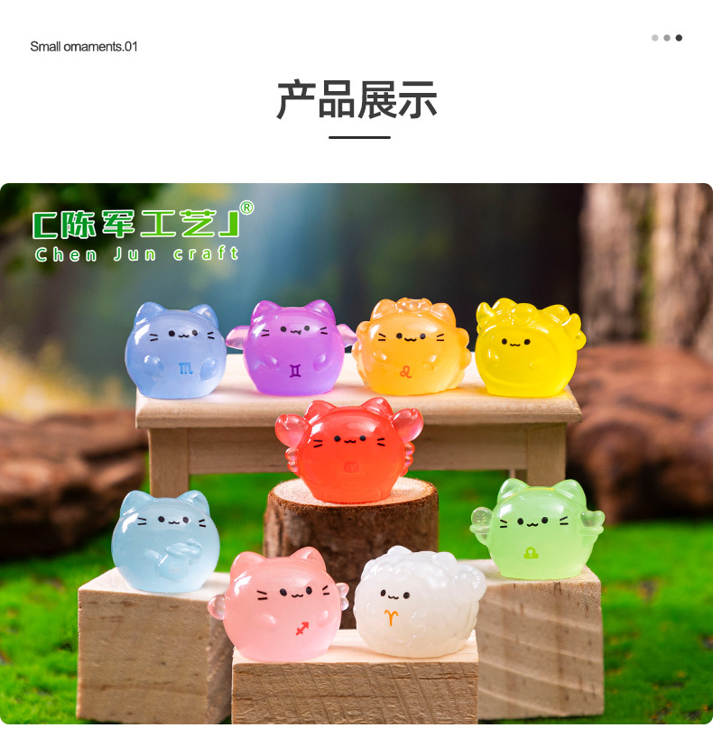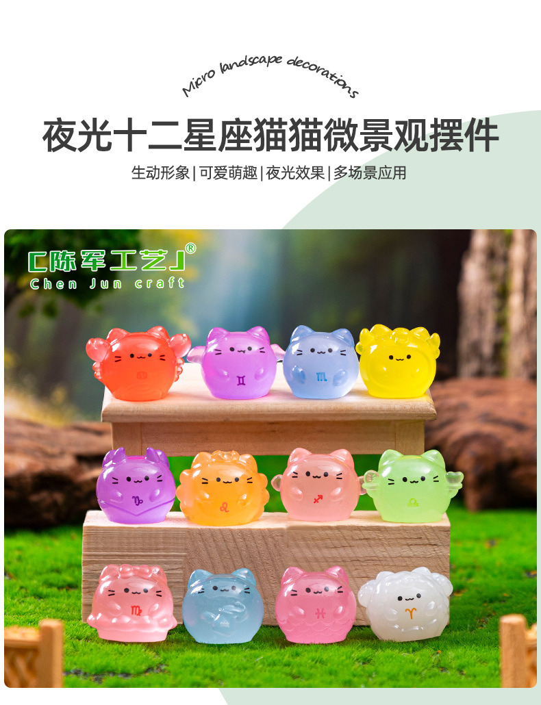 夜光可爱十二星座猫猫公仔 diy装饰品挂配件微景观迷你桌面小摆件