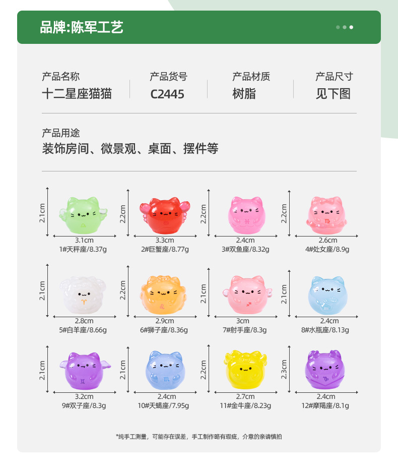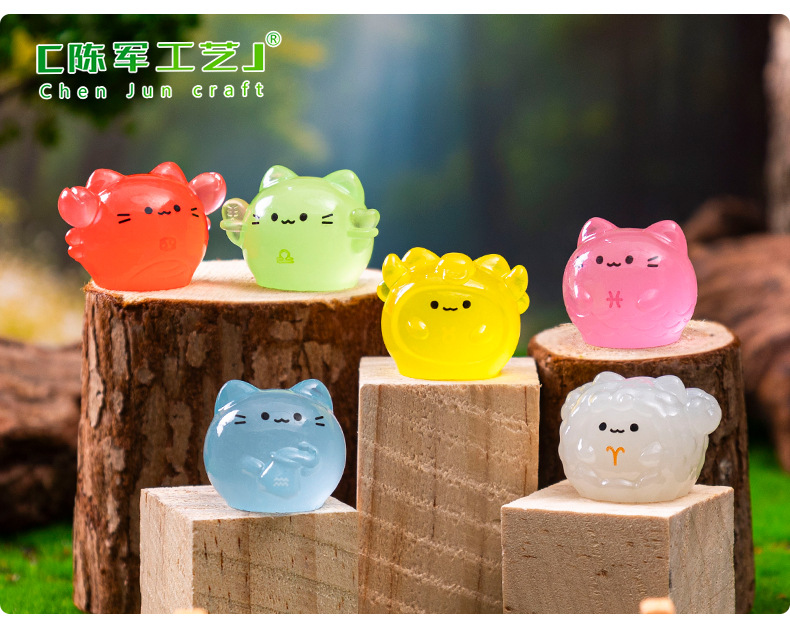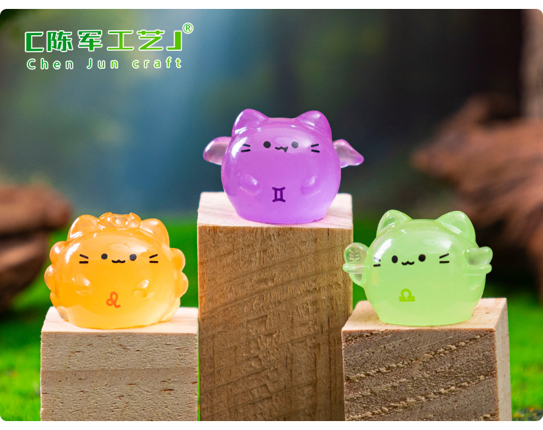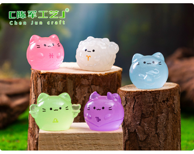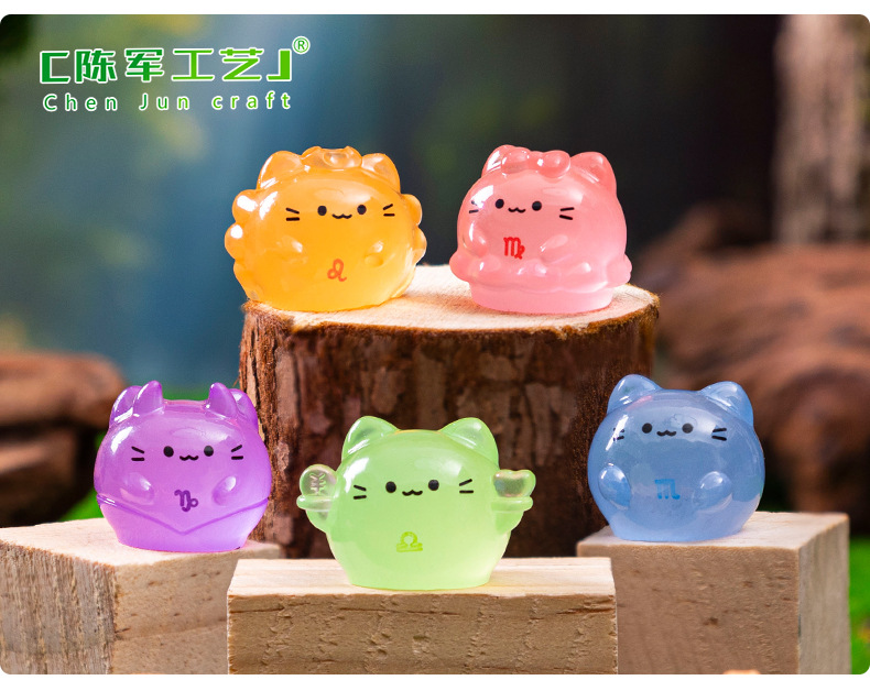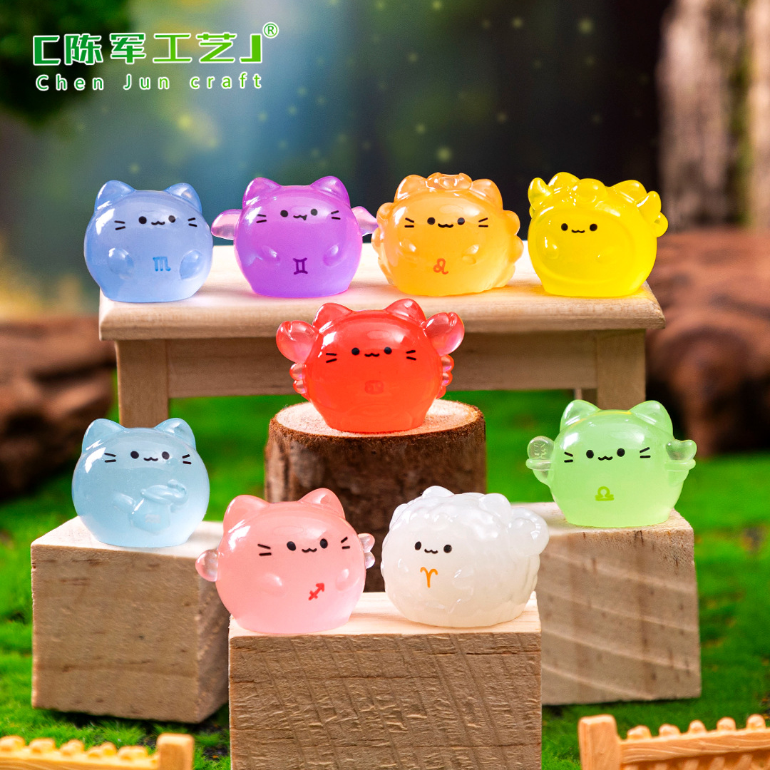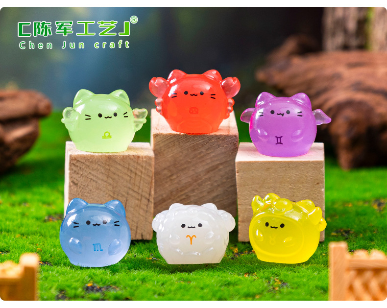 夜光可爱十二星座猫猫公仔 diy装饰品挂配件微景观迷你桌面小摆件