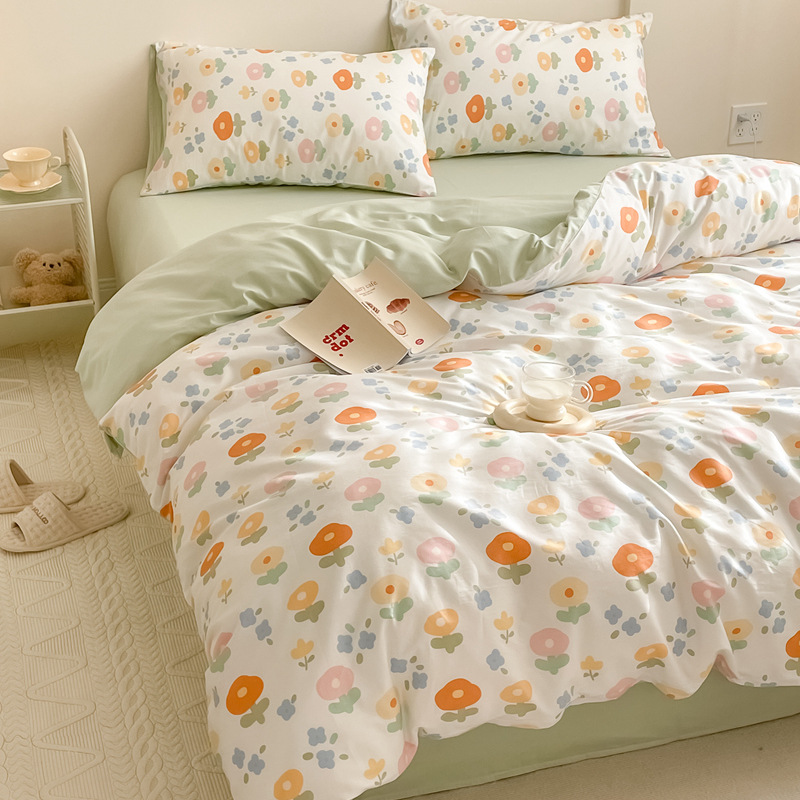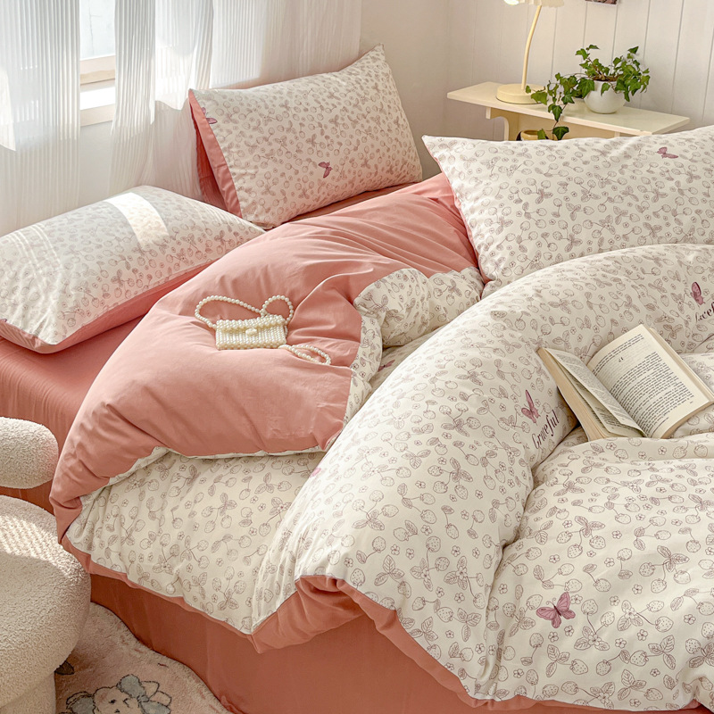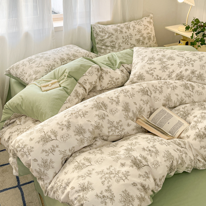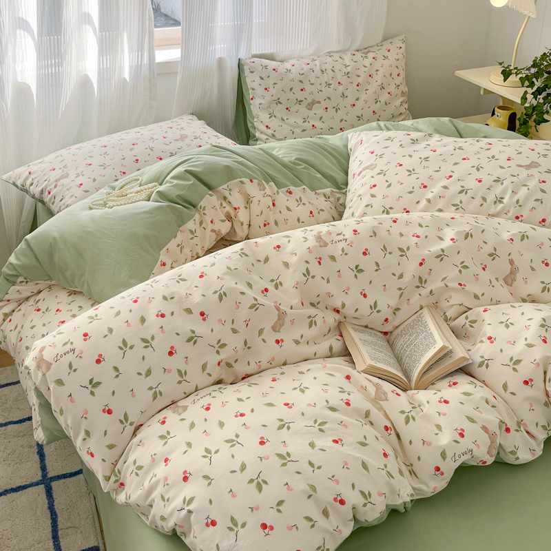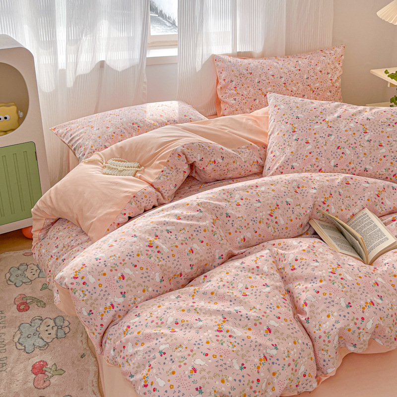 床上优质纯棉四件套全棉网红小香风碎花女床单被套宿舍三件套床笠