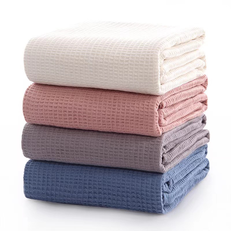 亚马逊全棉华夫格毛巾被沙发盖毯纯棉办公室空调毯子定制批发简约