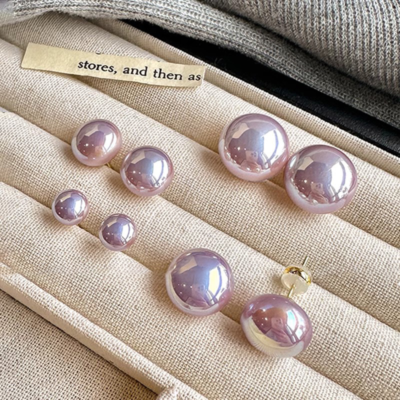 精致馒头极光紫珍珠耳钉女2026新款轻奢气质高级感耳环小众耳饰品