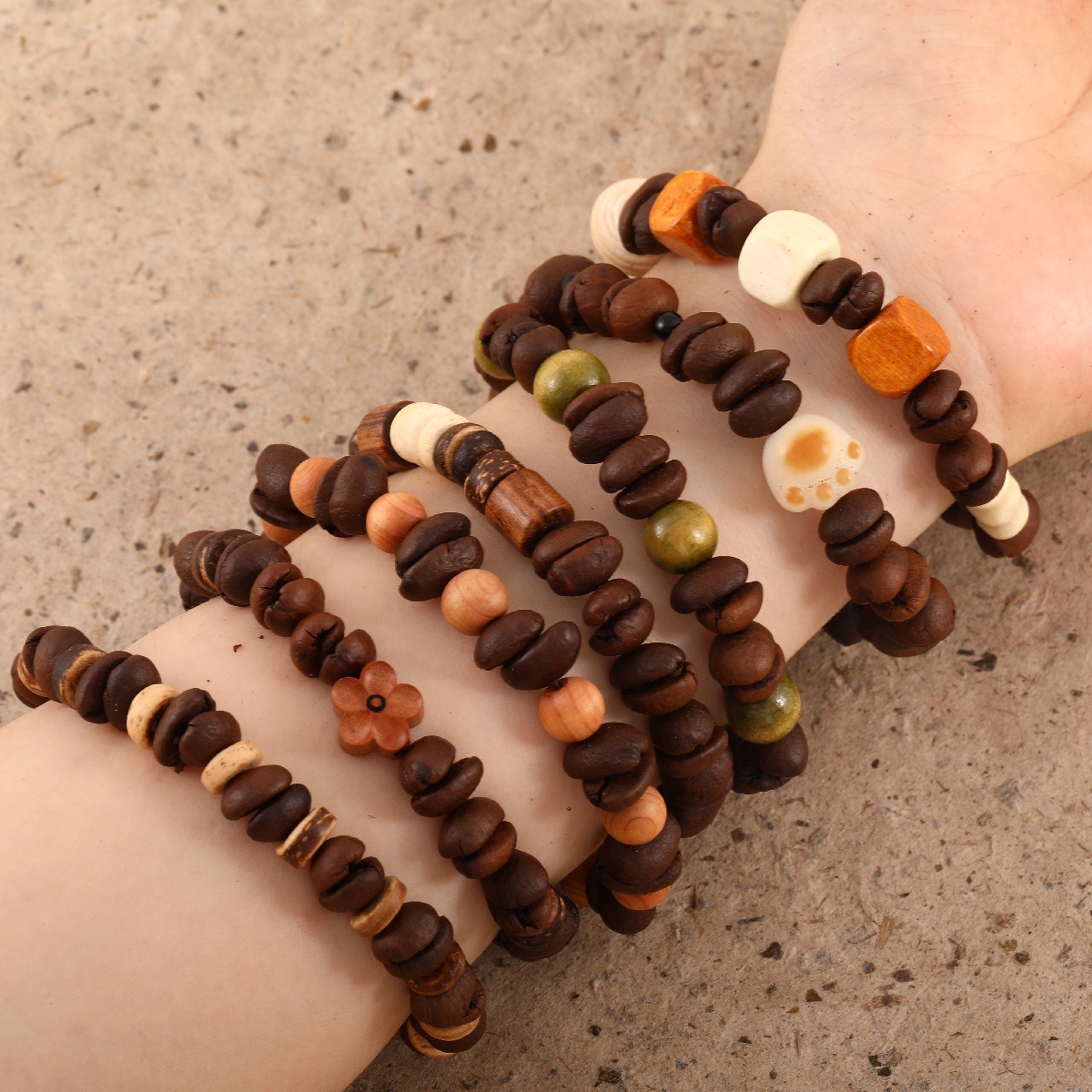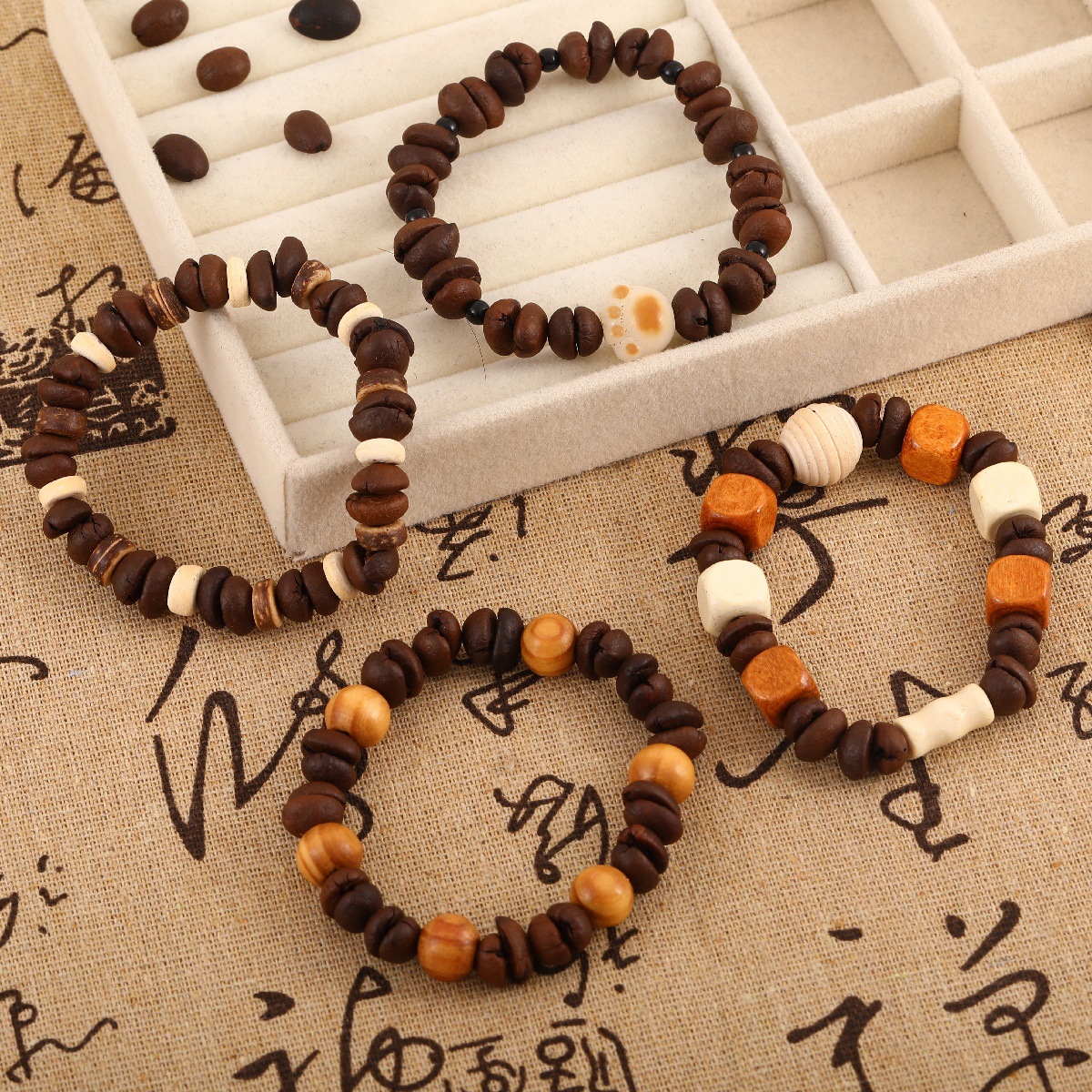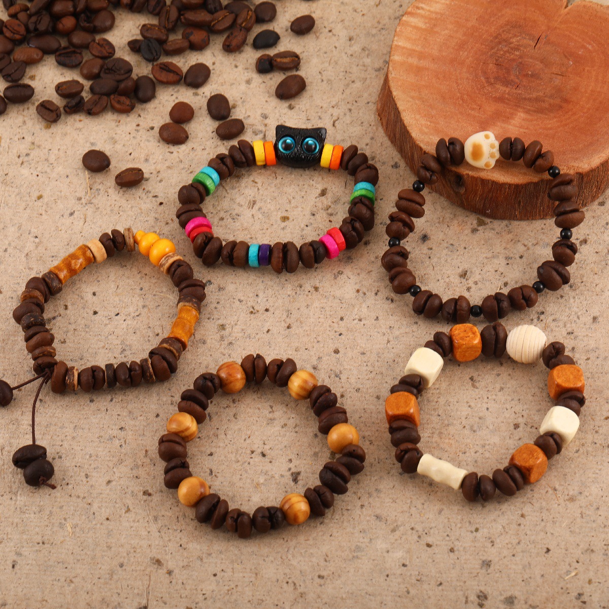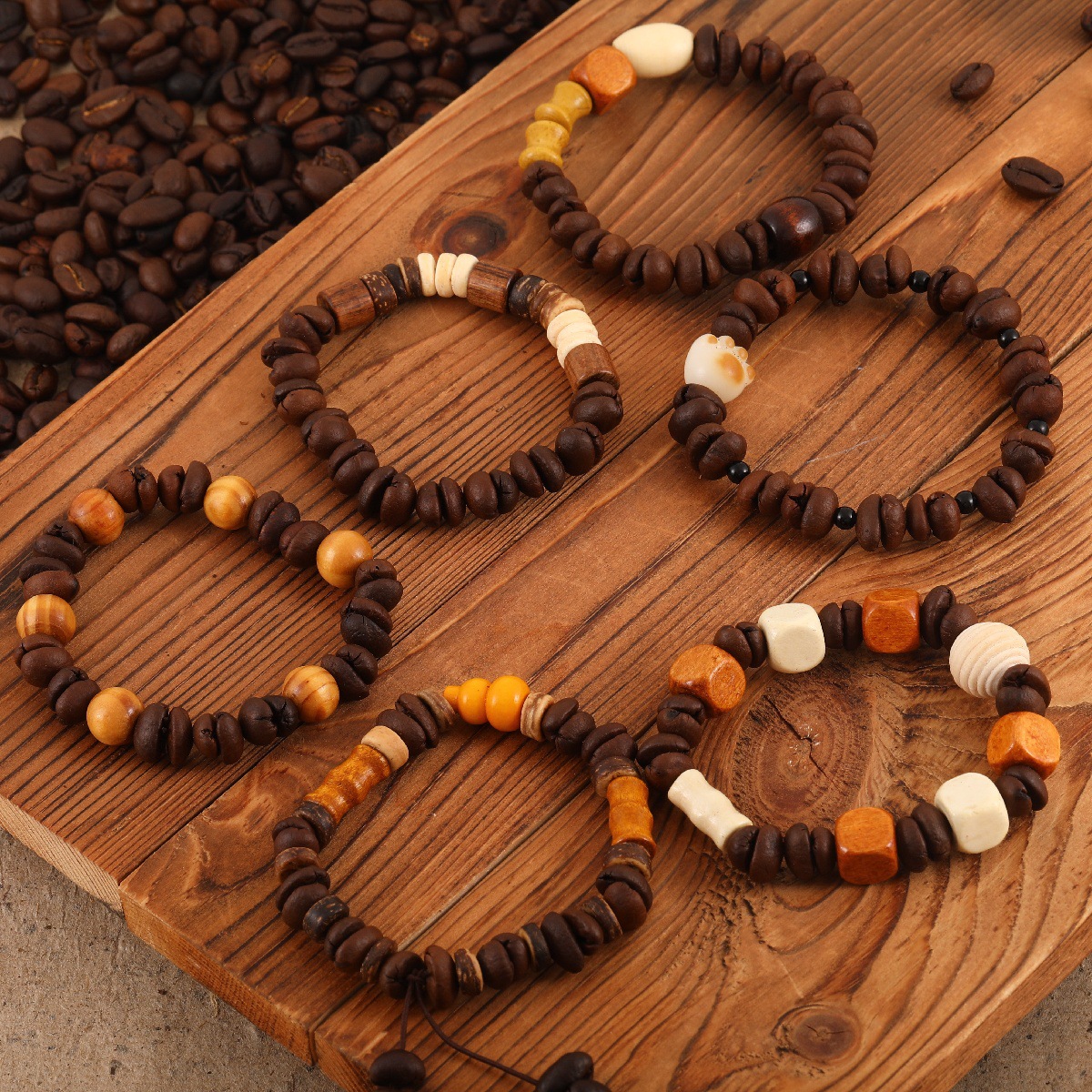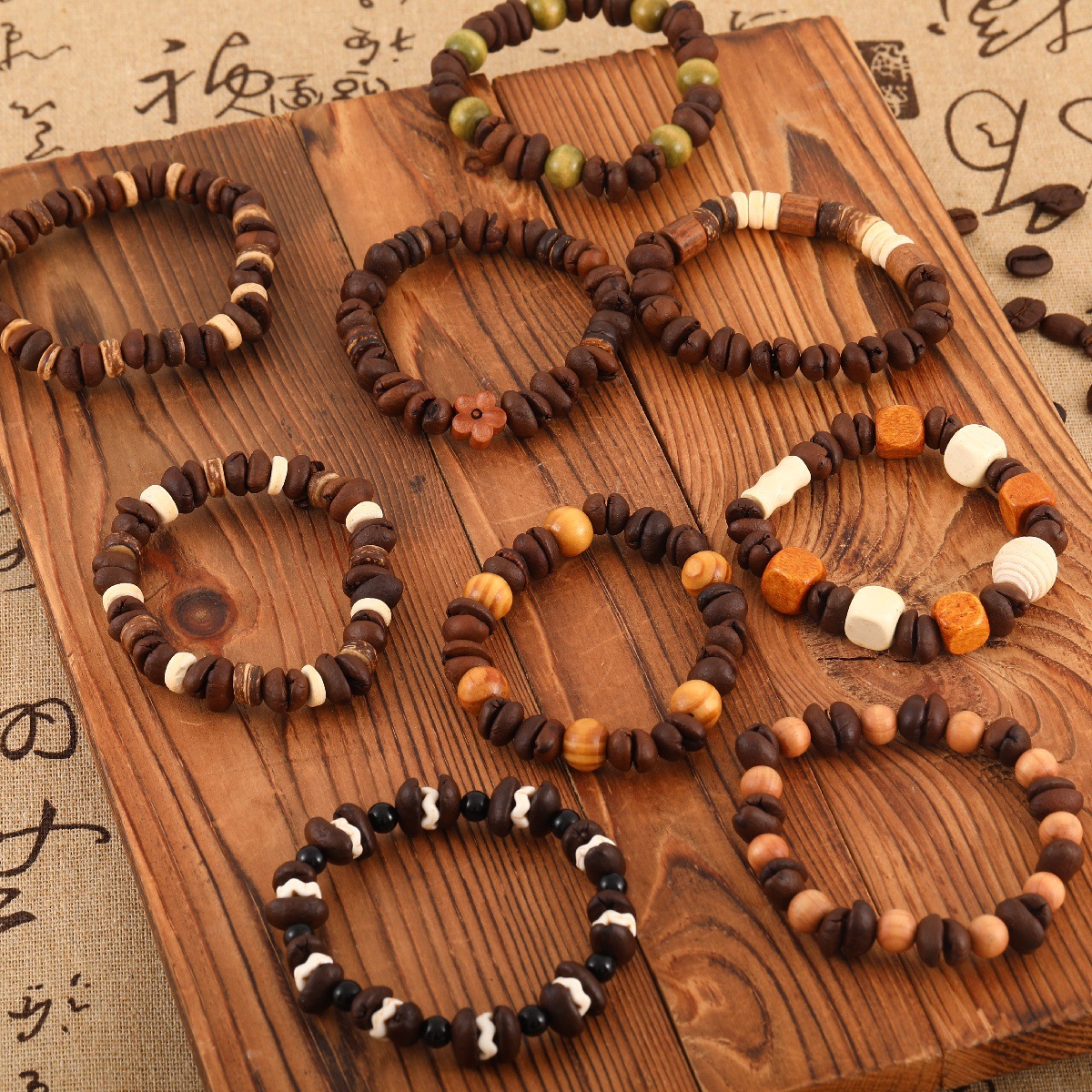 天然真咖啡豆手串手工新中式木珠檀木配件原创设计手链女摆摊创业