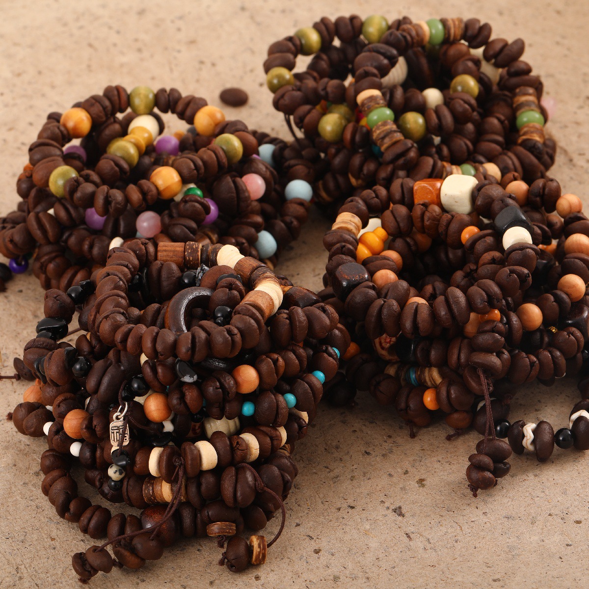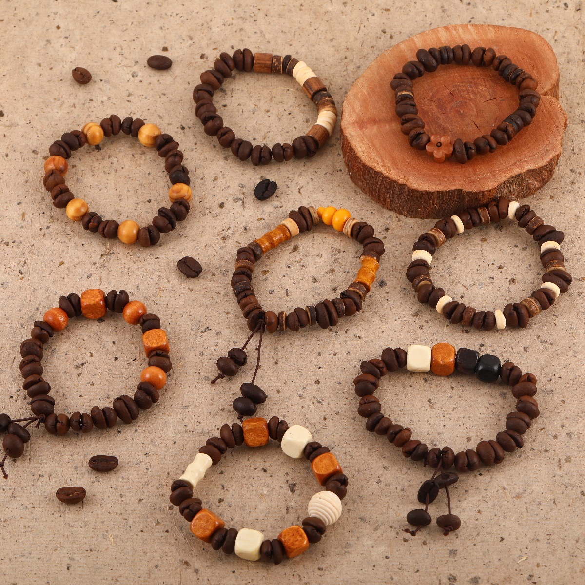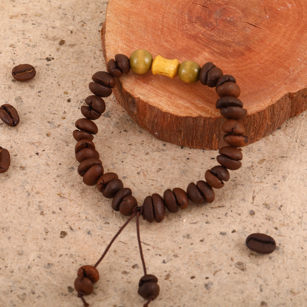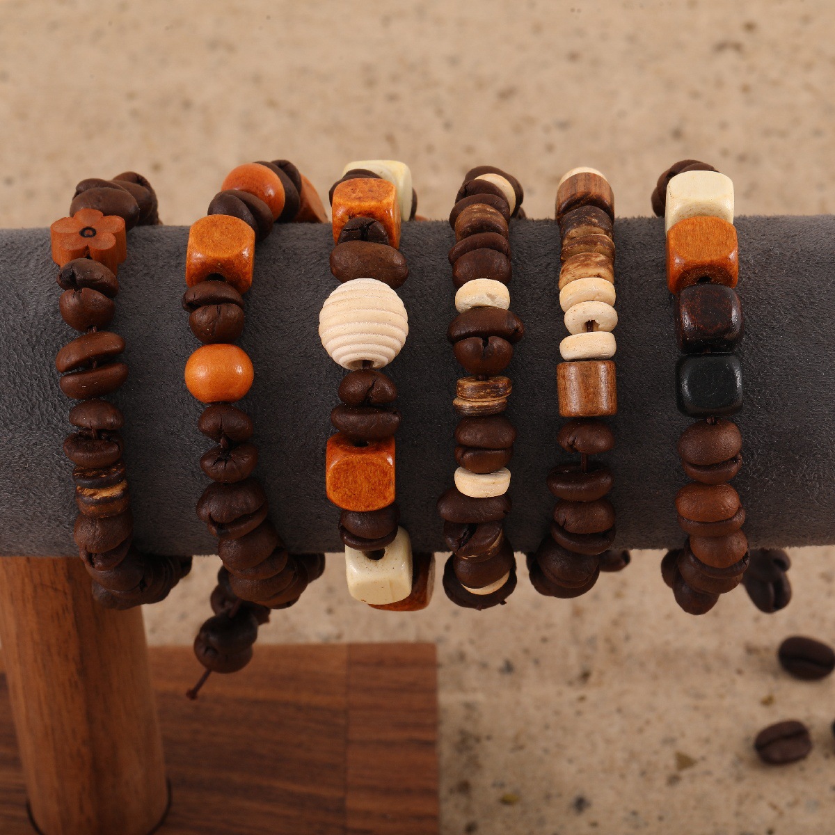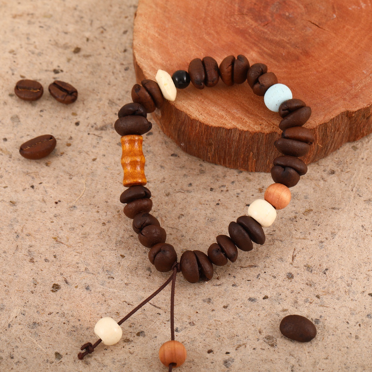 天然真咖啡豆手串手工新中式木珠檀木配件原创设计手链女摆摊创业